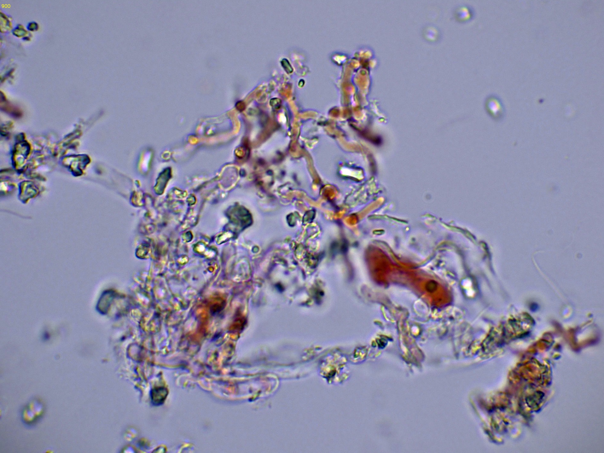 Curiosamente él tampoco pudo obtener esporas, estas esporas según bibliografía deberían medir 17-18 x 8,5-9,5 um.