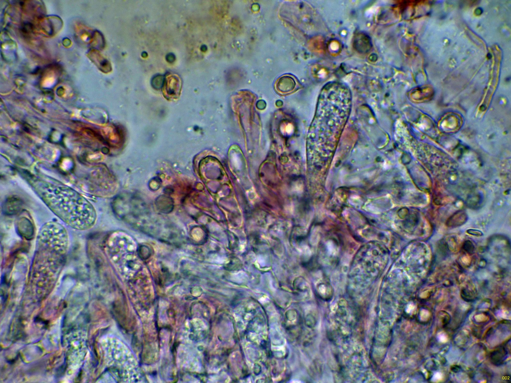 En este caso aunque las medidas siguen por encima de las indicadas para la especie, la media ya entra dentro del rango de las medidas indicadas por Funga Nordica, parece evidente que utilizando el Reactivo de Melzer, las esporas se dilatan sensiblemente.