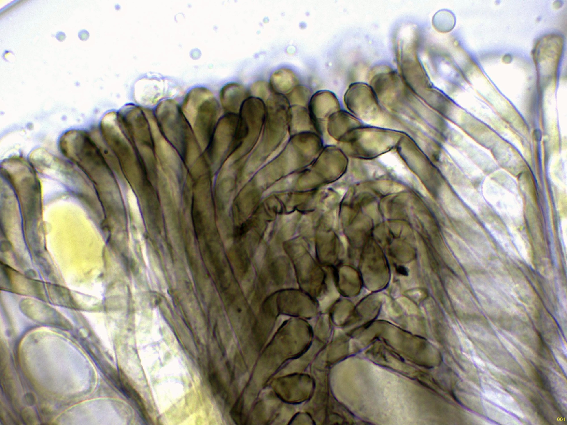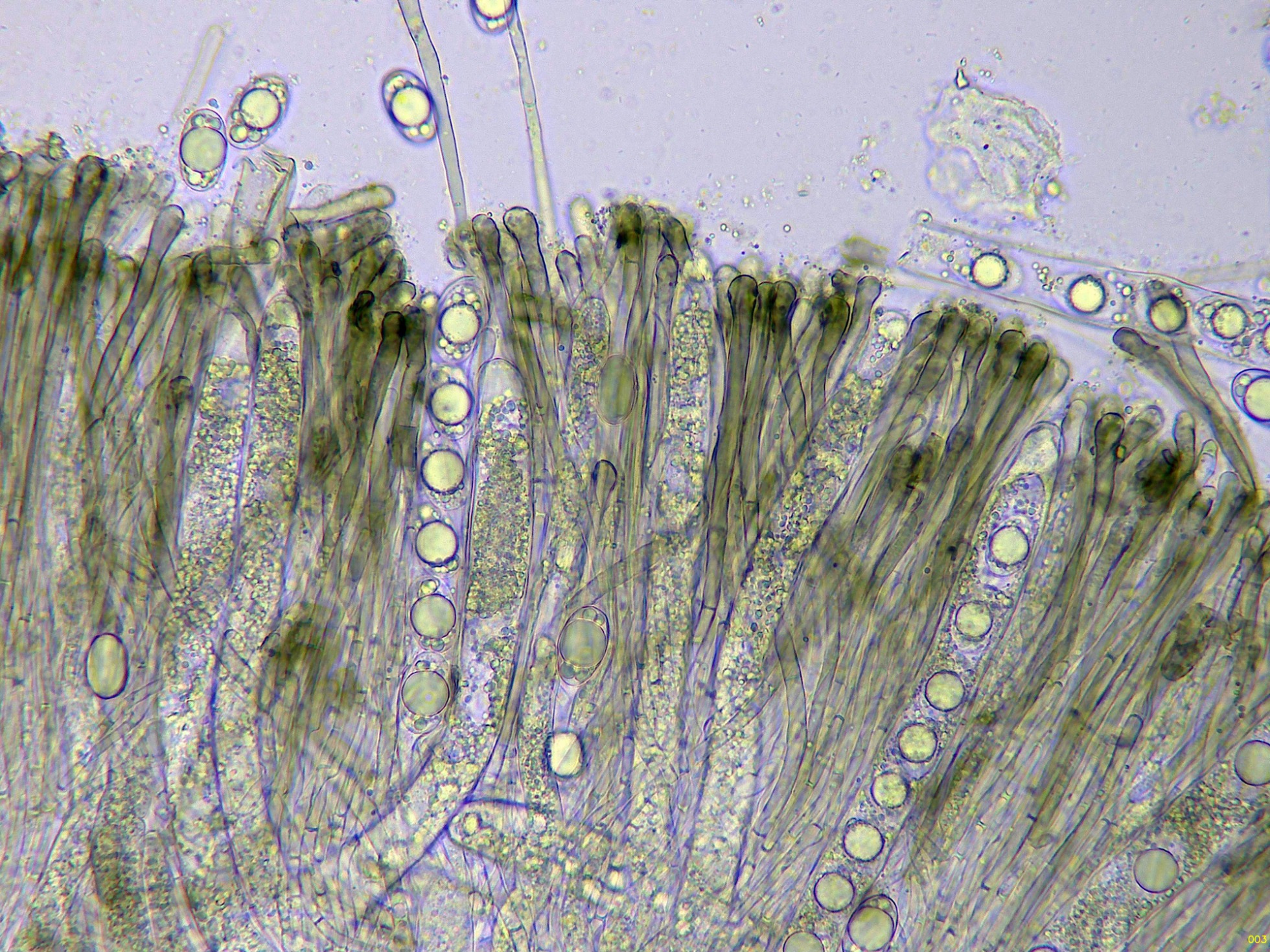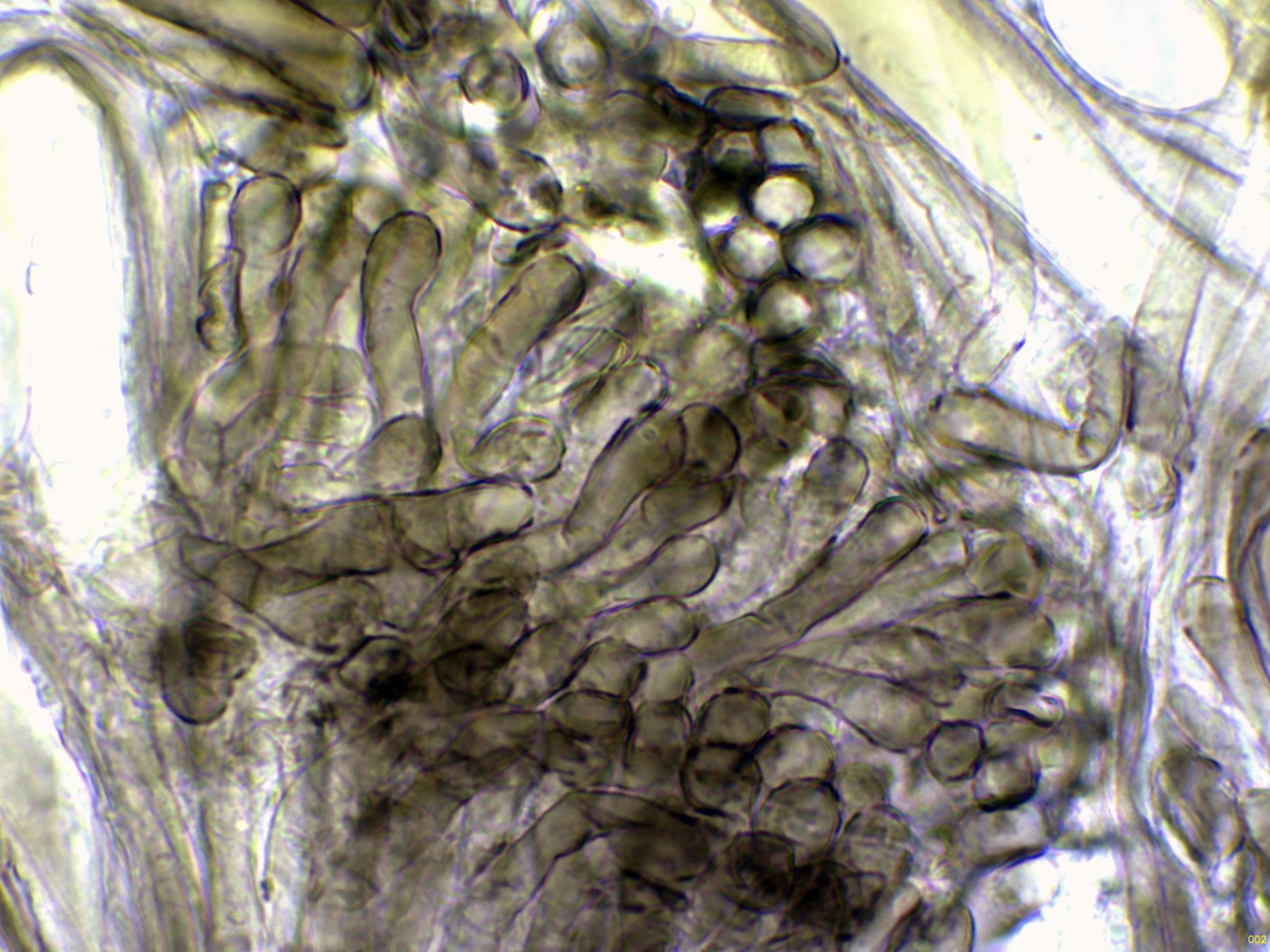 El himenio en Reactivo de Melzer a 400 aumentos:
