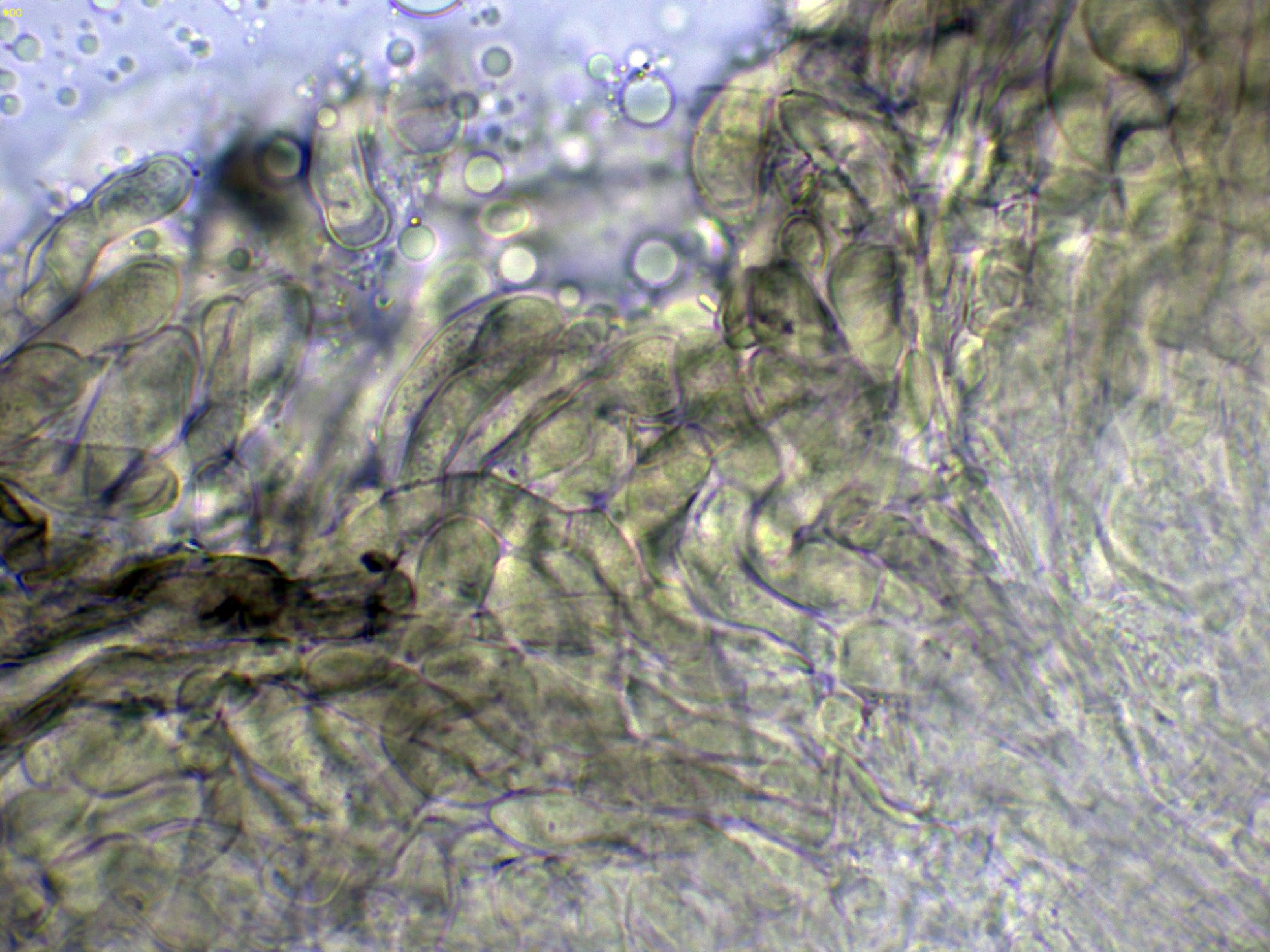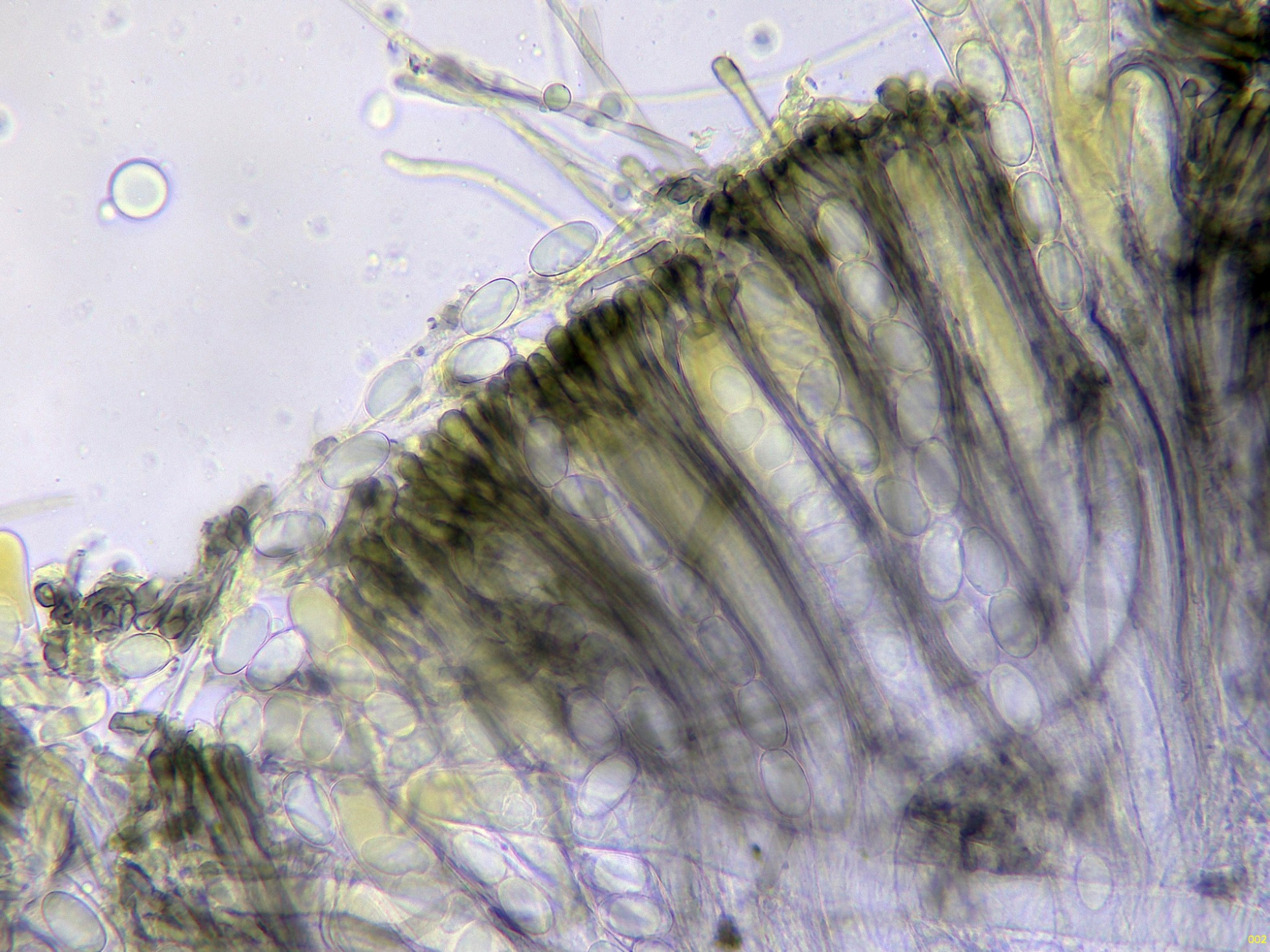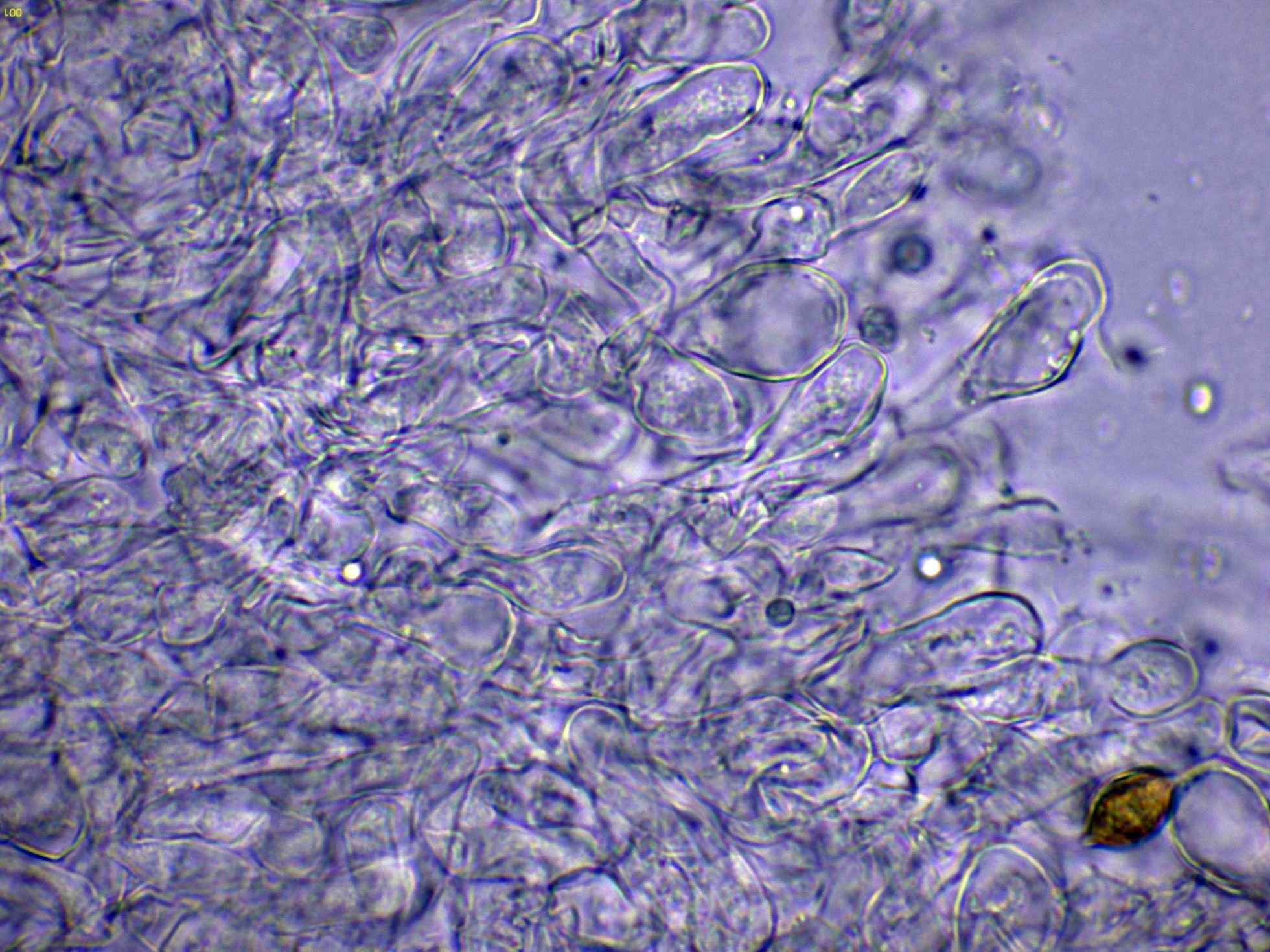 El himenio en Reactivo de Melzer a 400 aumentos: