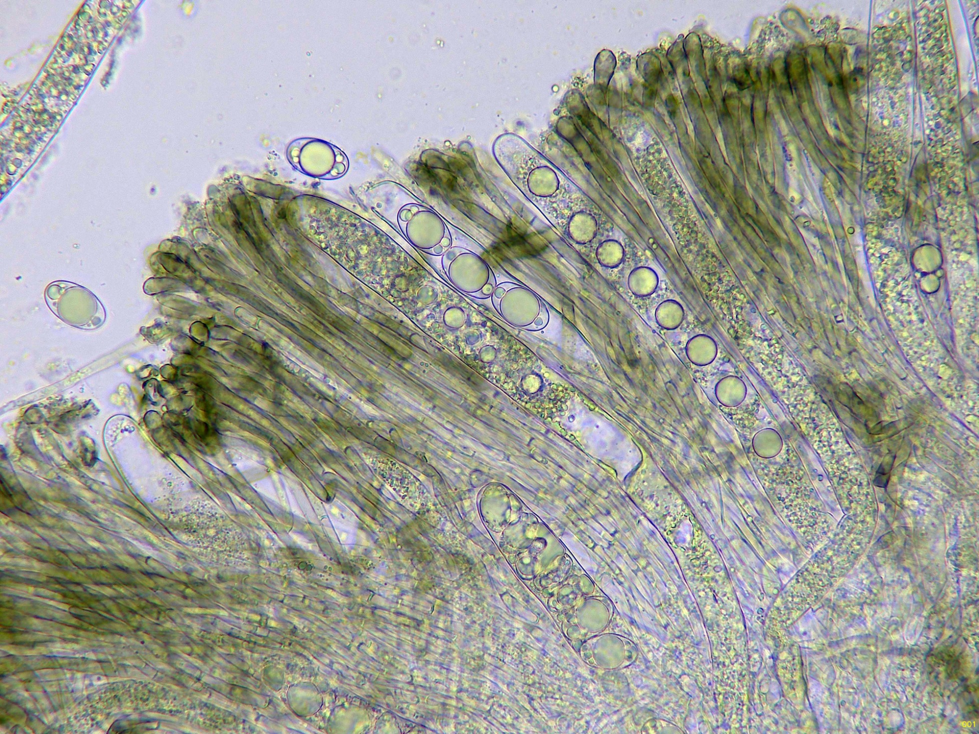 El himenio en agua a 400 aumentos: