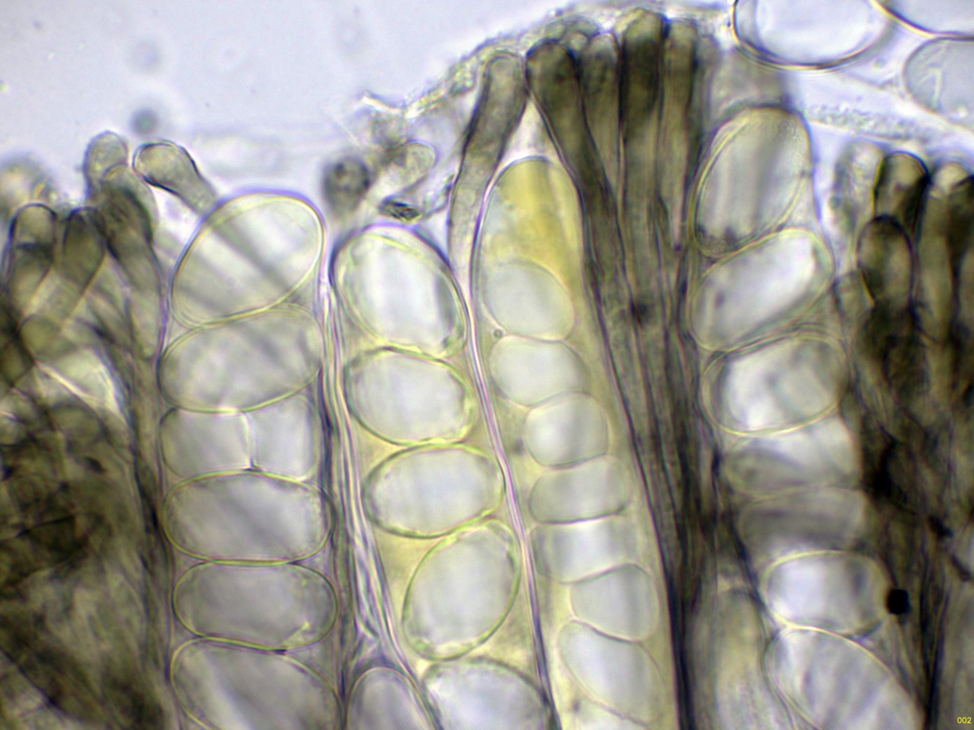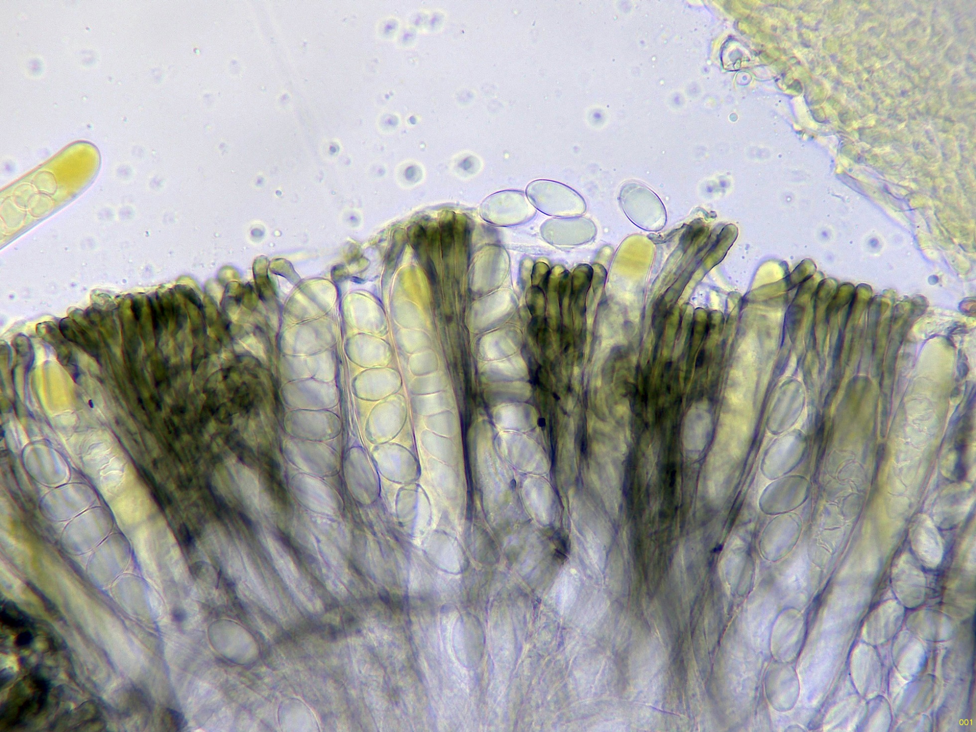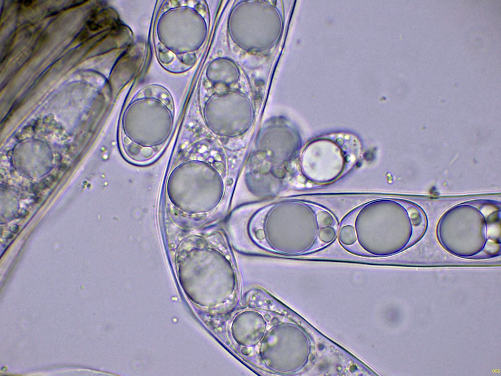 Los ascos en Reactivo de Melzer a 1000 aumentos: