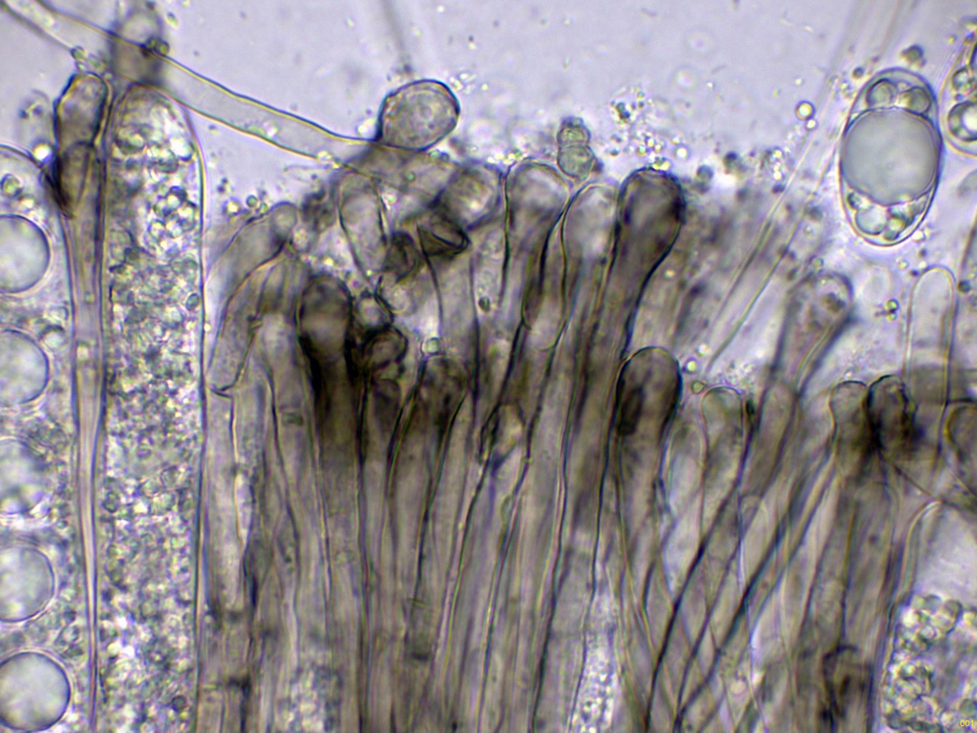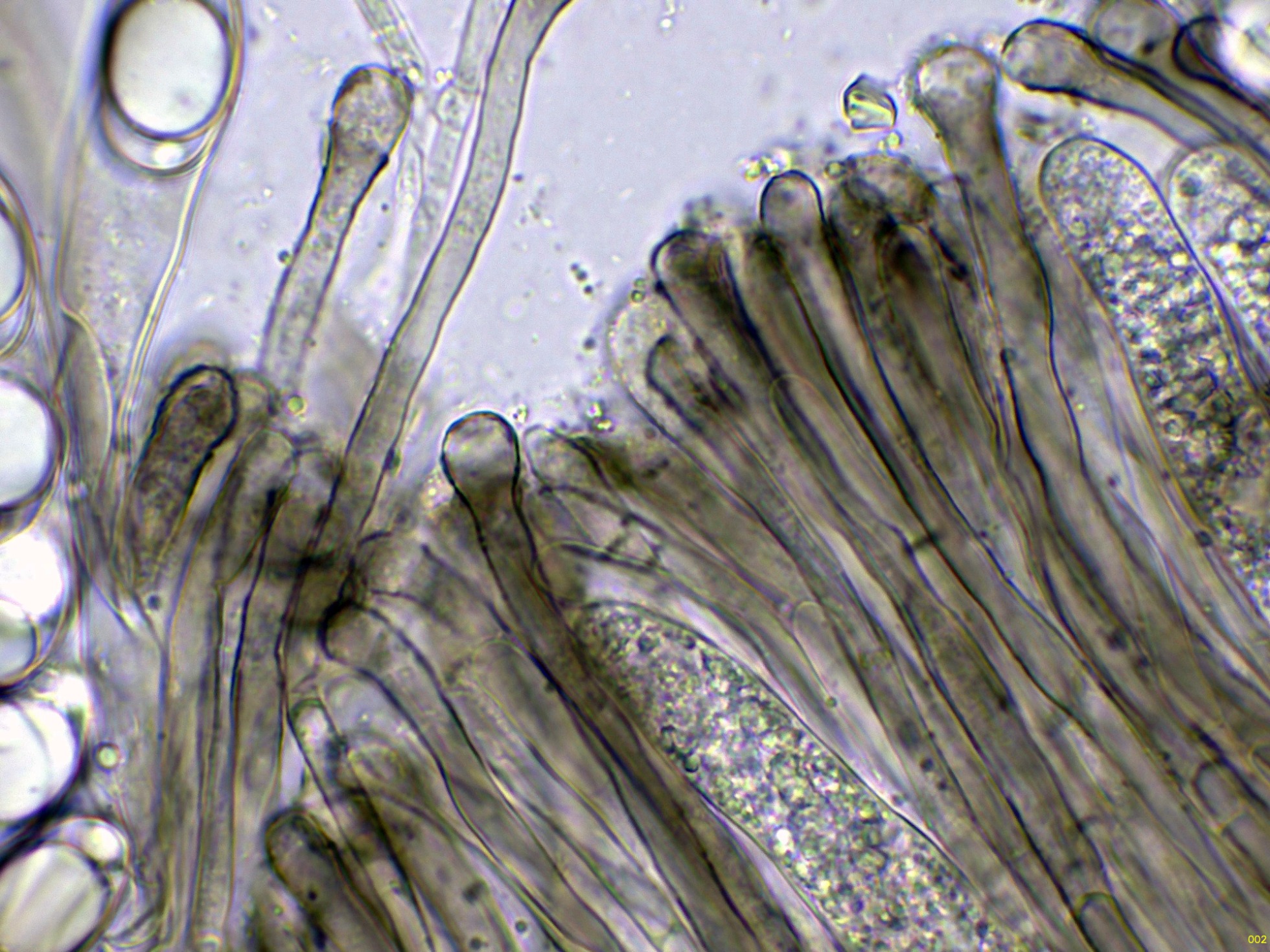Las hifas del excípulo en agua: