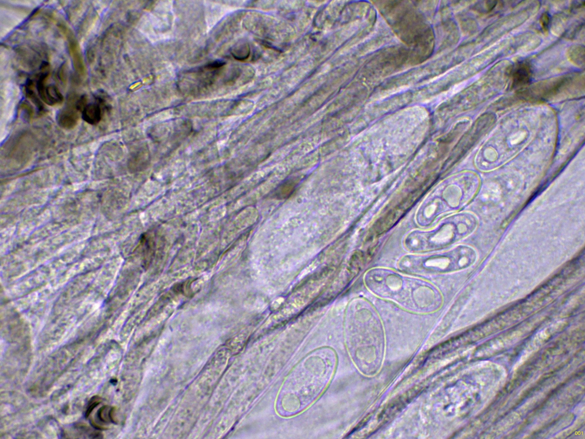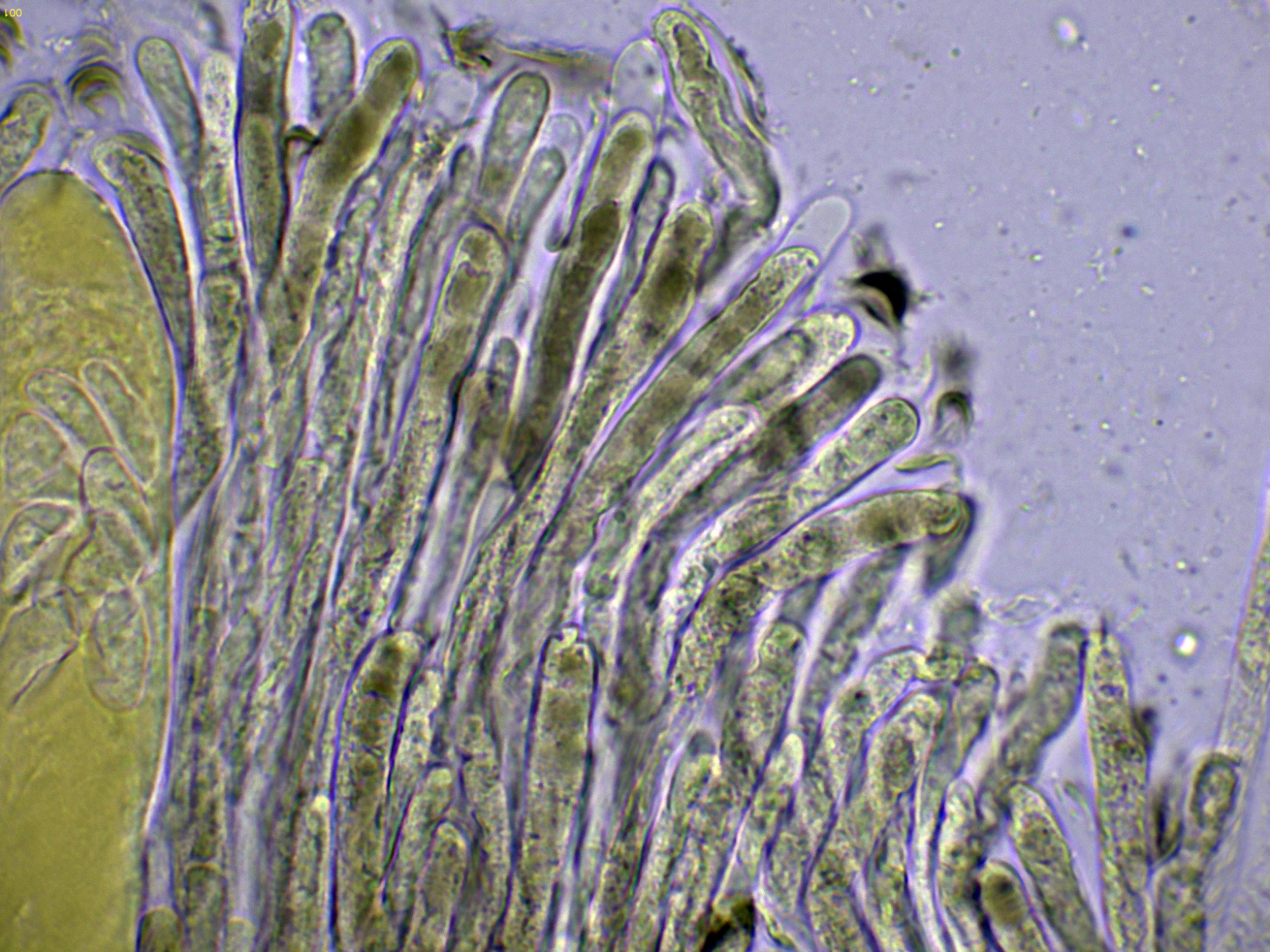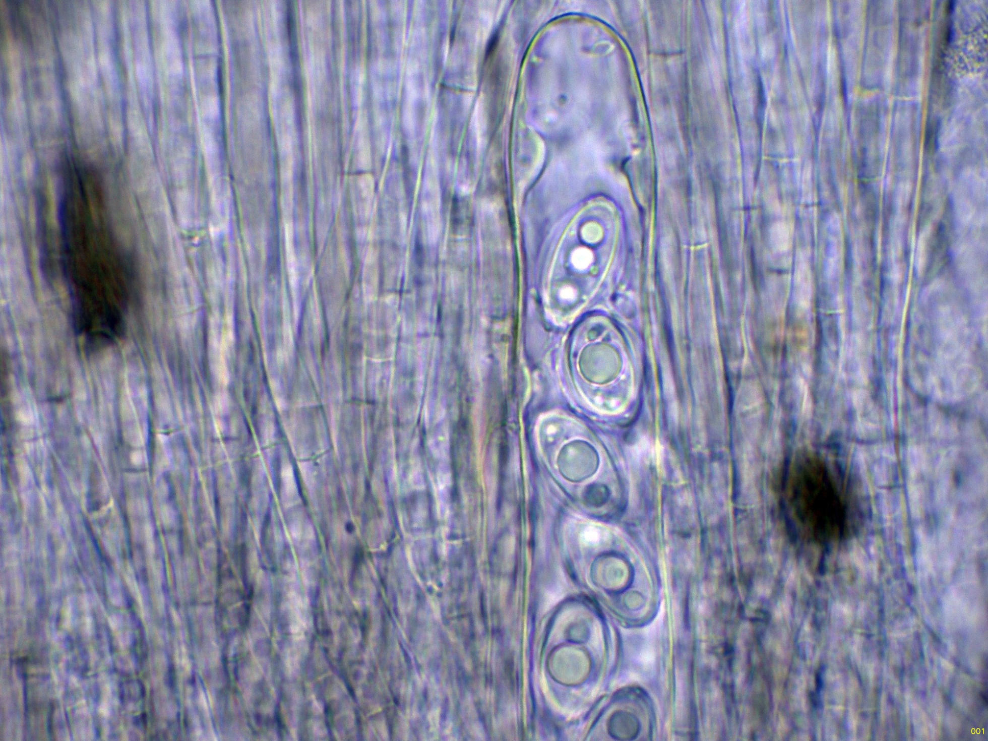 Ascos en Reactivo de Melzer a 1000 aumentos: