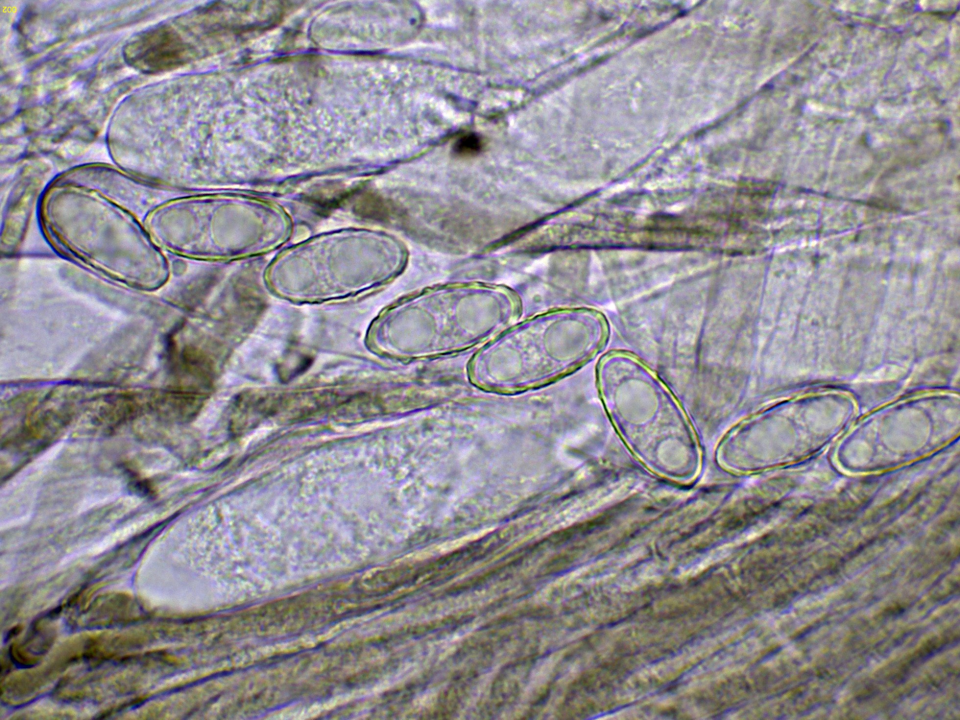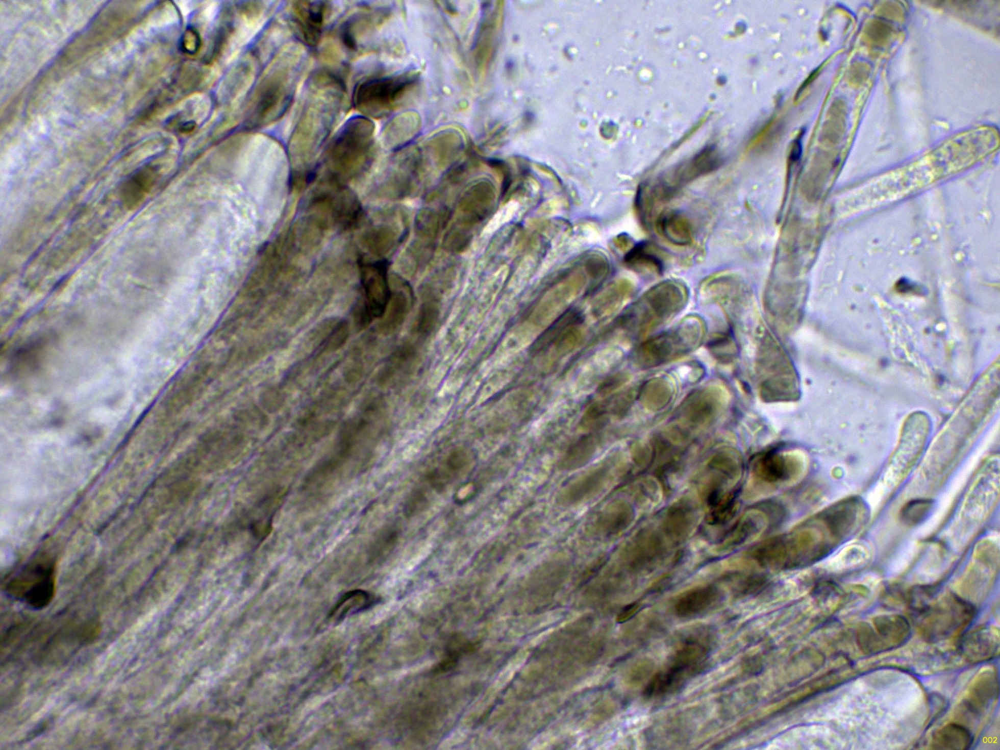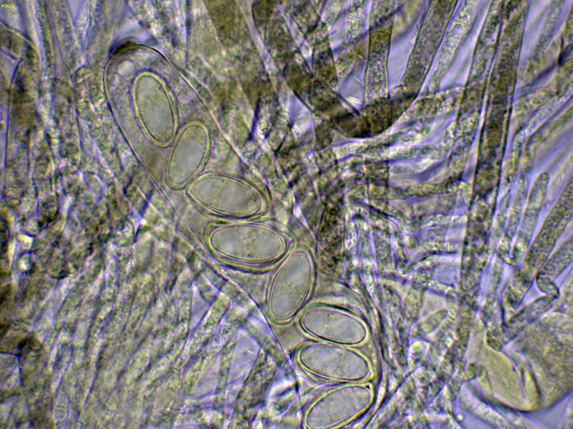 Ascos en Reactivo de Melzer a 1000 aumentos: