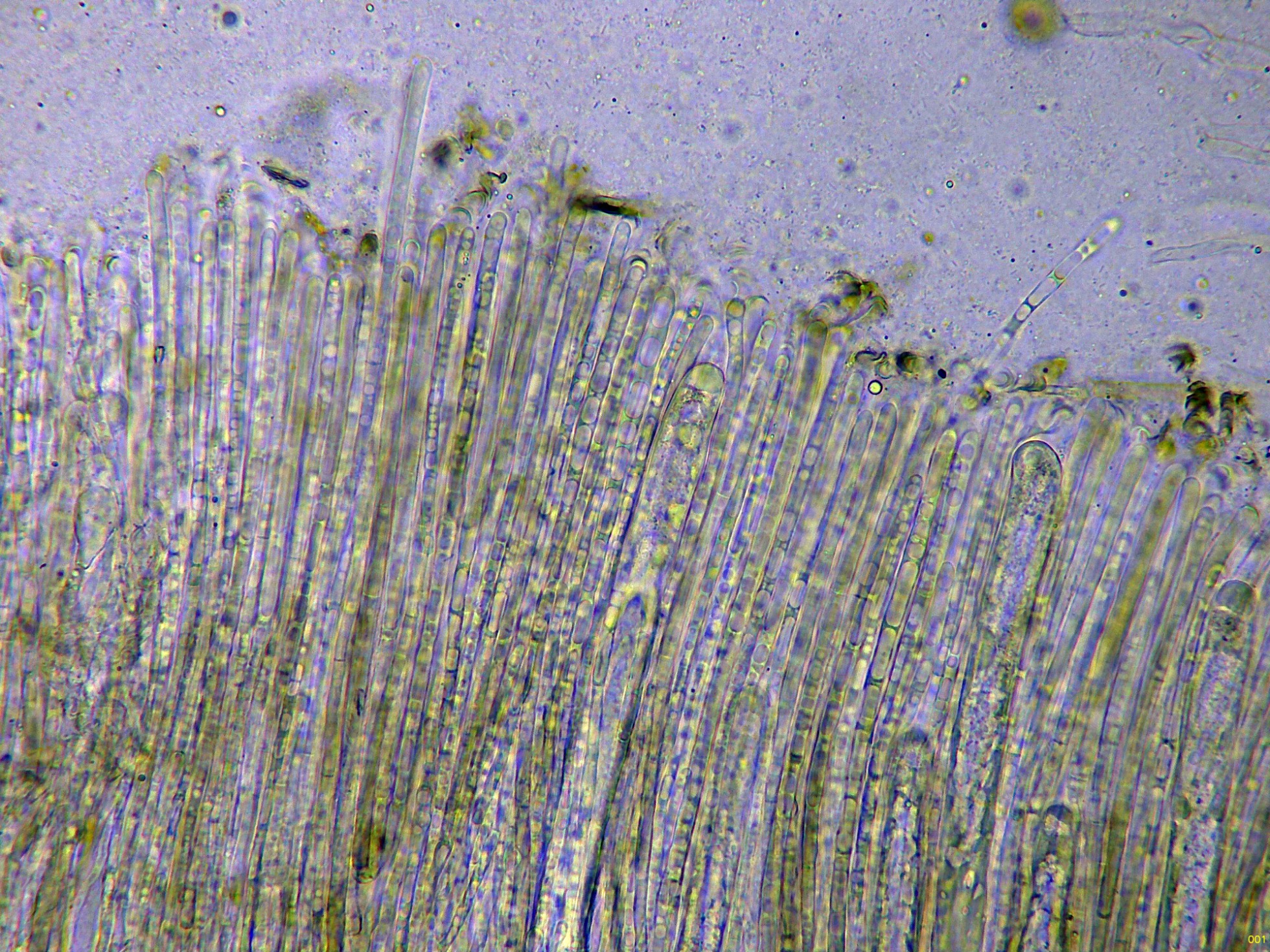 Las hifas del excípulo en Reactivo de Melzer: