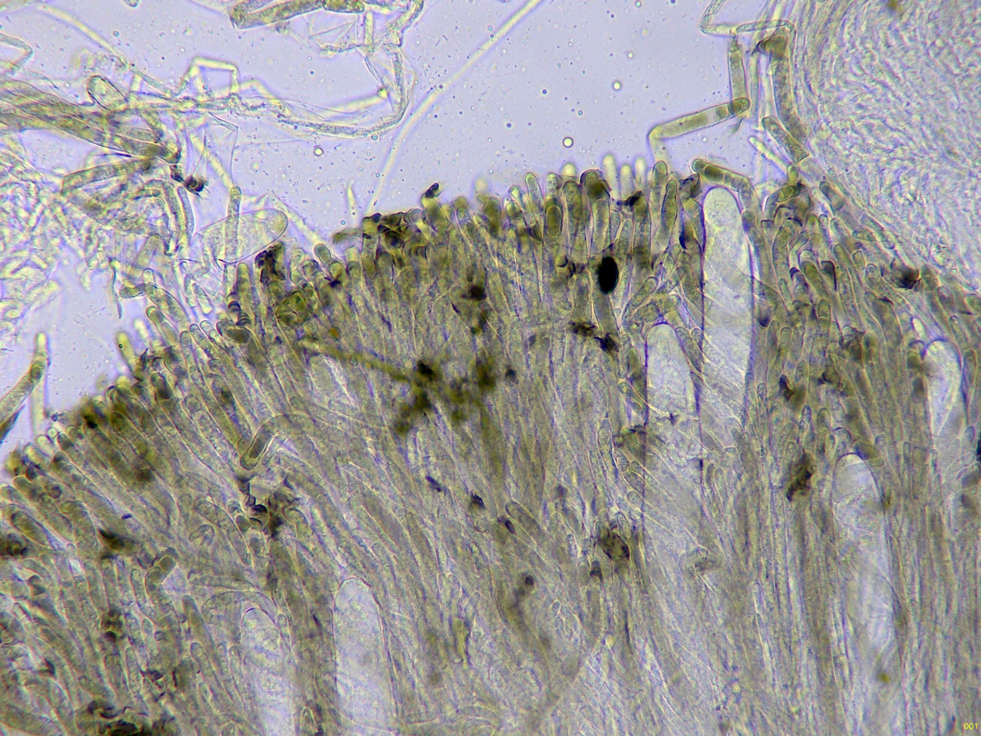 El himenio en Reactivo de Melzer a 400 aumentos:
