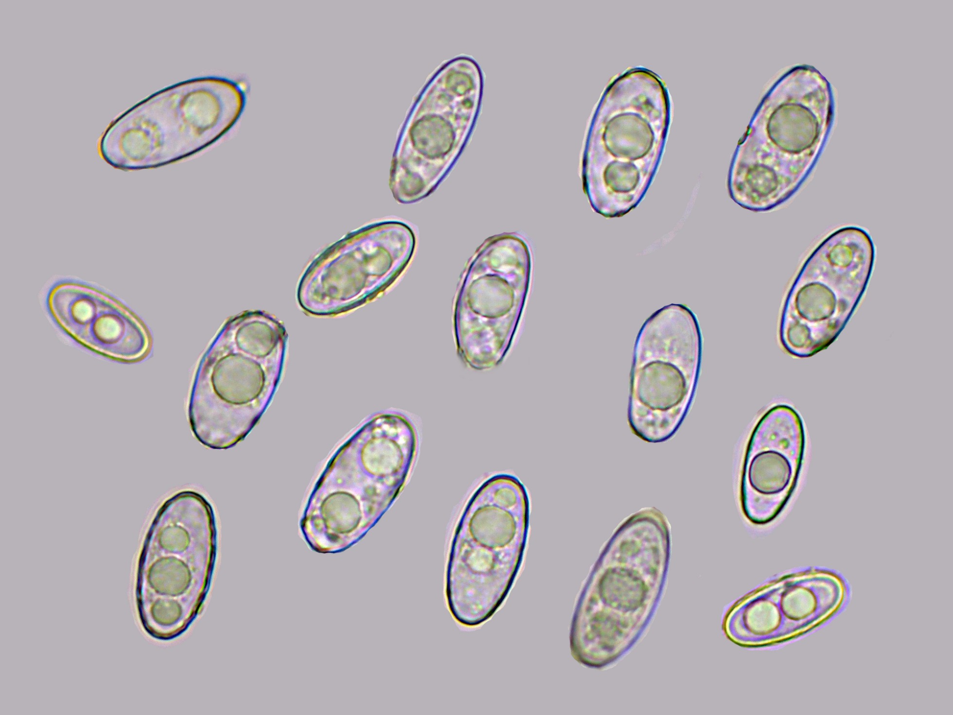 Aunque pocas estas esporas se obtuvieron por medio de la esporulación natural, con unas medidas en agua de: