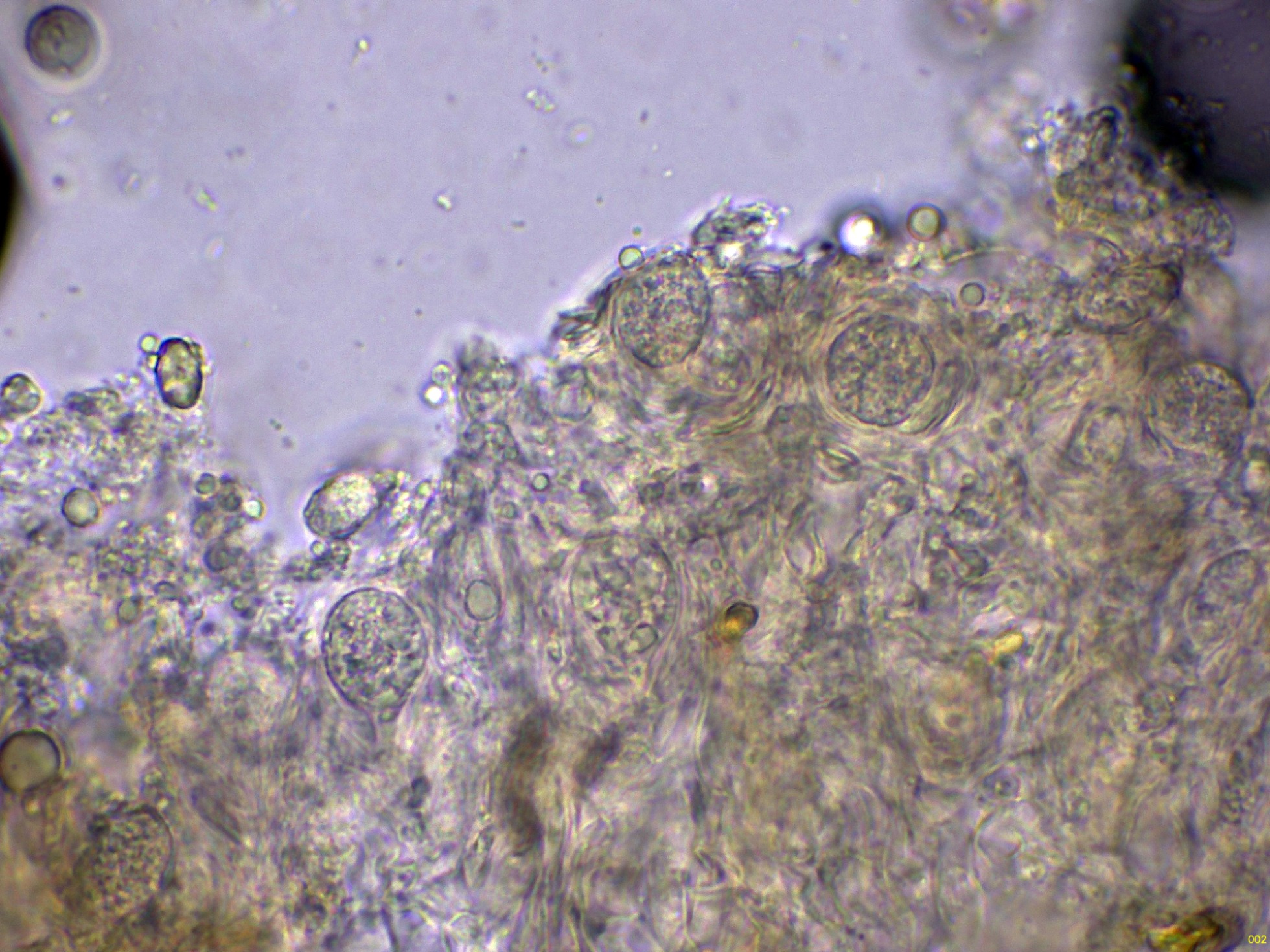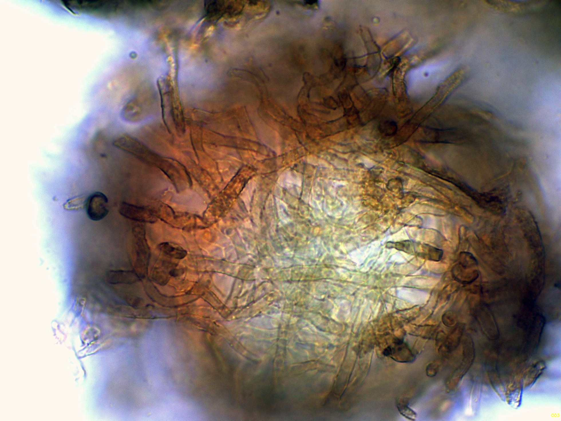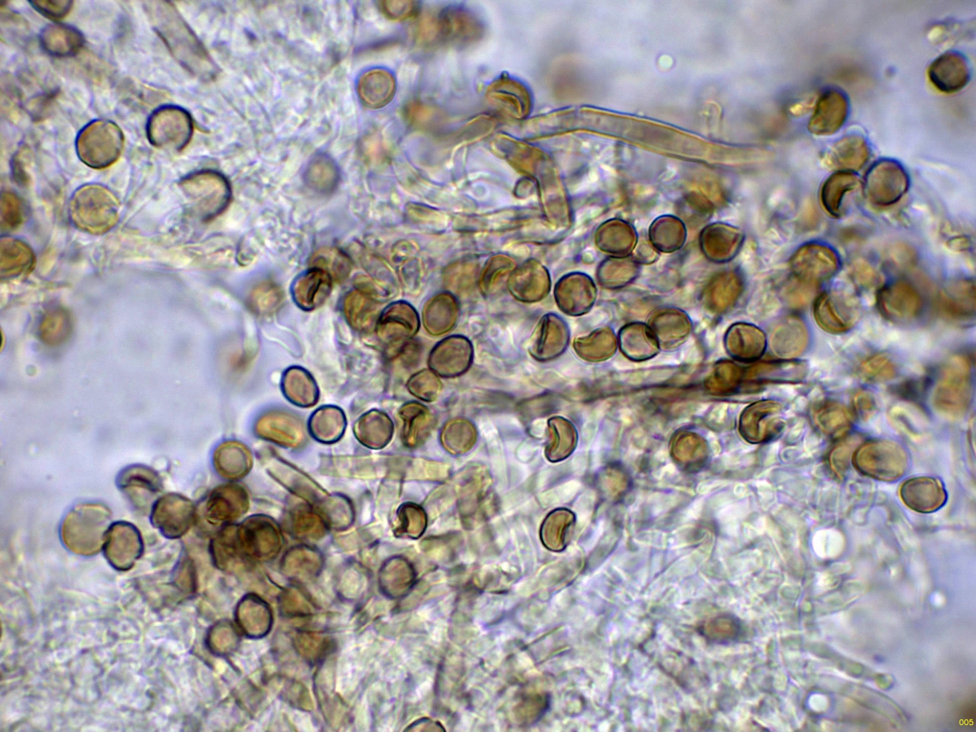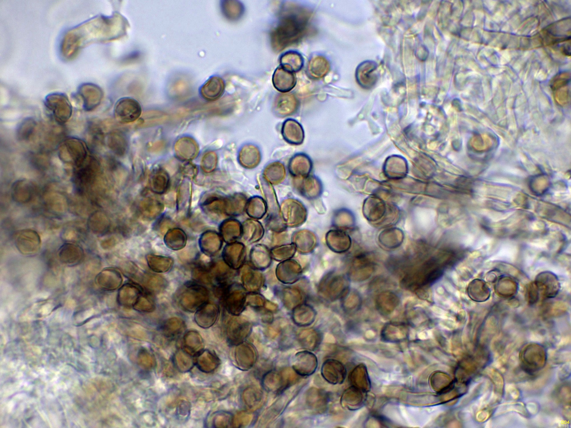 Atendiendo a su microscopía, todos los parámetros parecen apuntar a la Exidiopsis effusa, aunque esta no debería darse sobre madera de coníferas, y la madera era muy probablemente de Pinus sylvestris, ante la duda lo dejo como lo más parecido, es decir Exidiopsis aff. effusa.