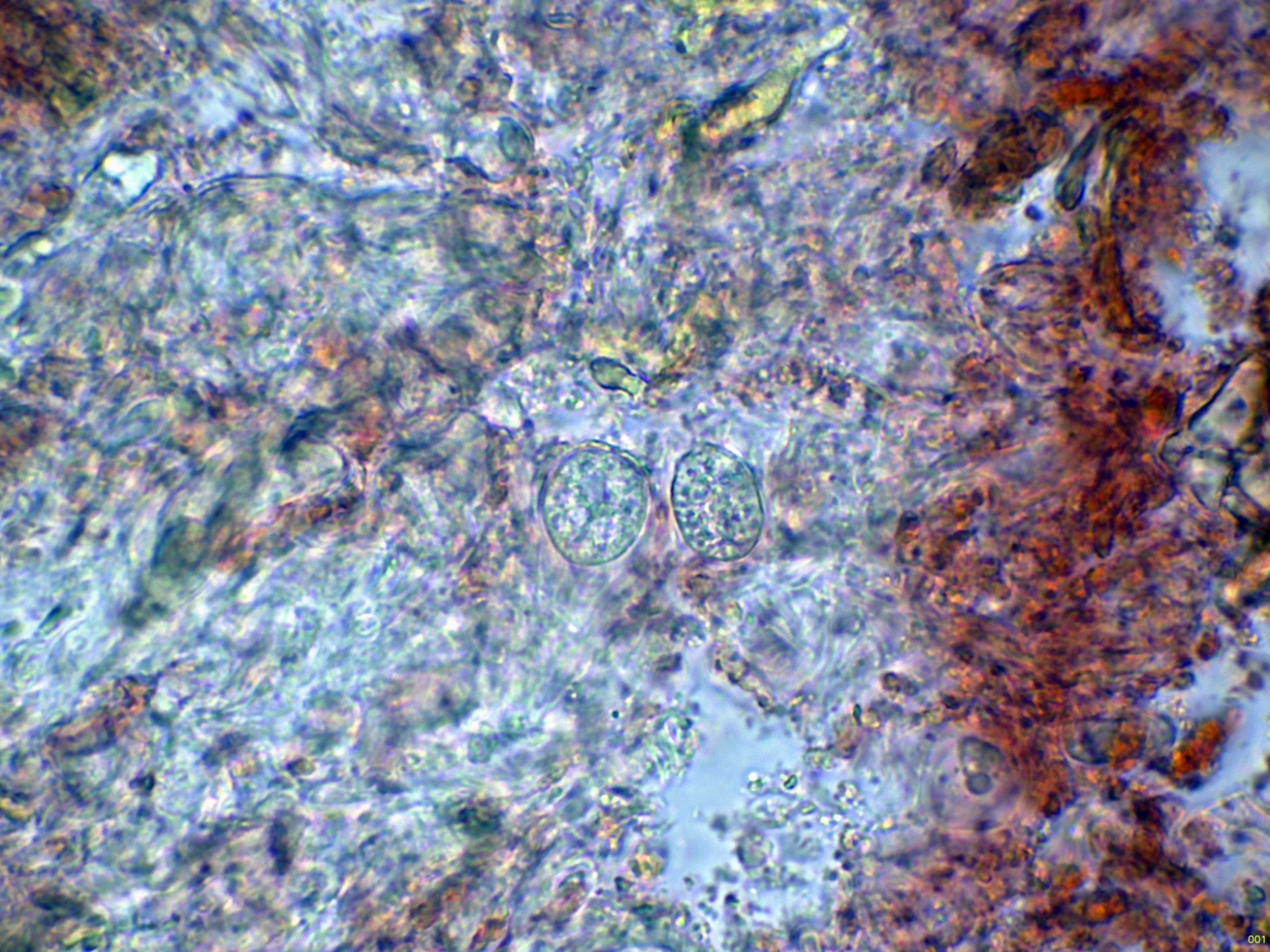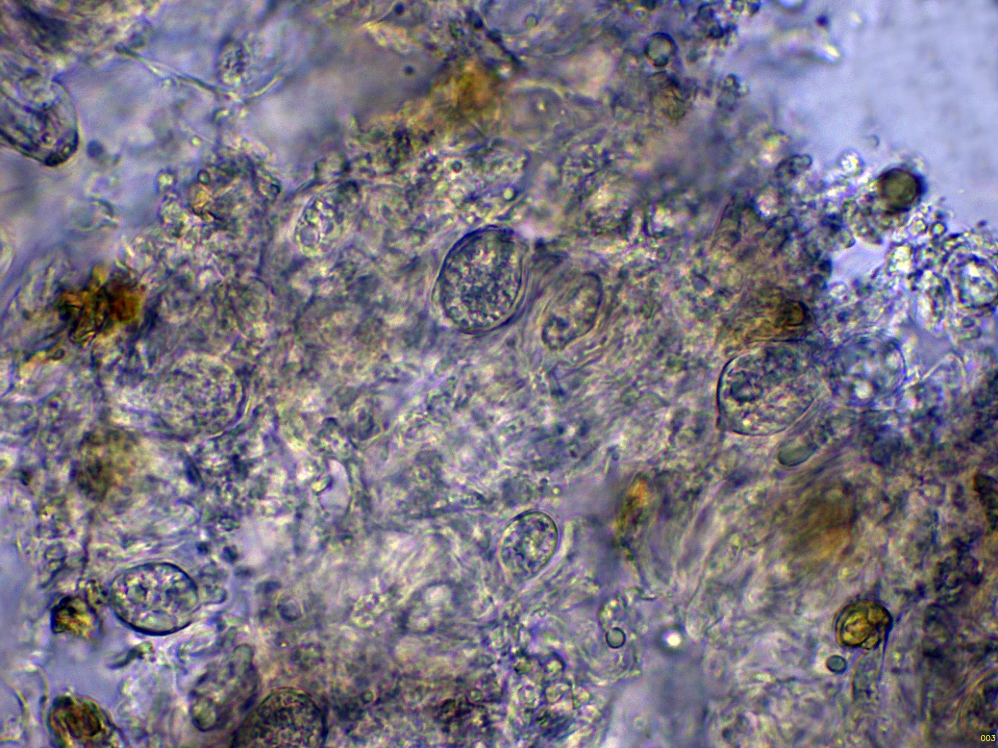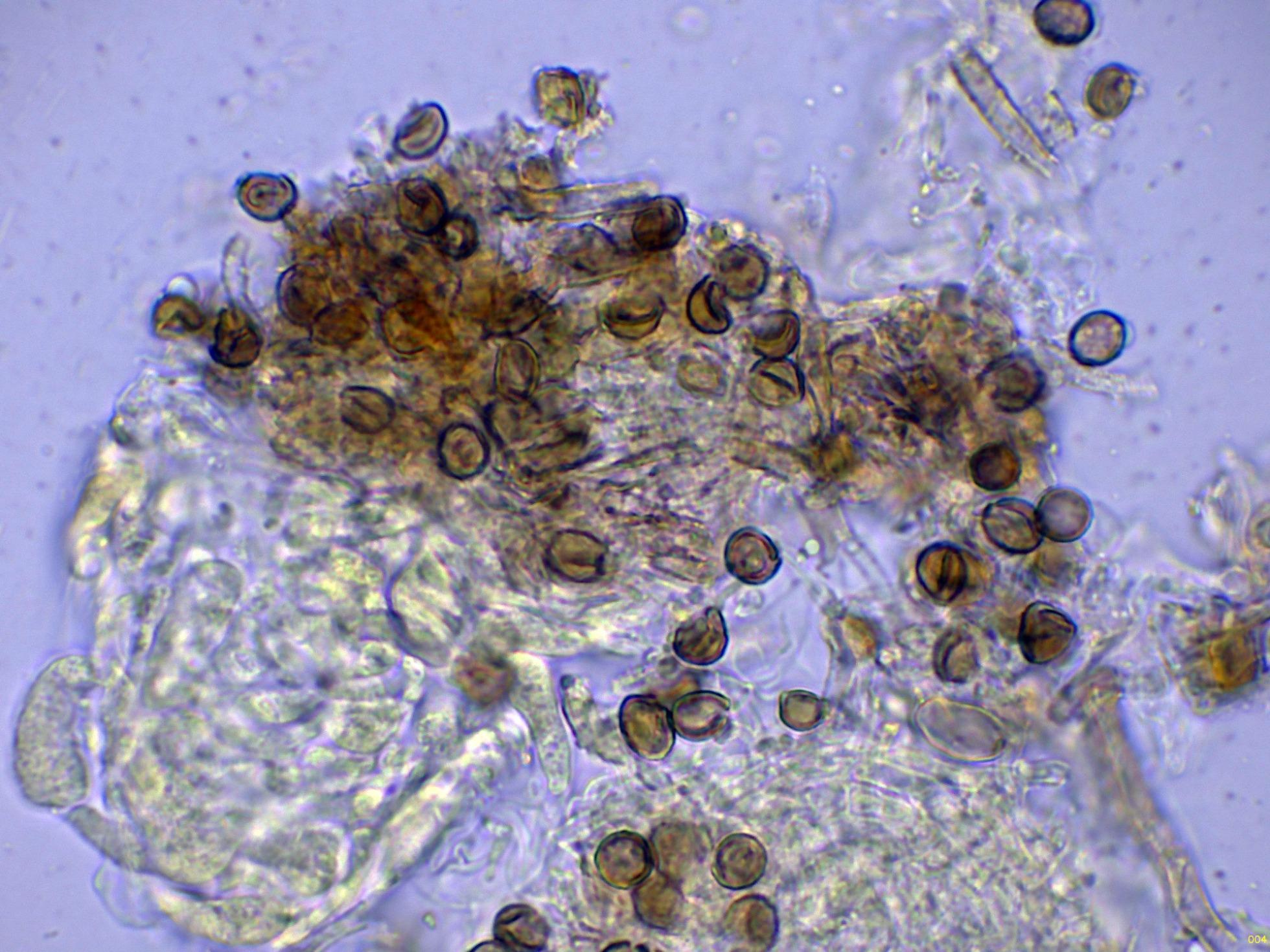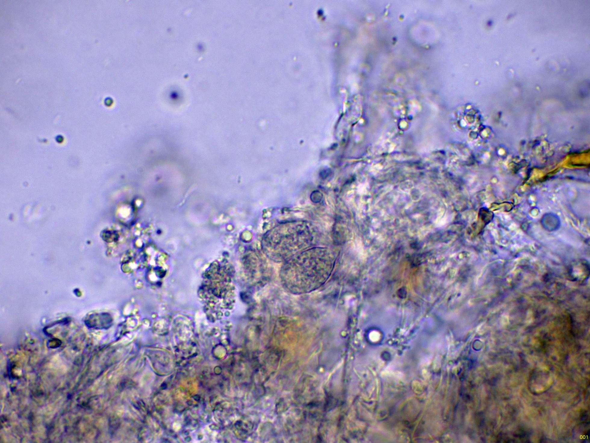 Atendiendo a su microscopía, todos los parámetros parecen apuntar a la Exidiopsis effusa, aunque esta no debería darse sobre madera de coníferas, y la madera era muy probablemente de Pinus sylvestris, ante la duda lo dejo como lo más parecido, es decir Exidiopsis aff. effusa.