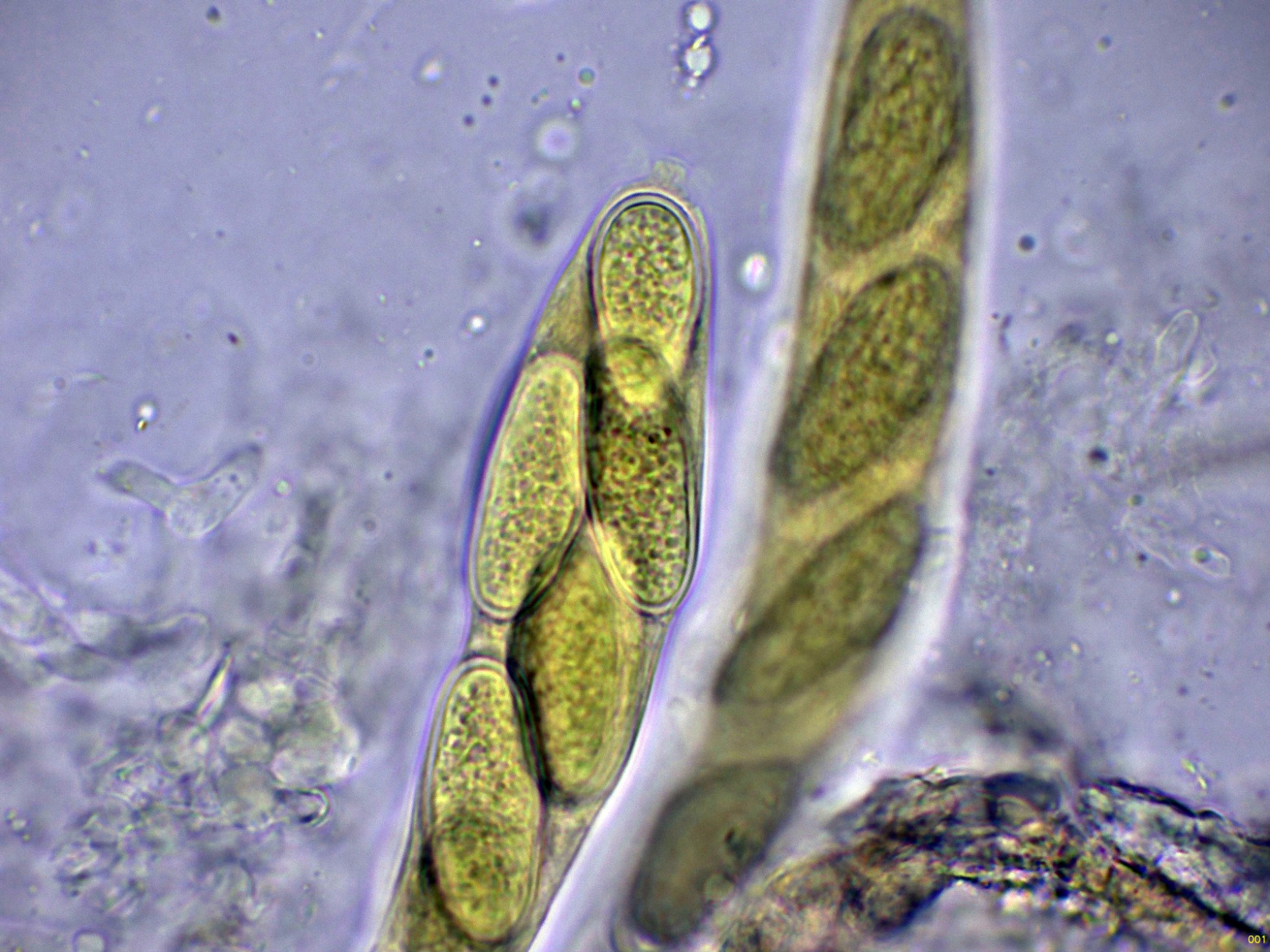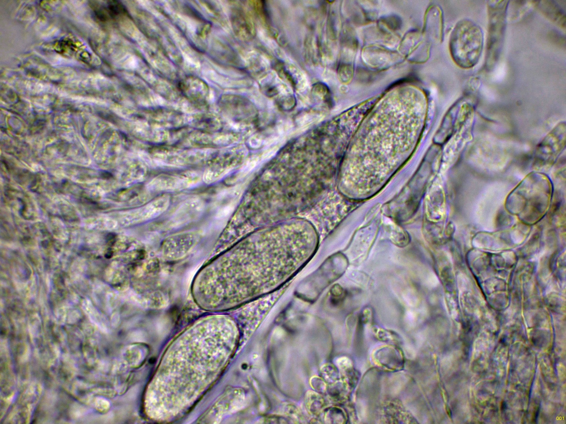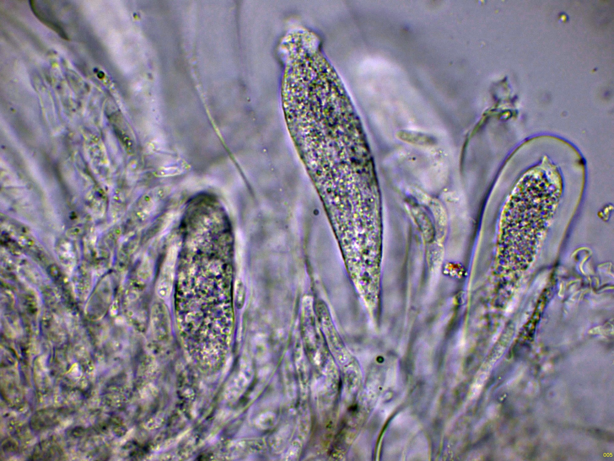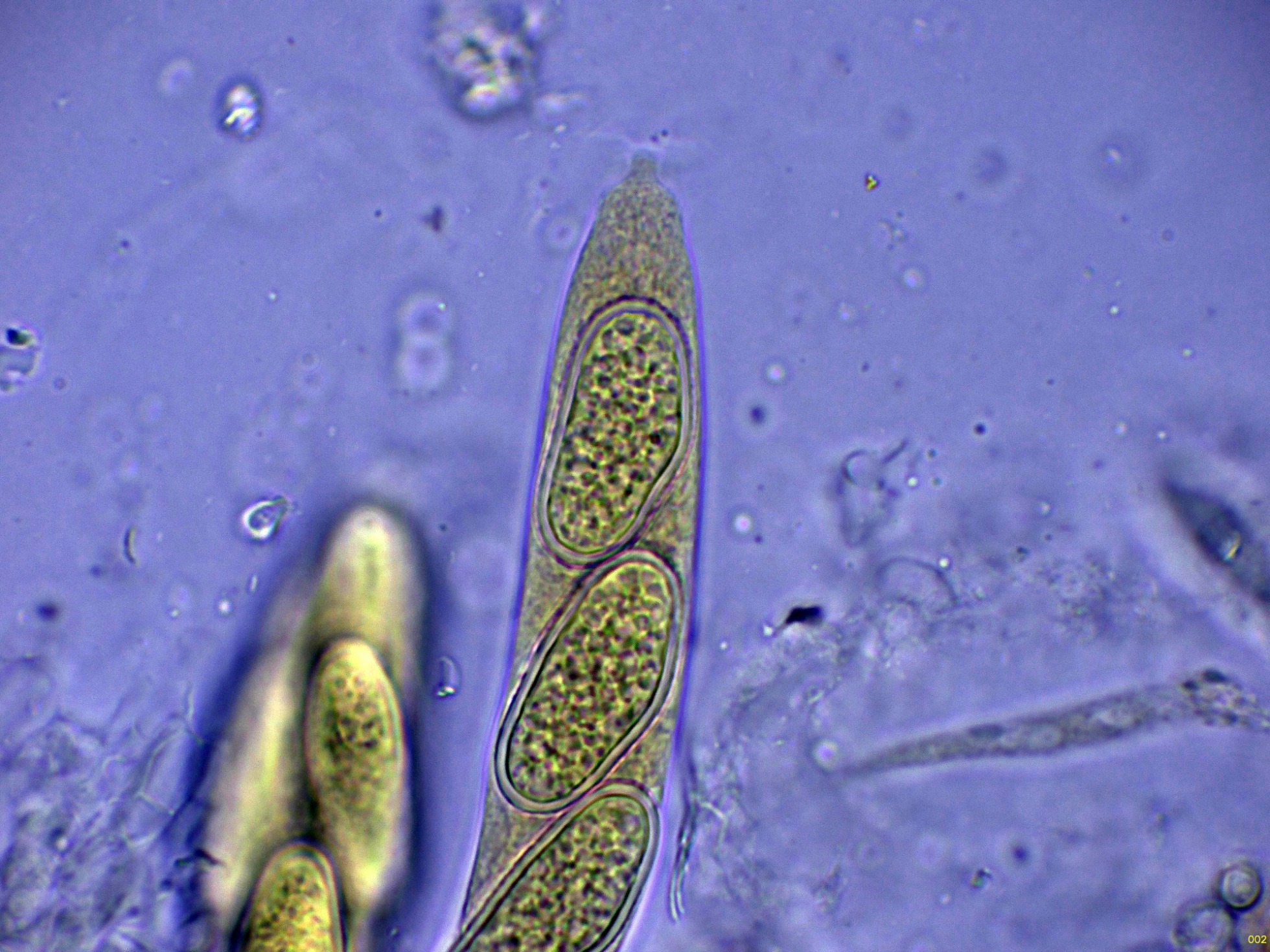 Ascos maduros con ascosporas en su interior: