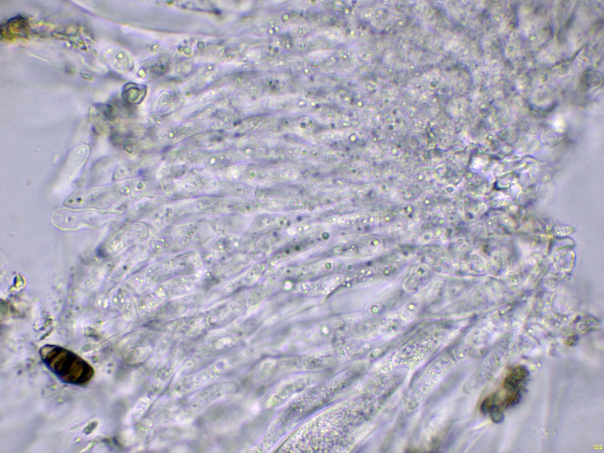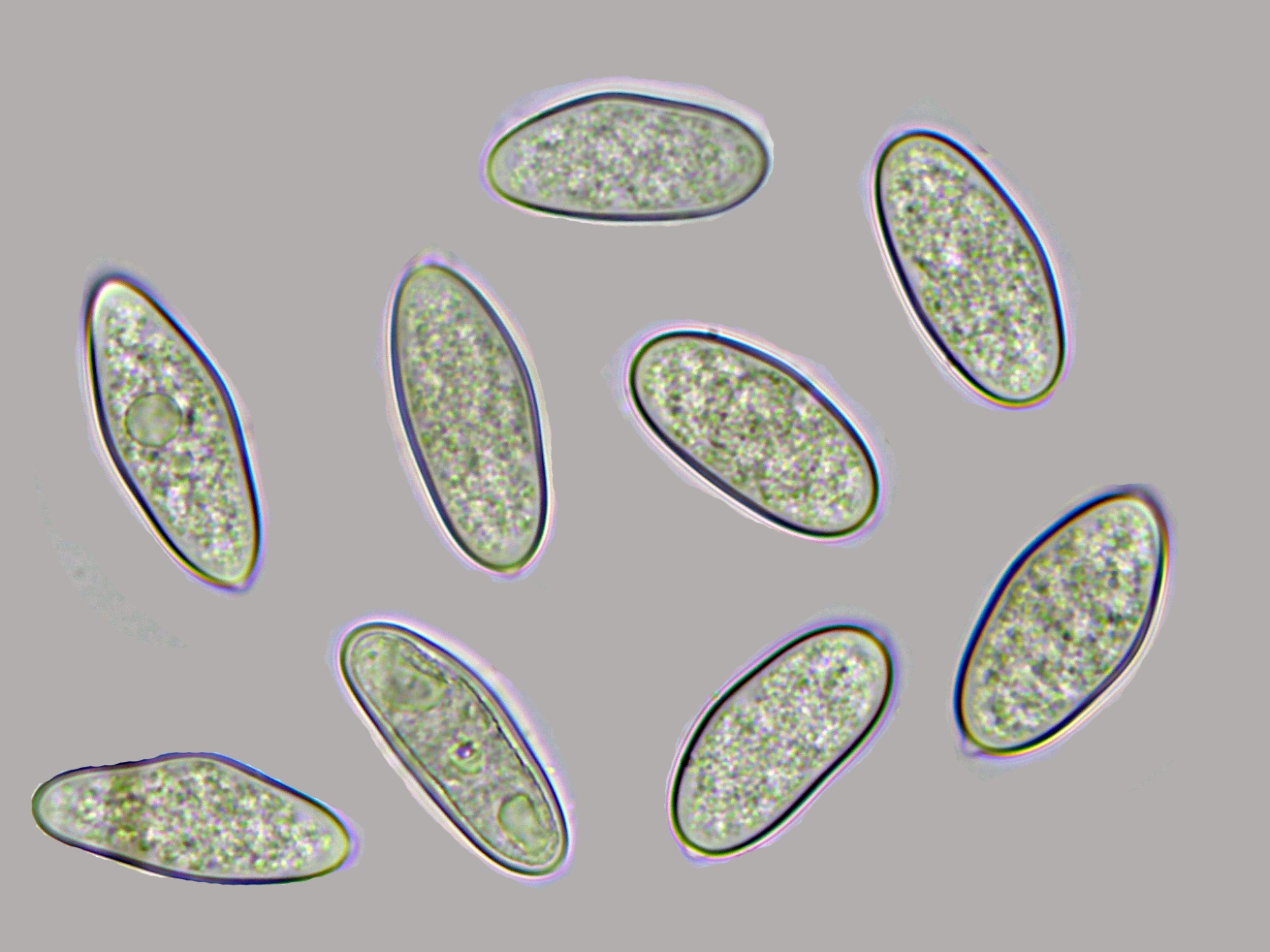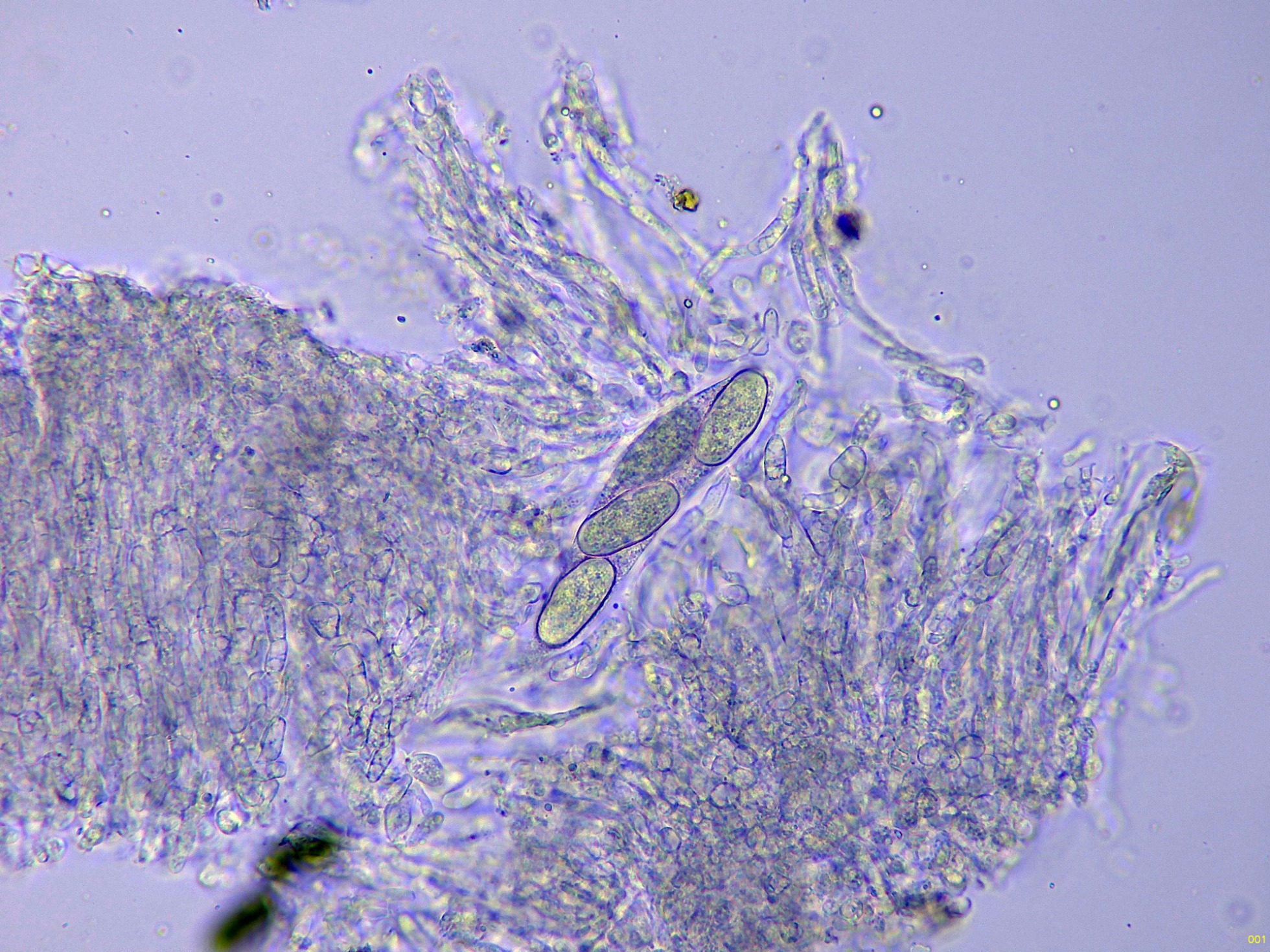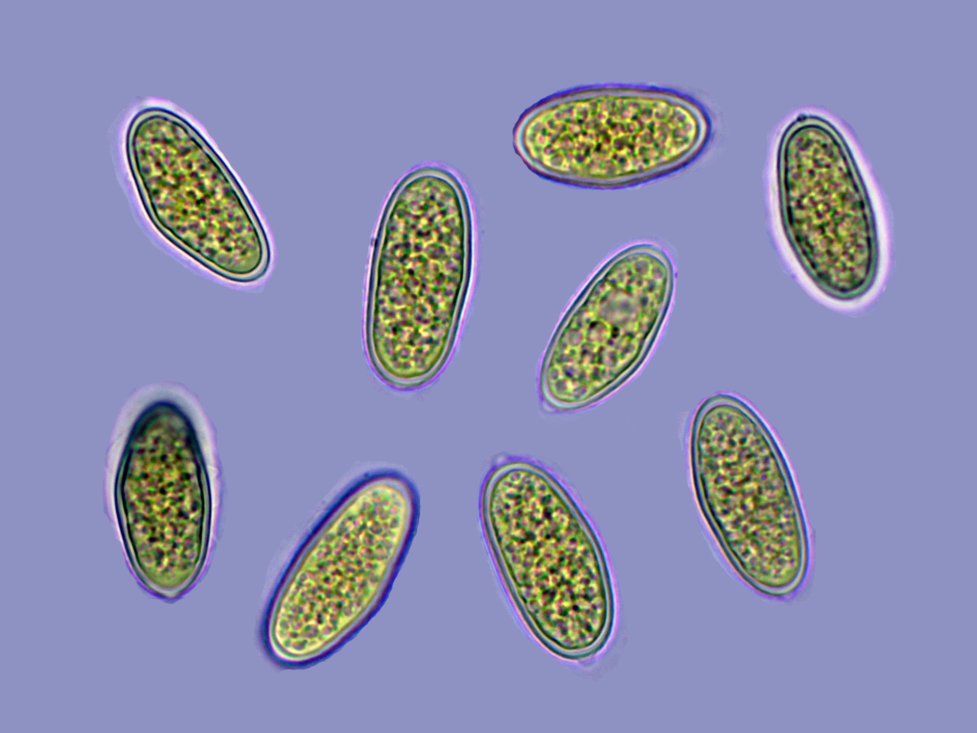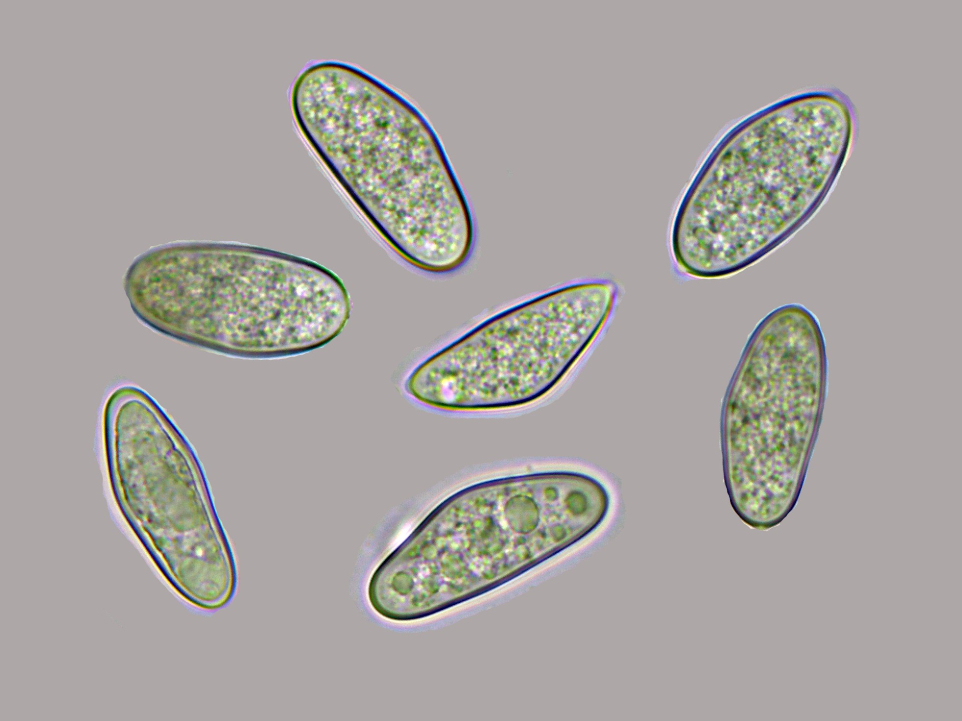 Ascos maduros con ascosporas en su interior: