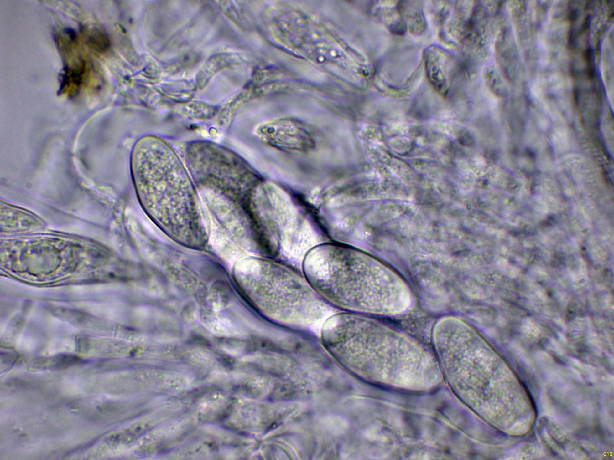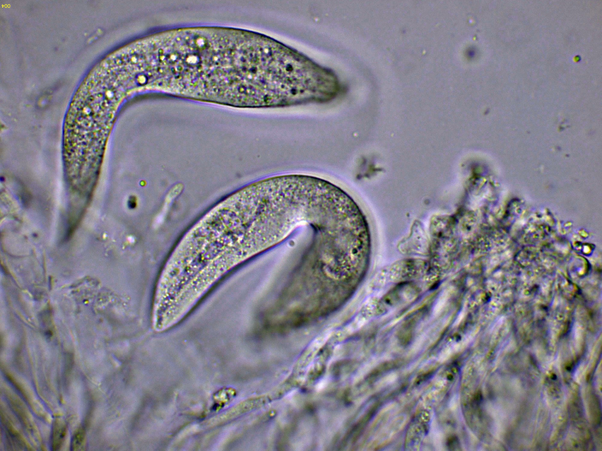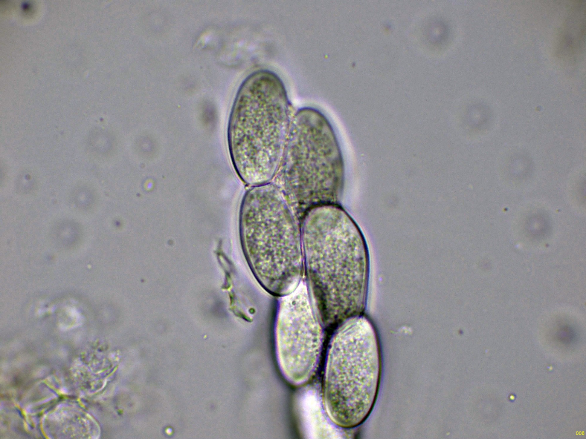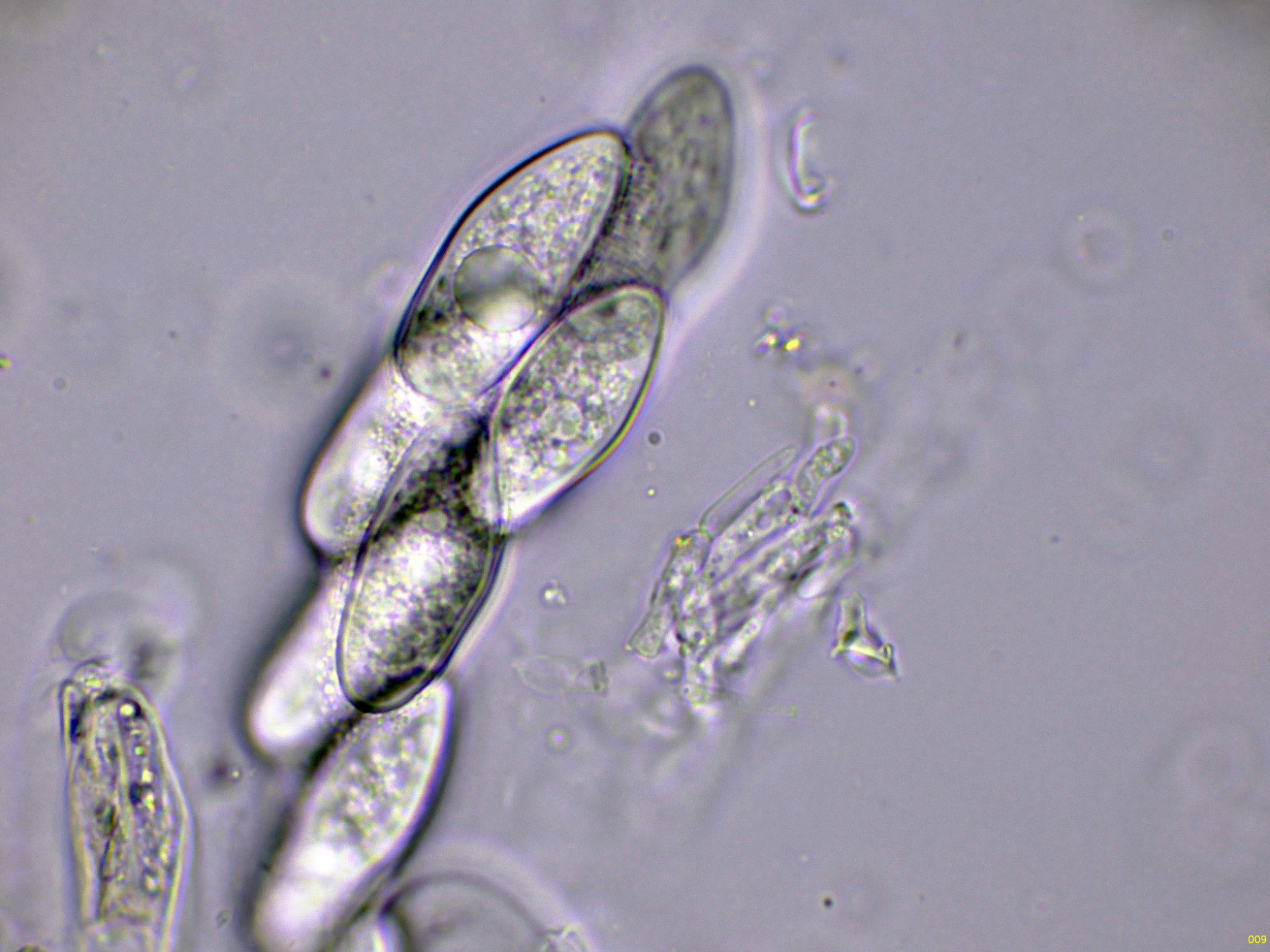 Ascos inmaduros en agua a 1000 aumentos: