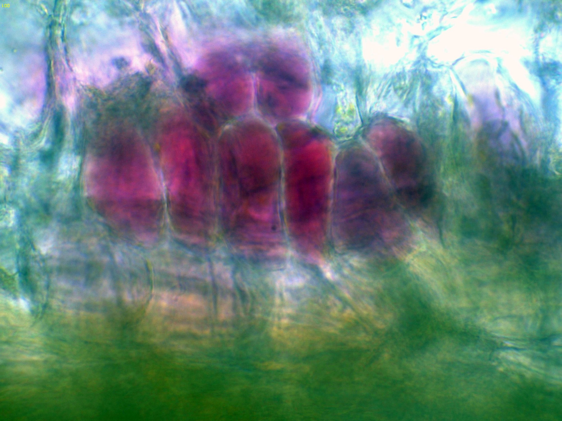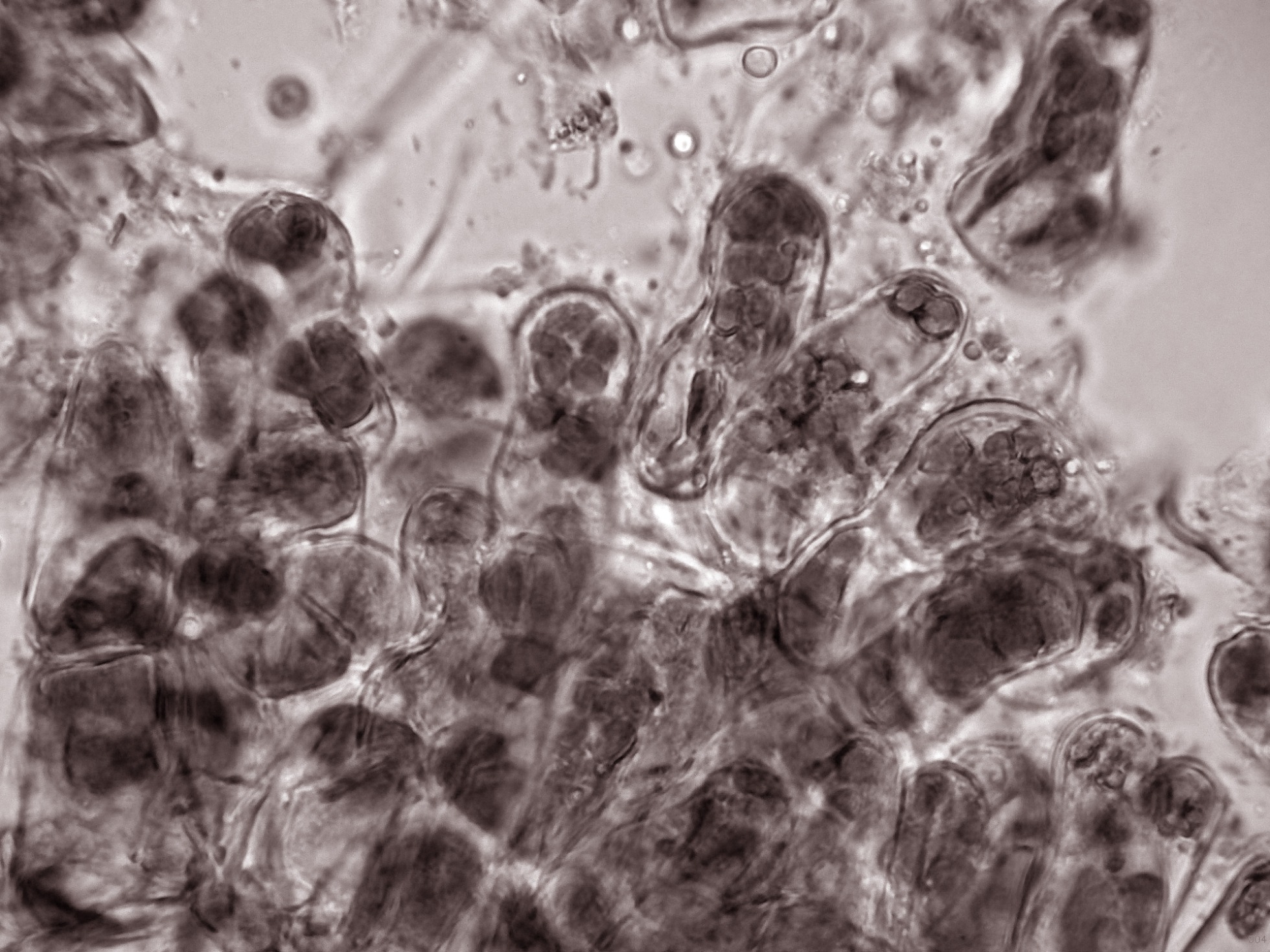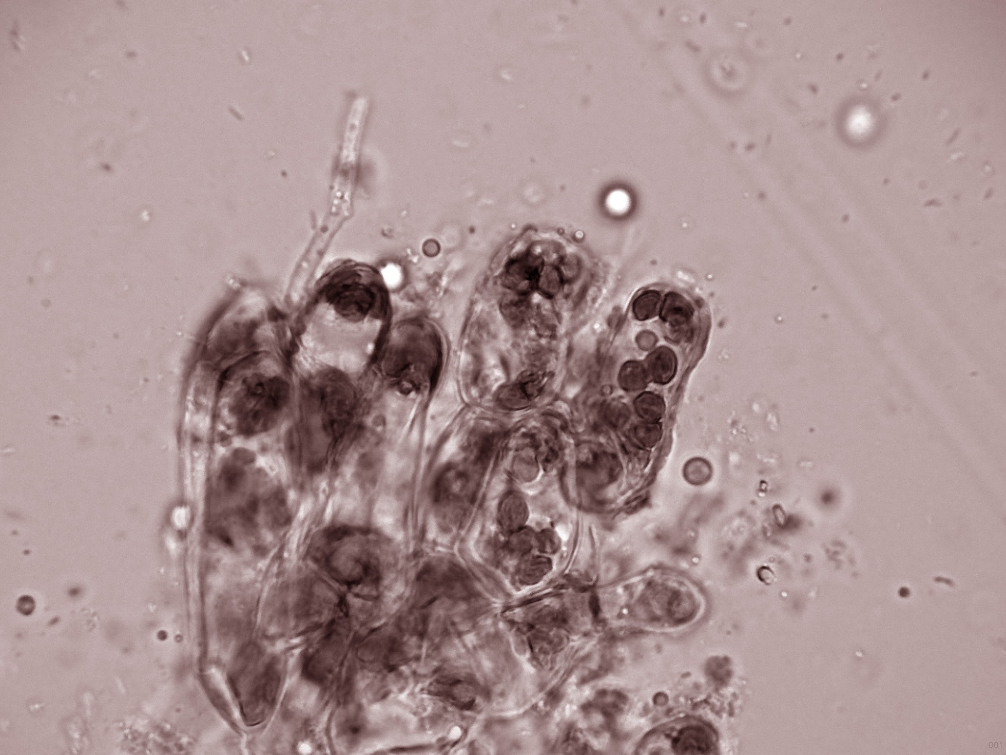 Y por último y también "quizás", lo que presumiblemente podría tratarse de ascos con ascosporas en formación en su interior.