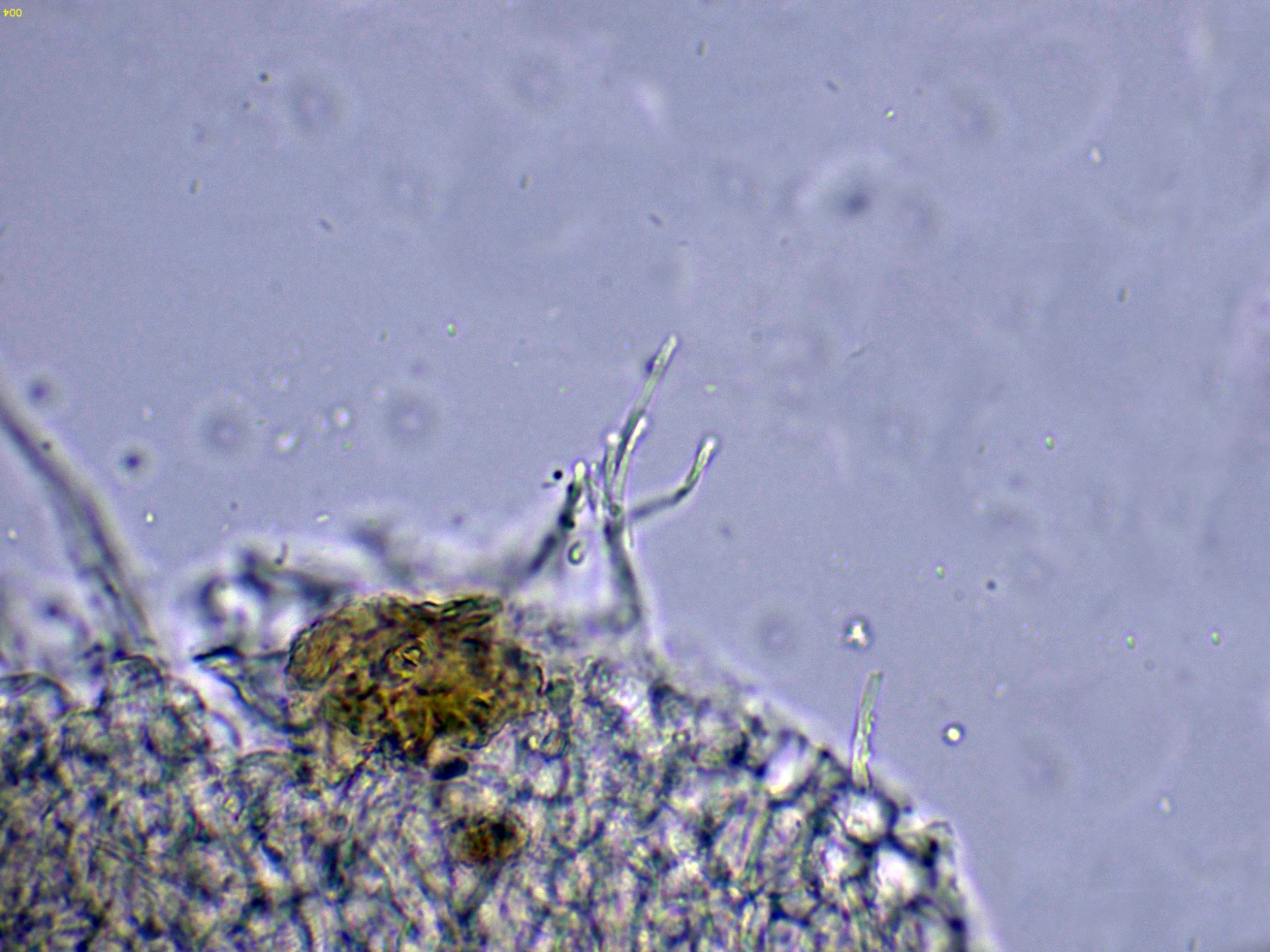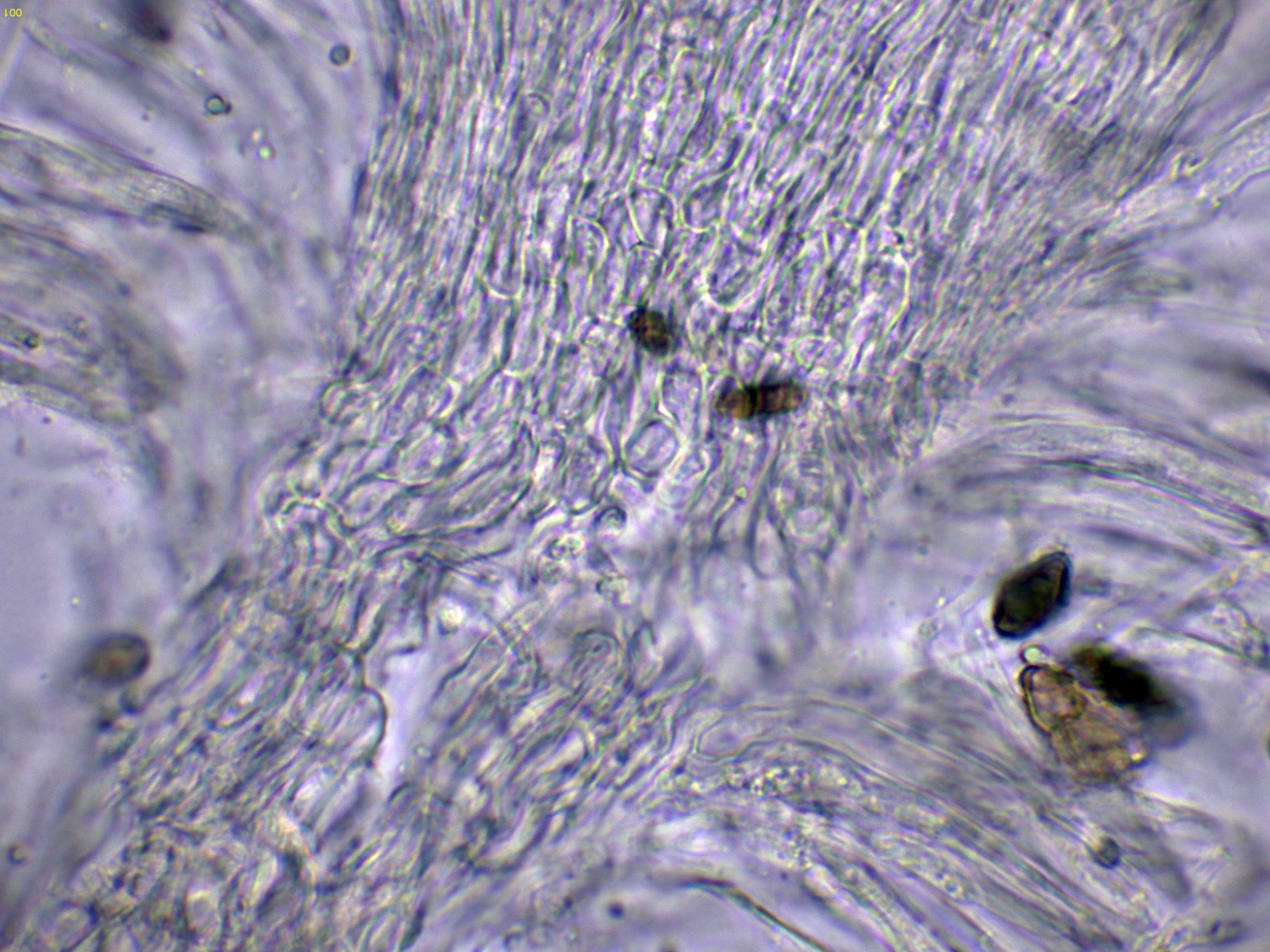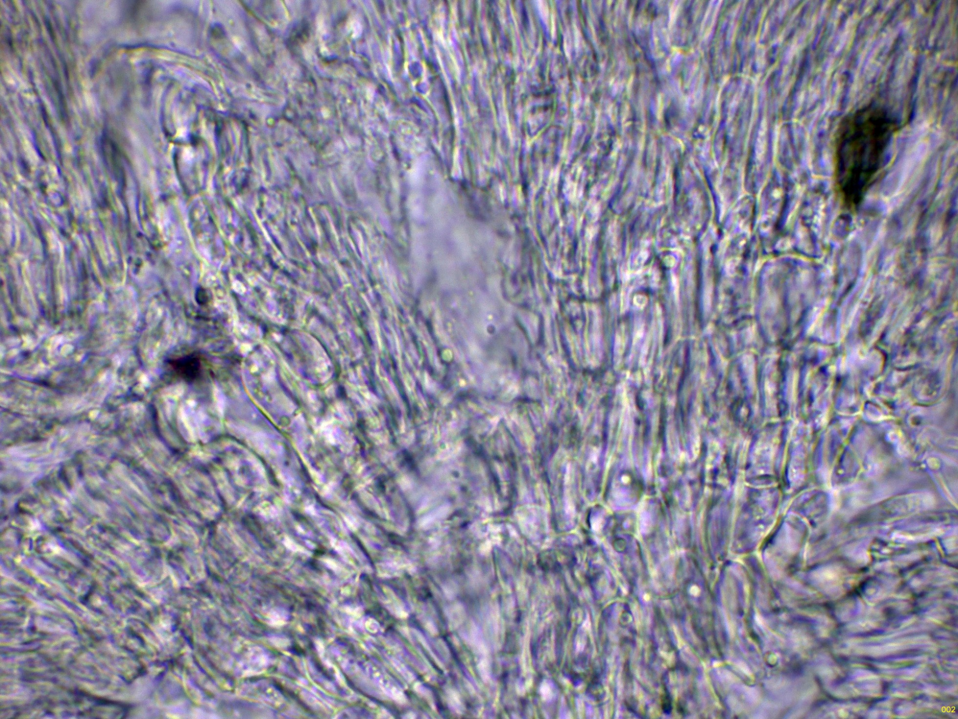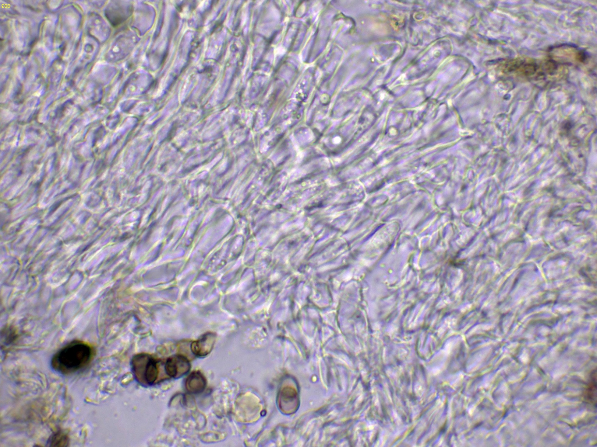 Las hifas del excípulo son más o menos rectangulares, y dispuestas paralelamente.