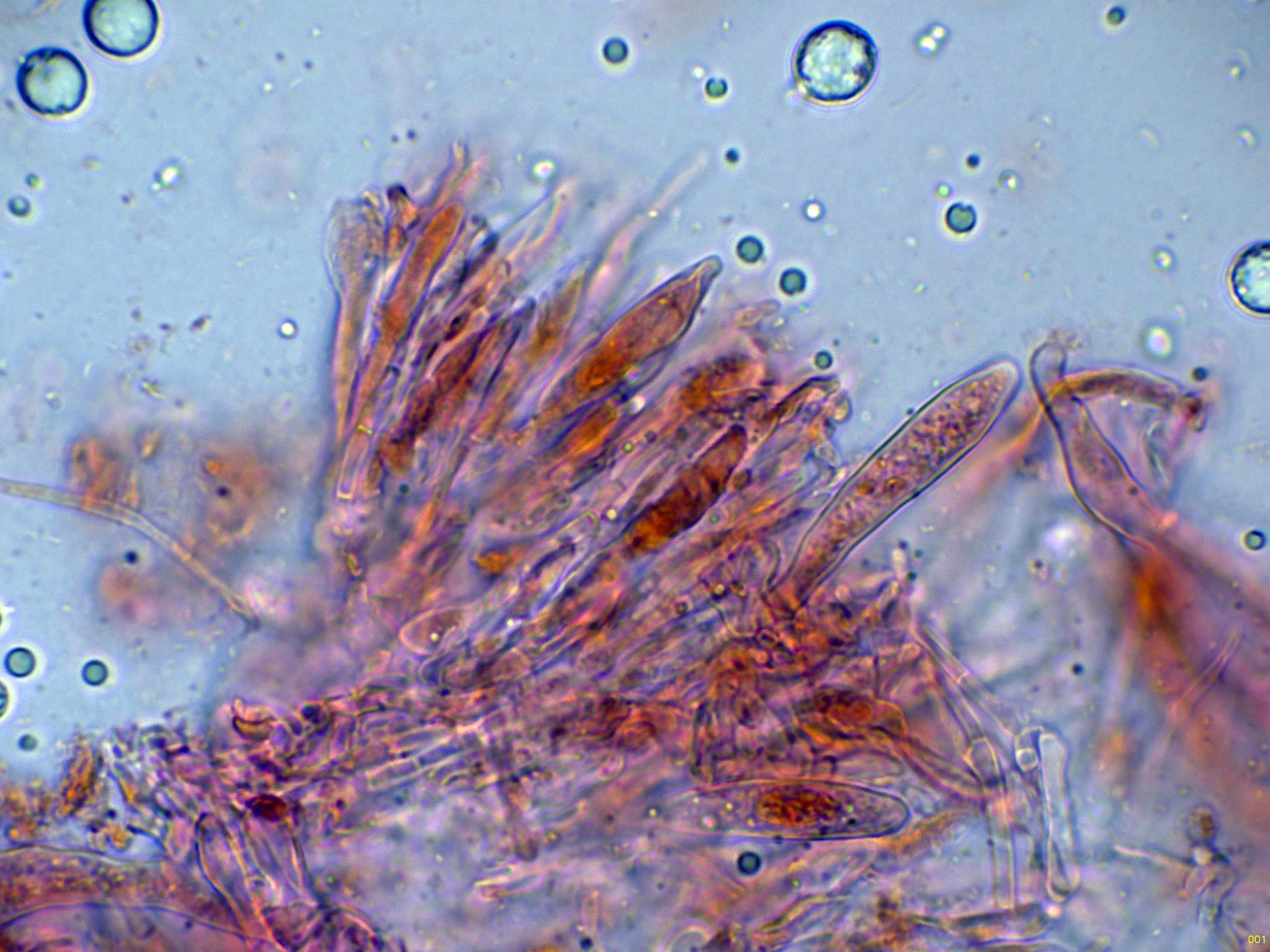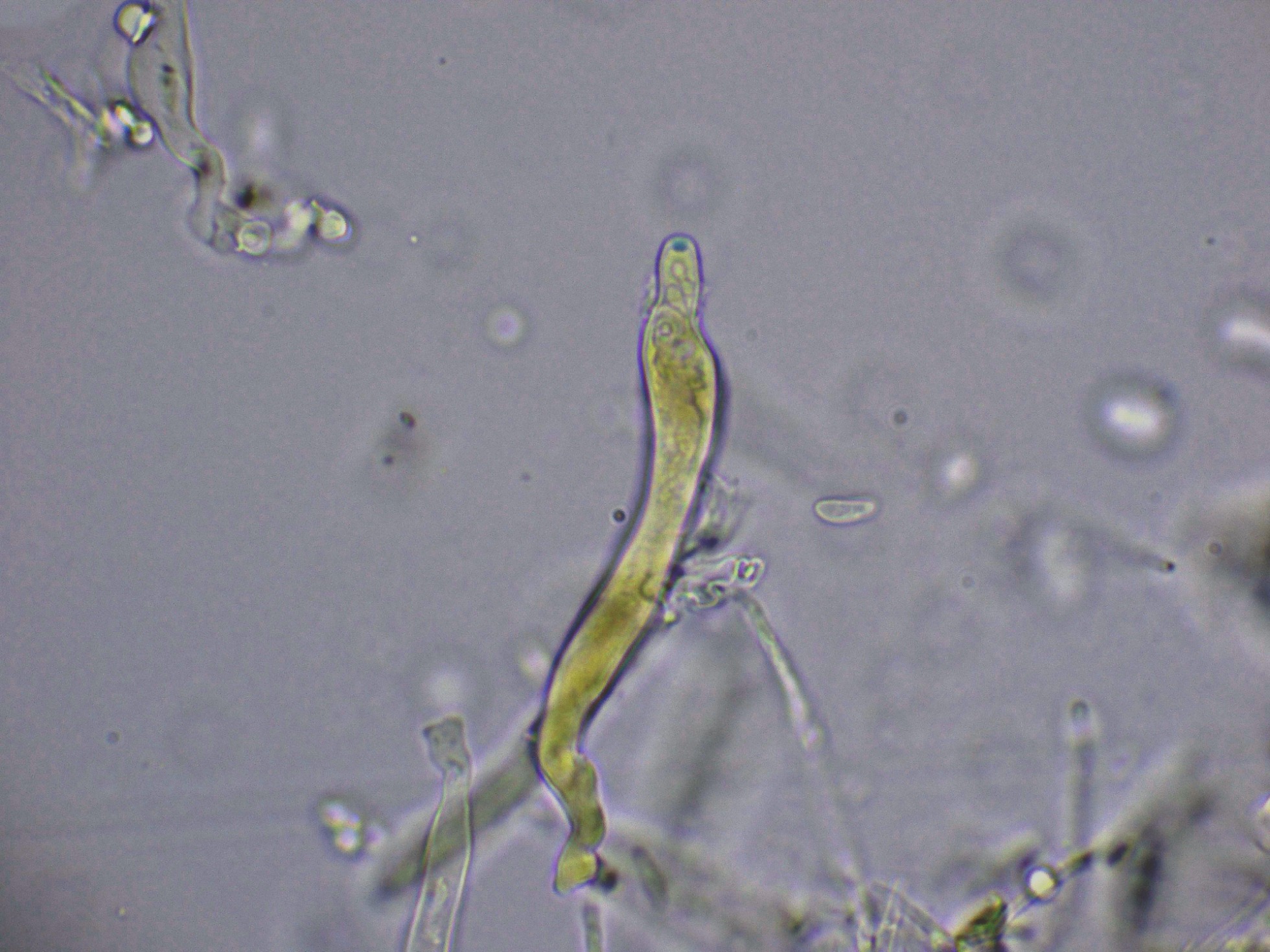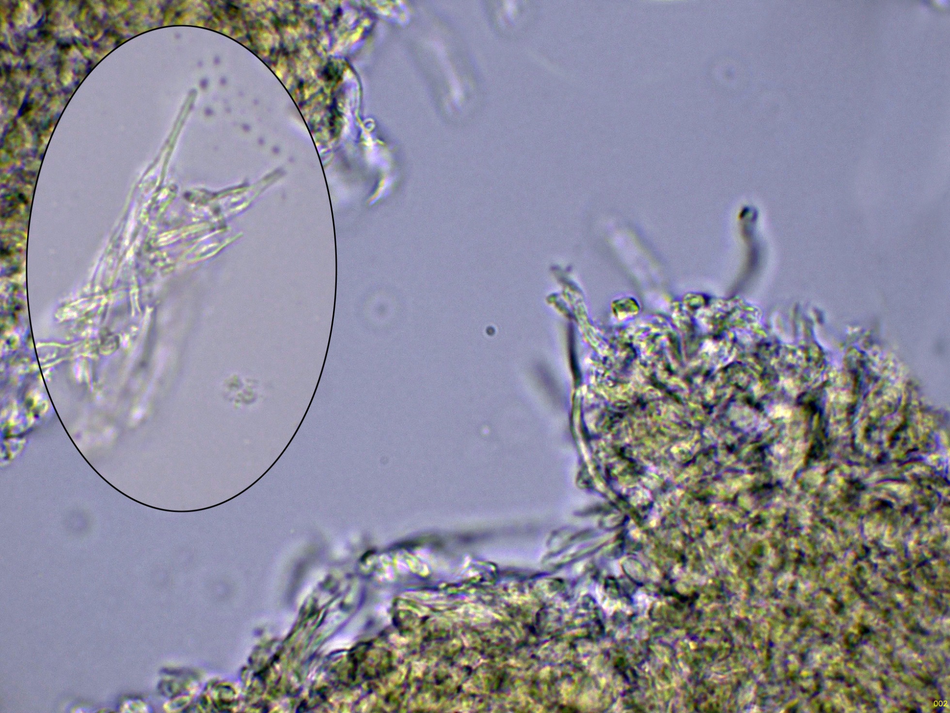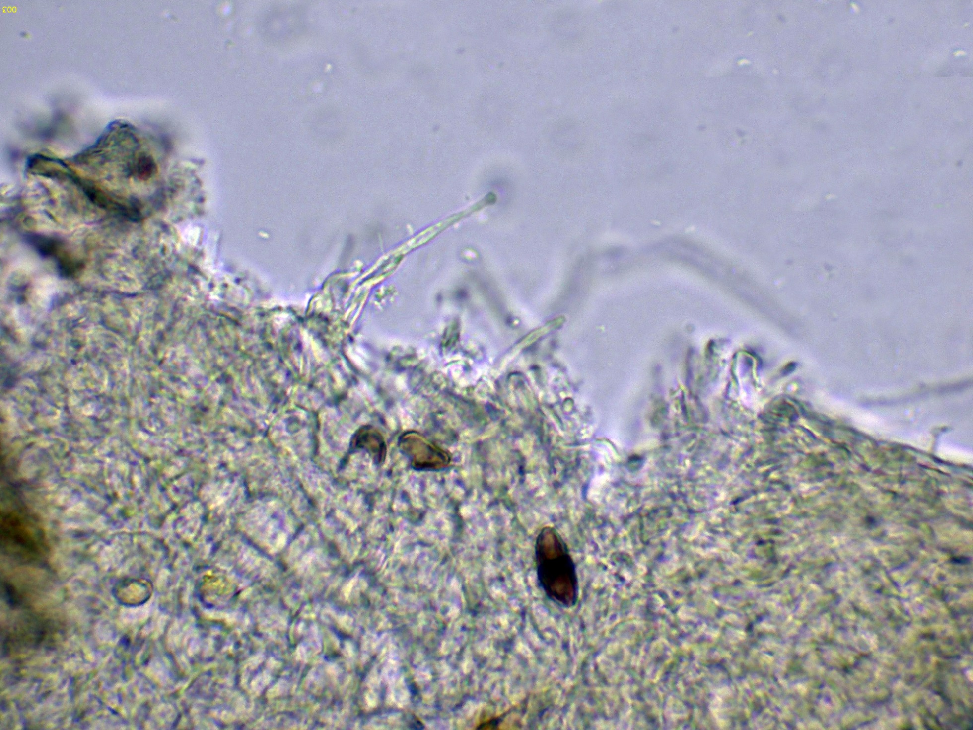 Ascos osctospóricos, aparentemente con uncínulos en sus bases y reacción amiloide de su diminuto aparato apical con el reactivo de Melzer, con unas medidas de 42,9–51,2 × 5–6,5 µm.