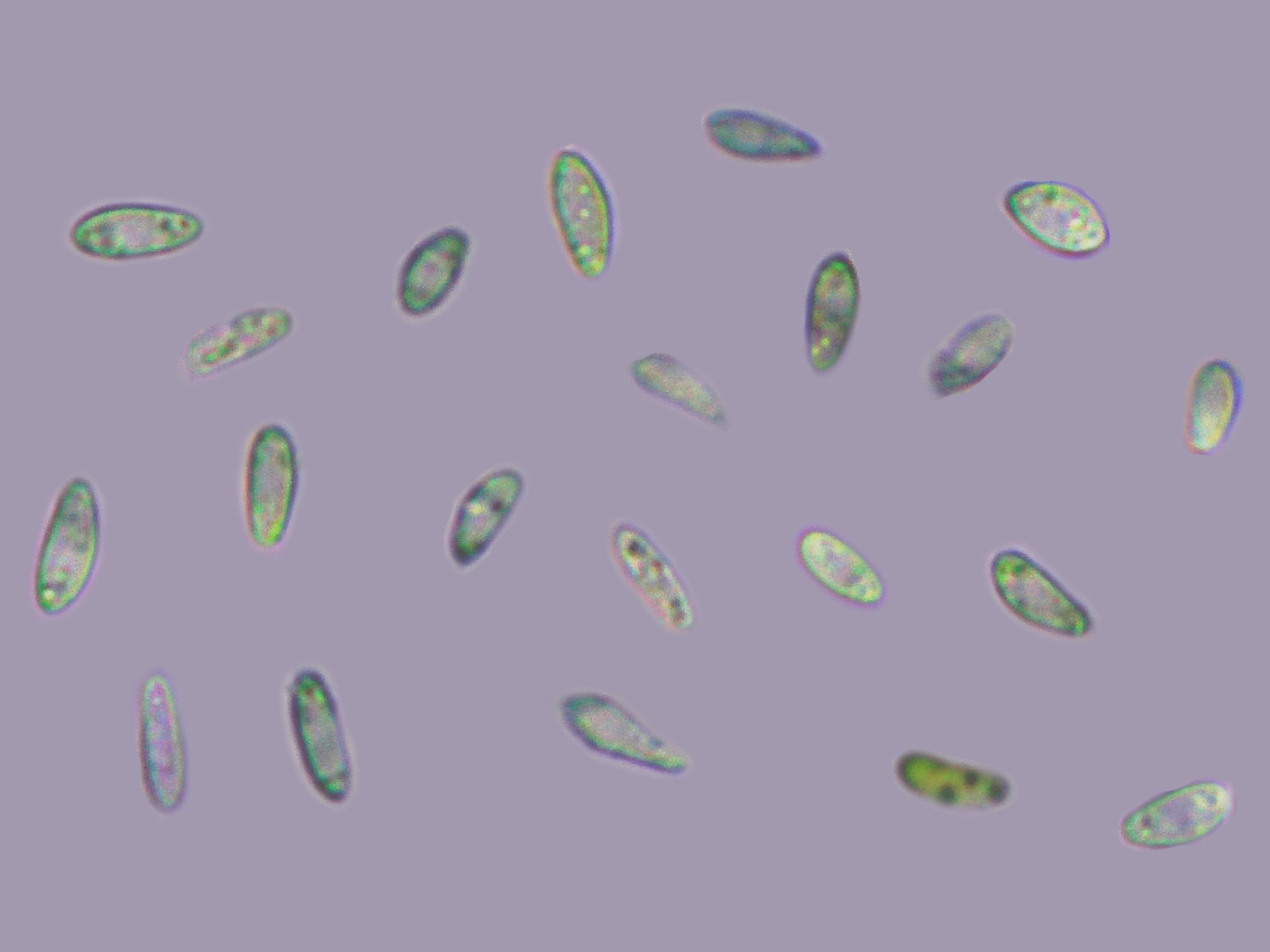 Sus ascosporas son cilíndricas a fusiformes, con un interior ligeramente granular.