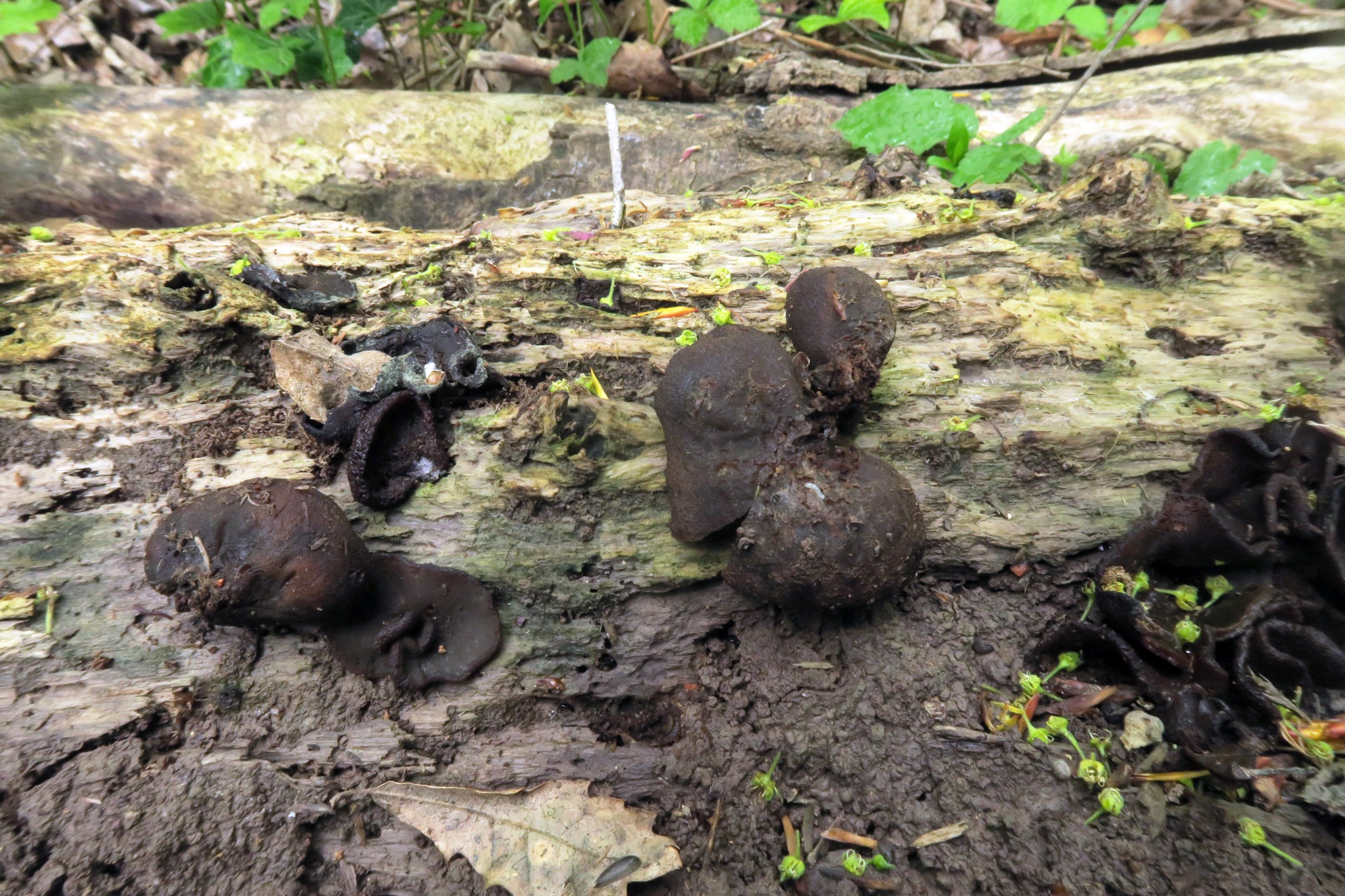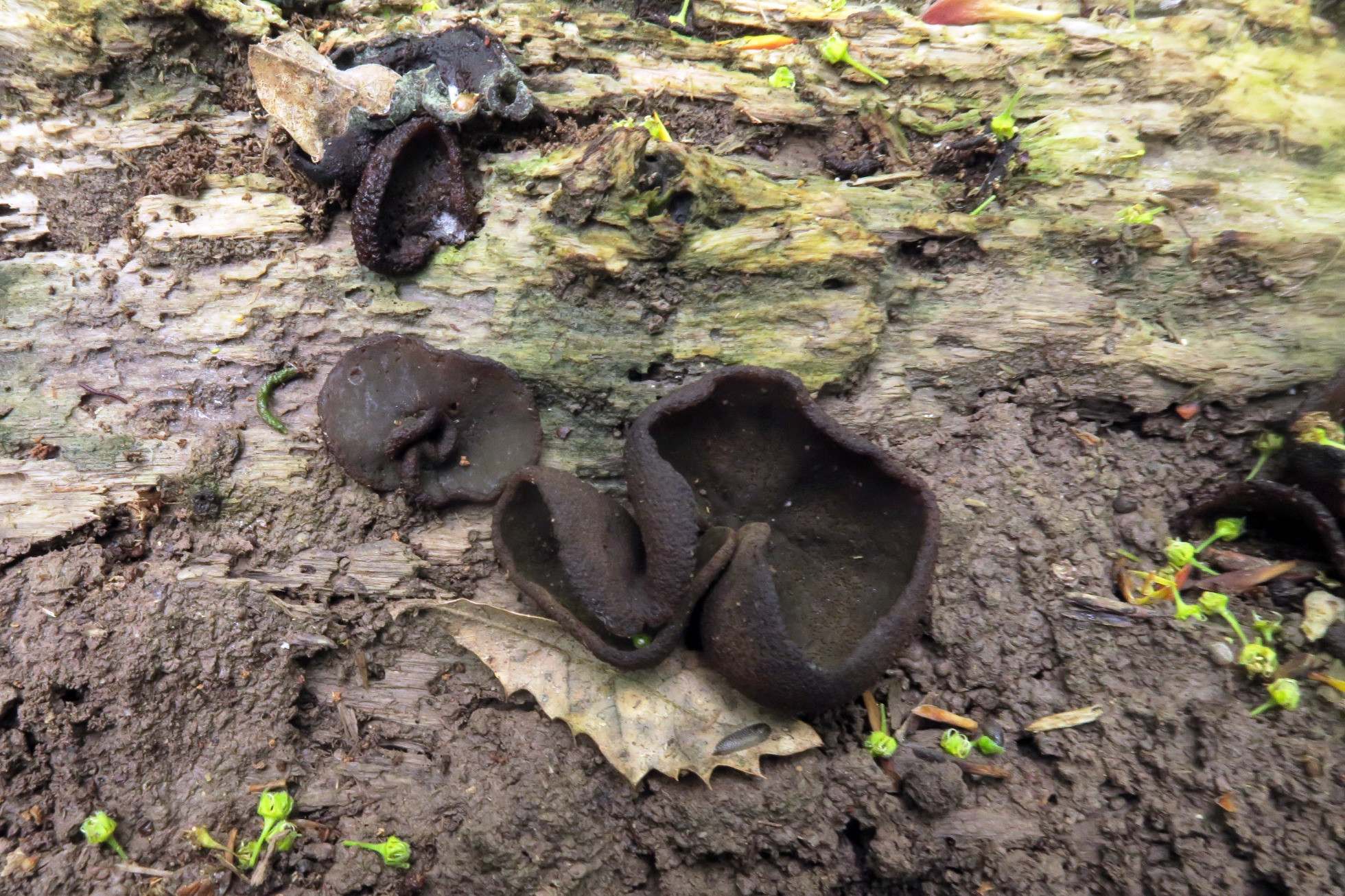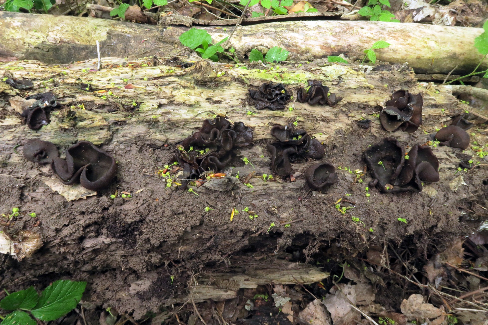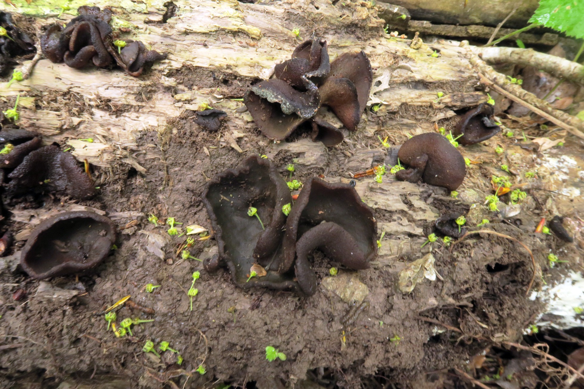 Un Pezizal, este es del 4 de mayo, su comportamiento exclusivamente lignícola, me despistó por completo, la Peziza phyllogena, actualmente Phylloscypha phyllogena, nunca me lo había encontrado así.