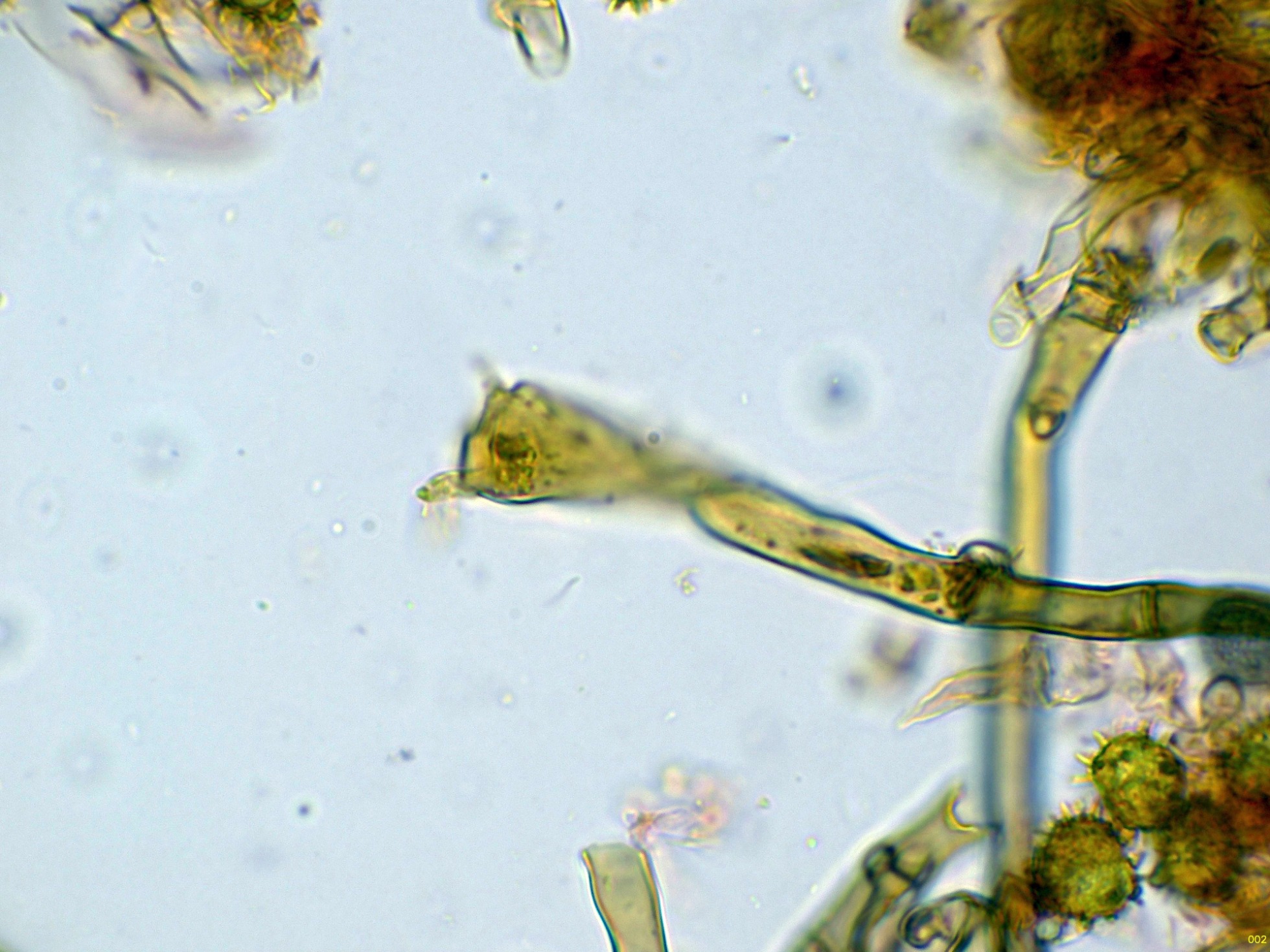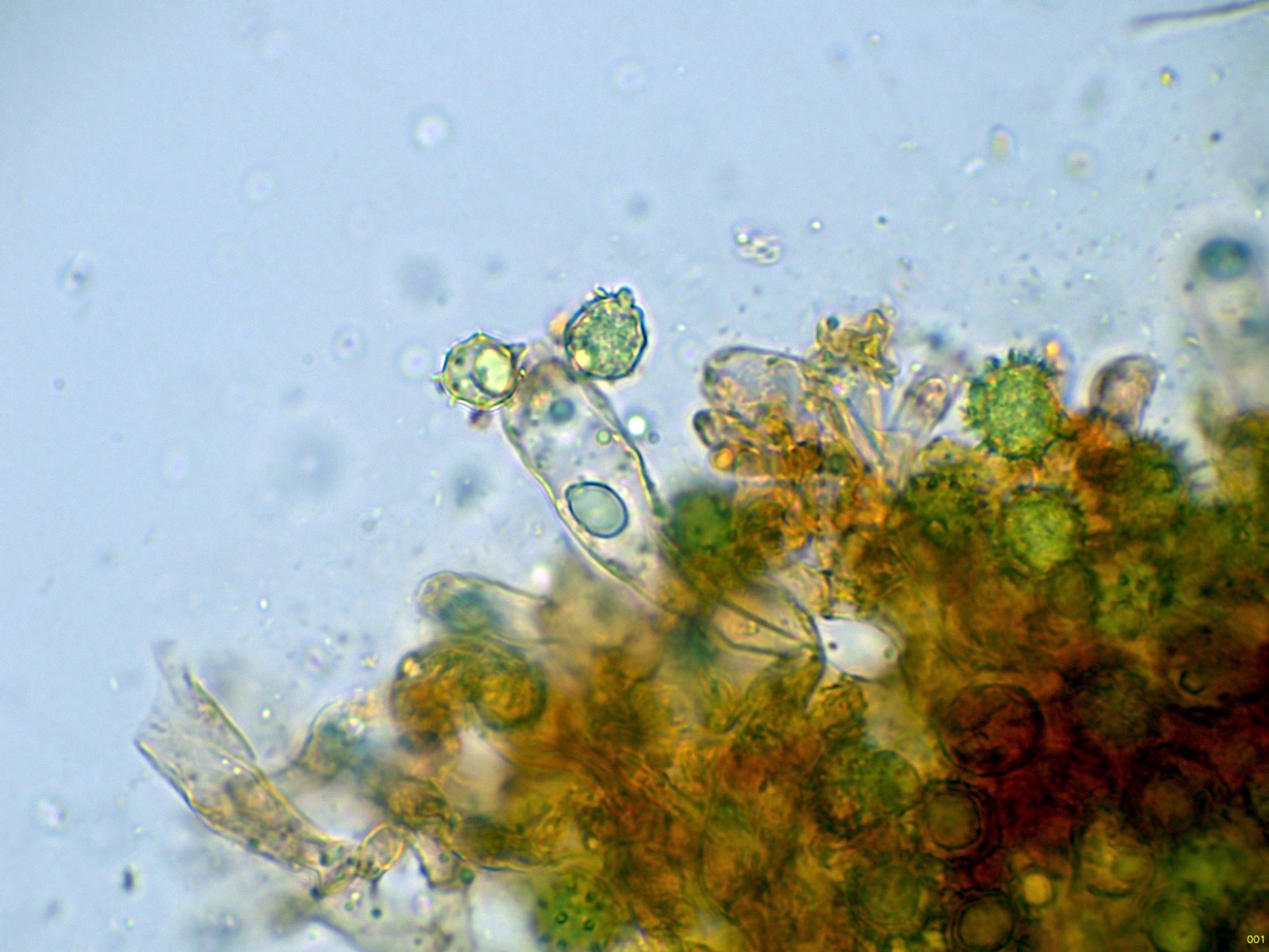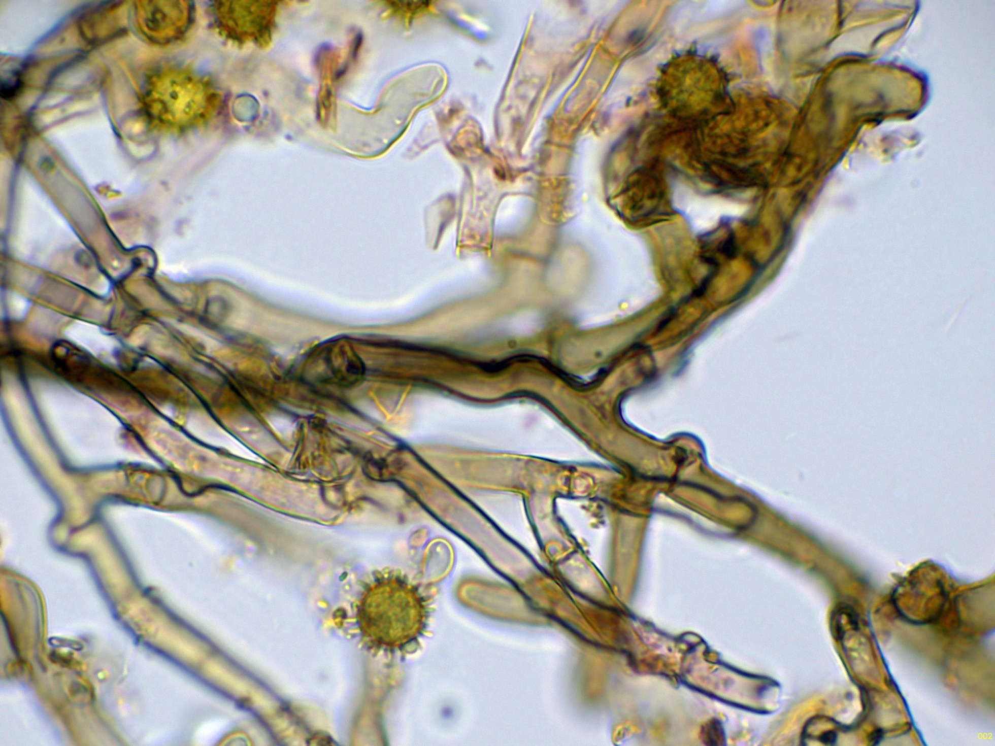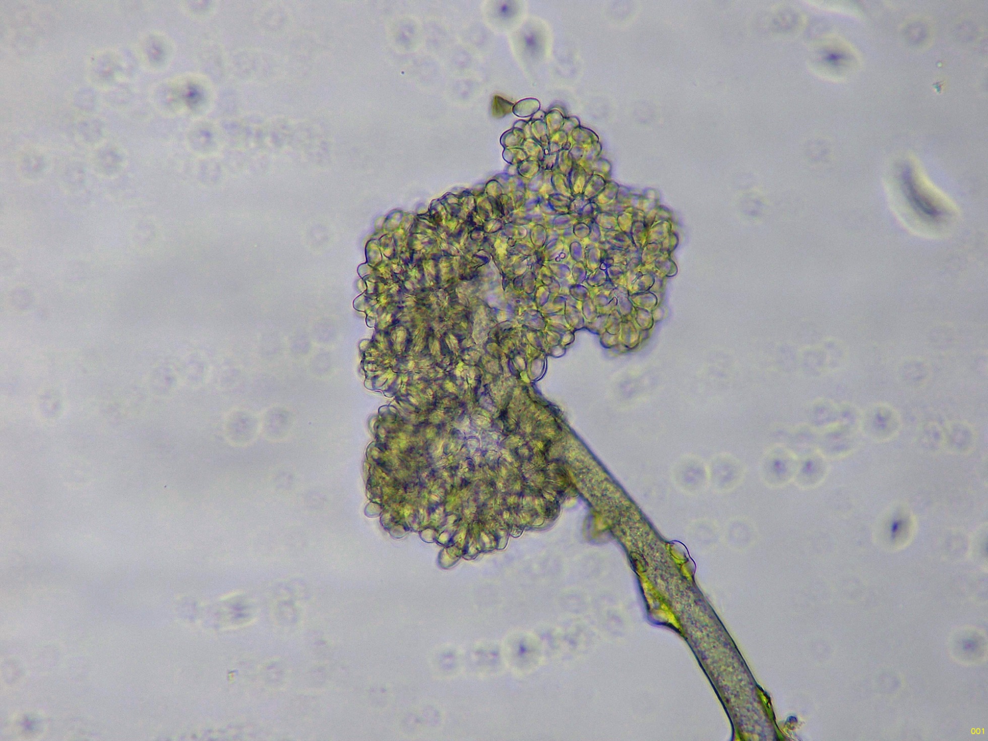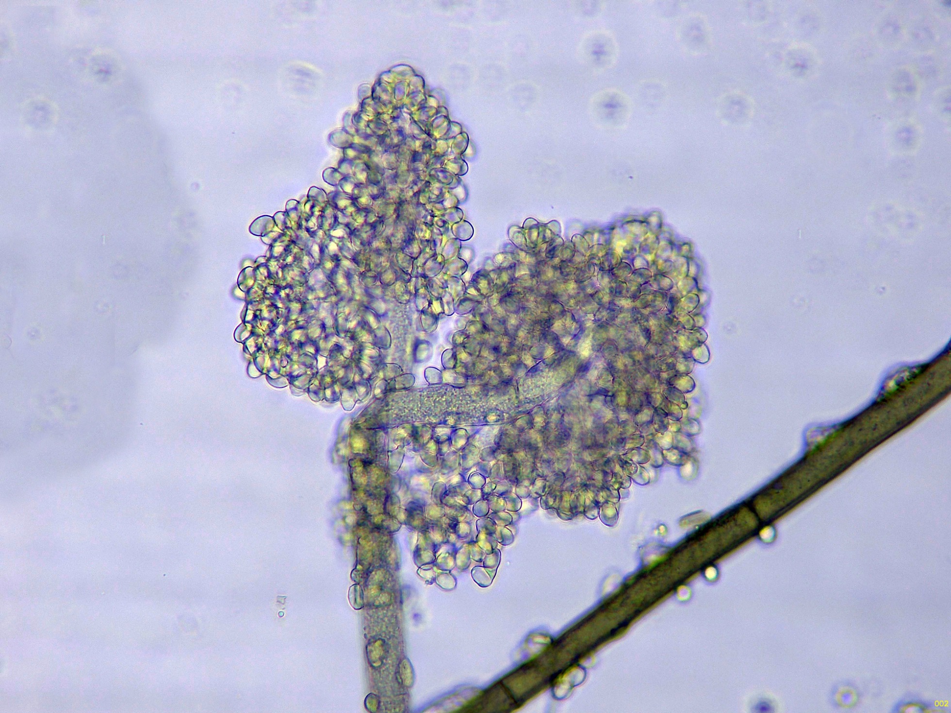 Por debajo de estas otras hifas ya más globosas y de gran tamaño.
