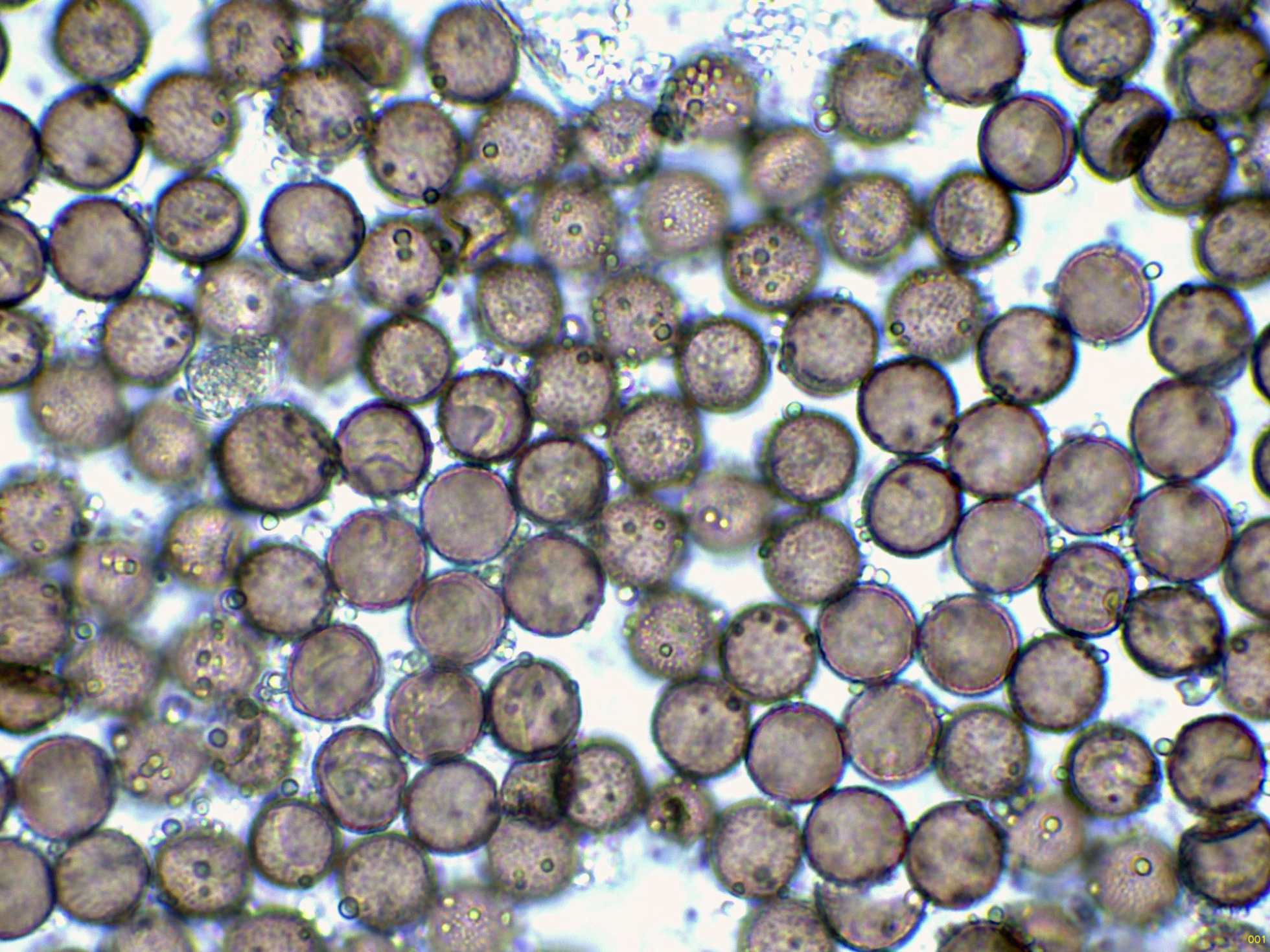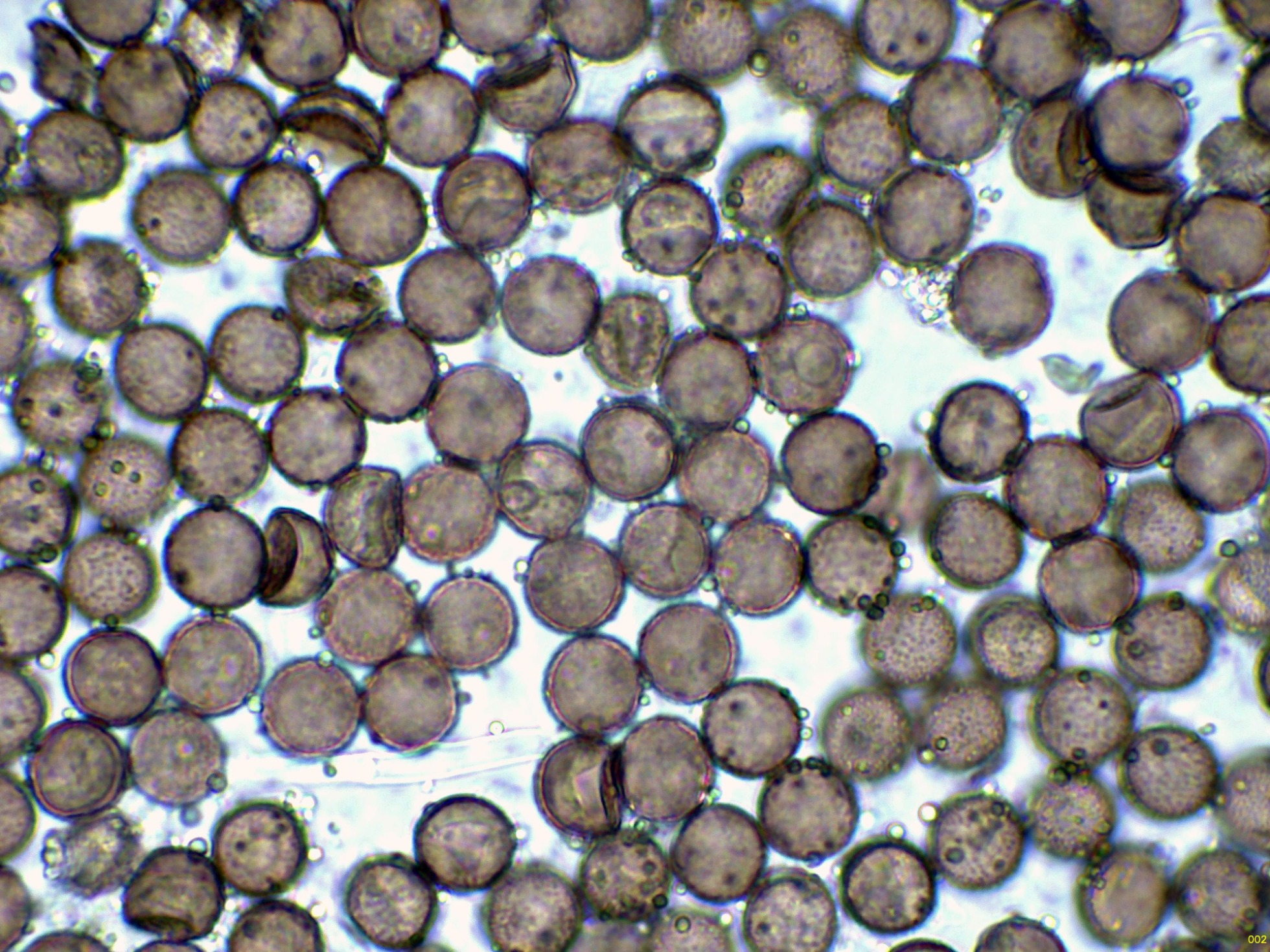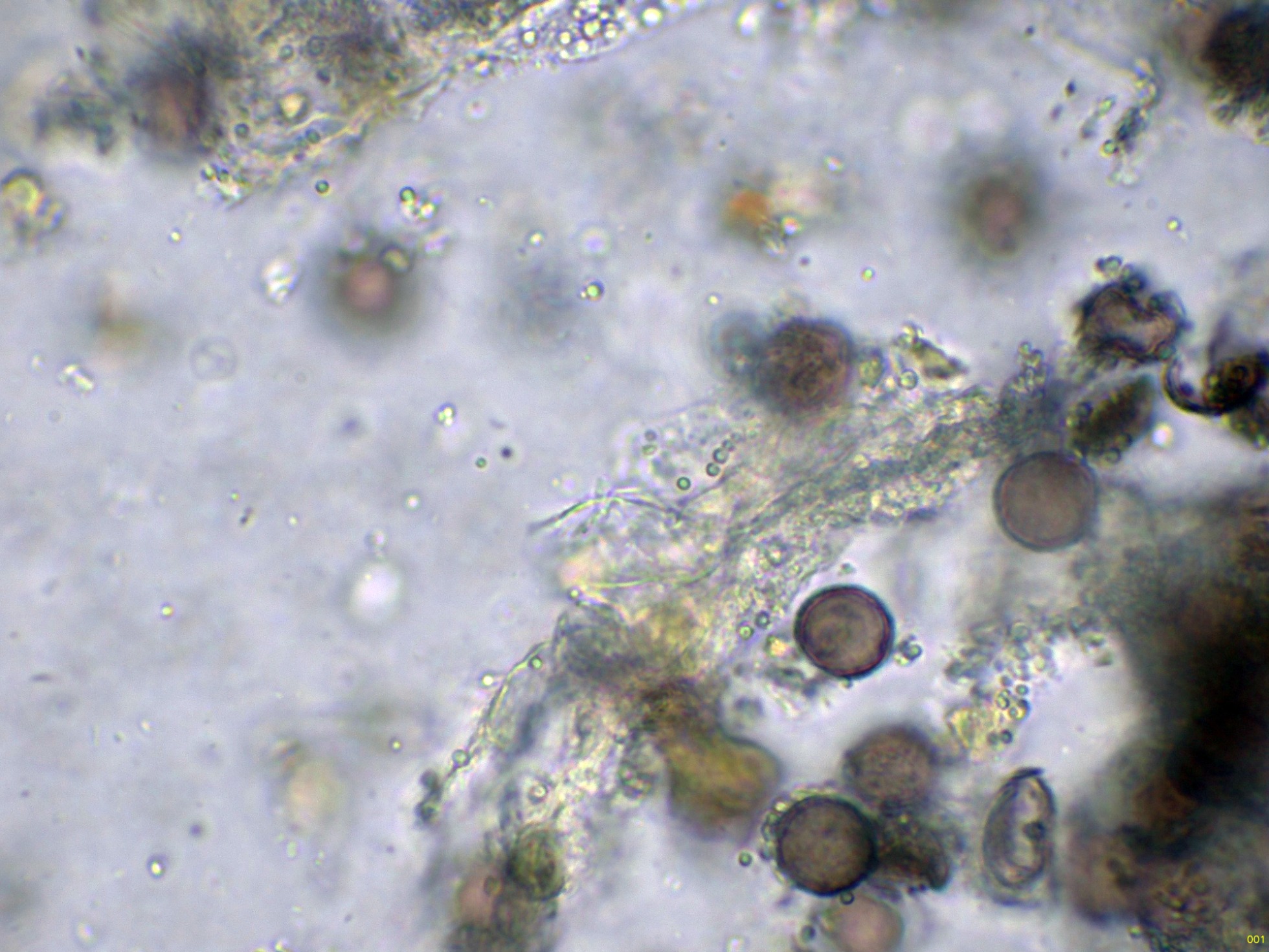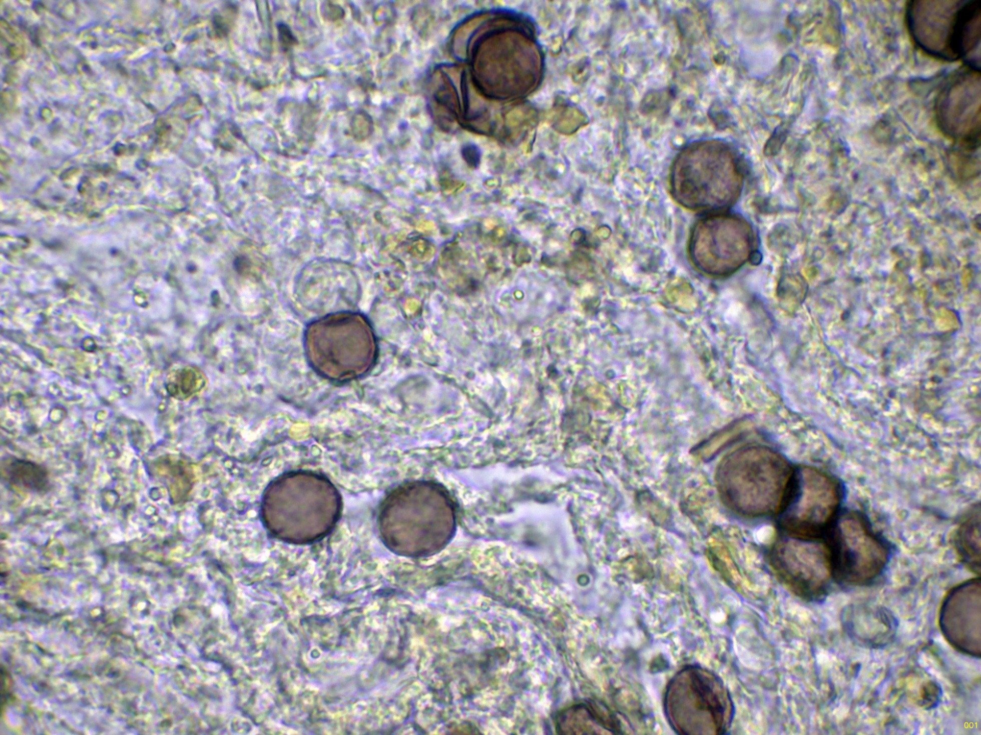 Las esporas en solución de azul de Cresilo: