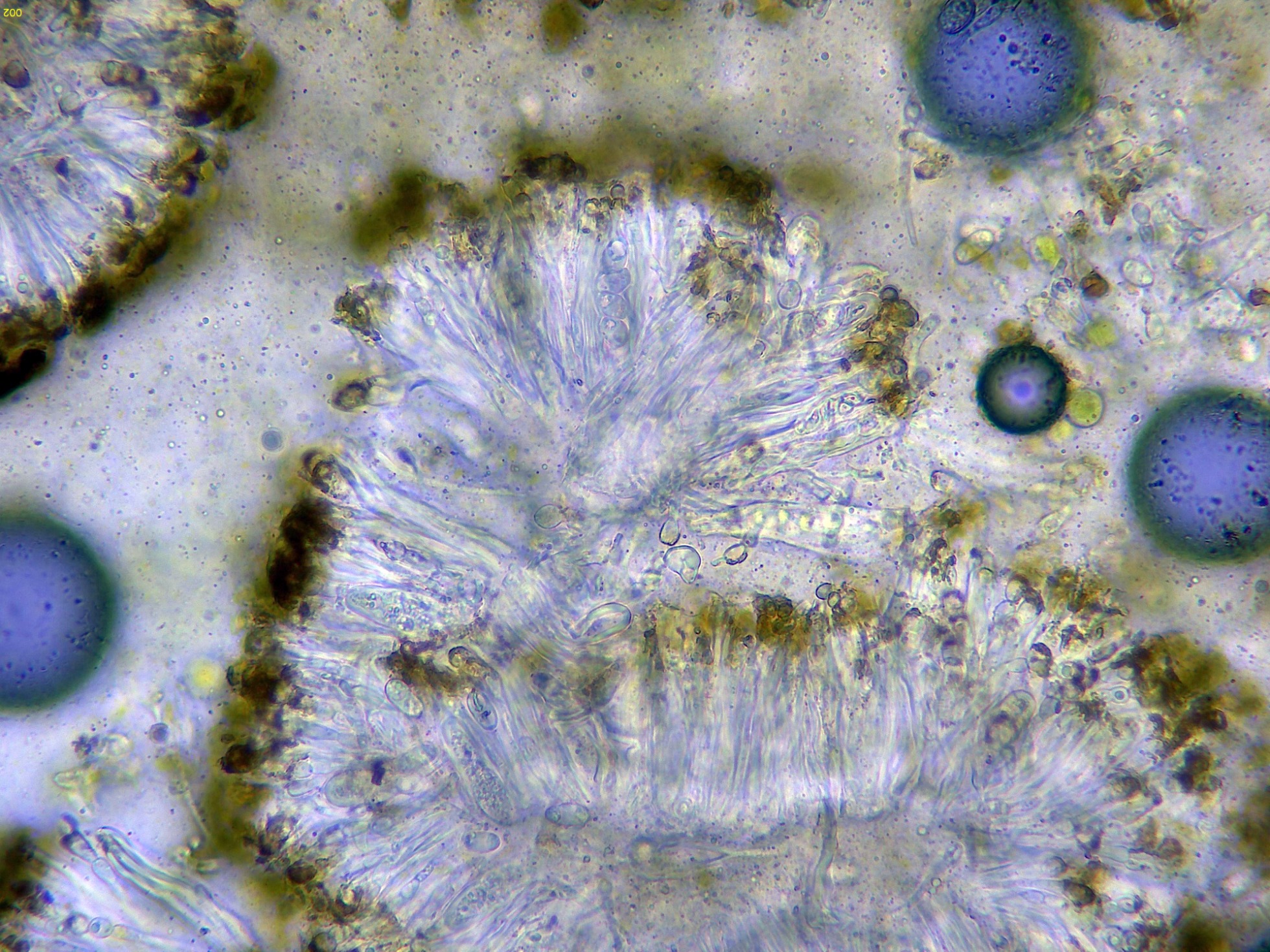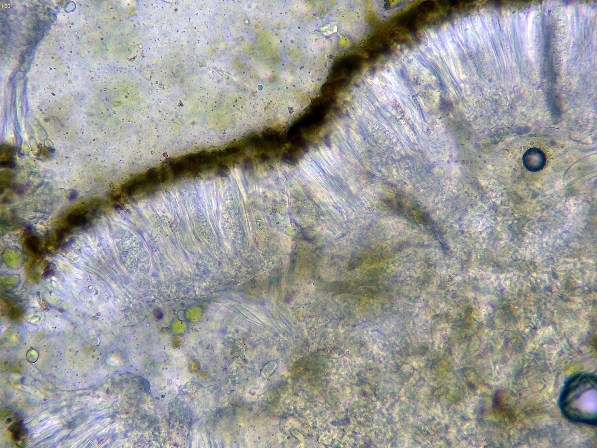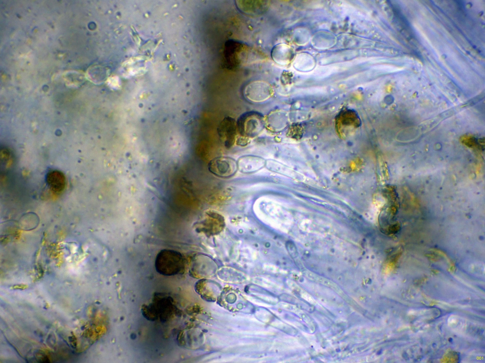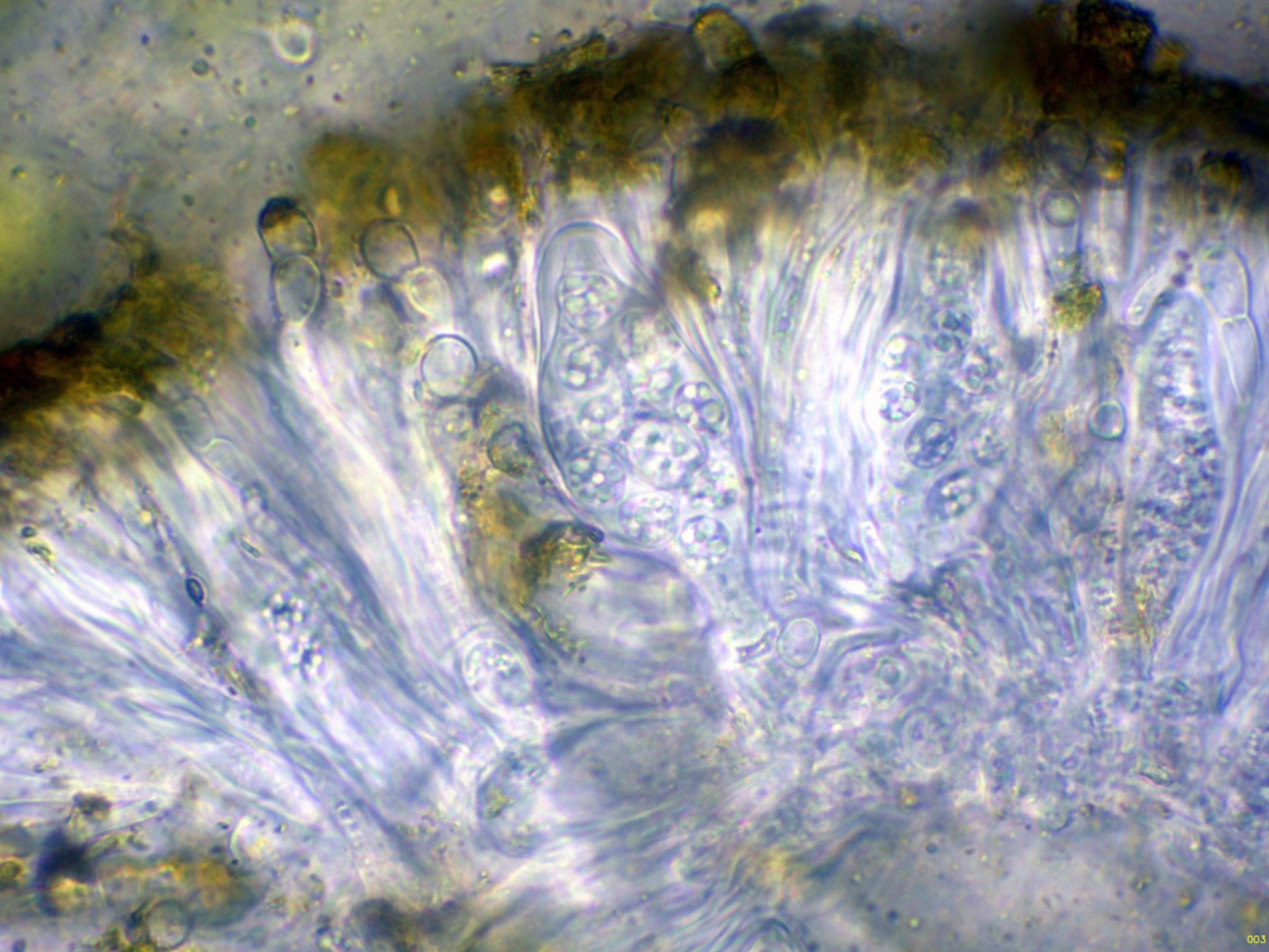 El himenio a 400 aumentos en agua: