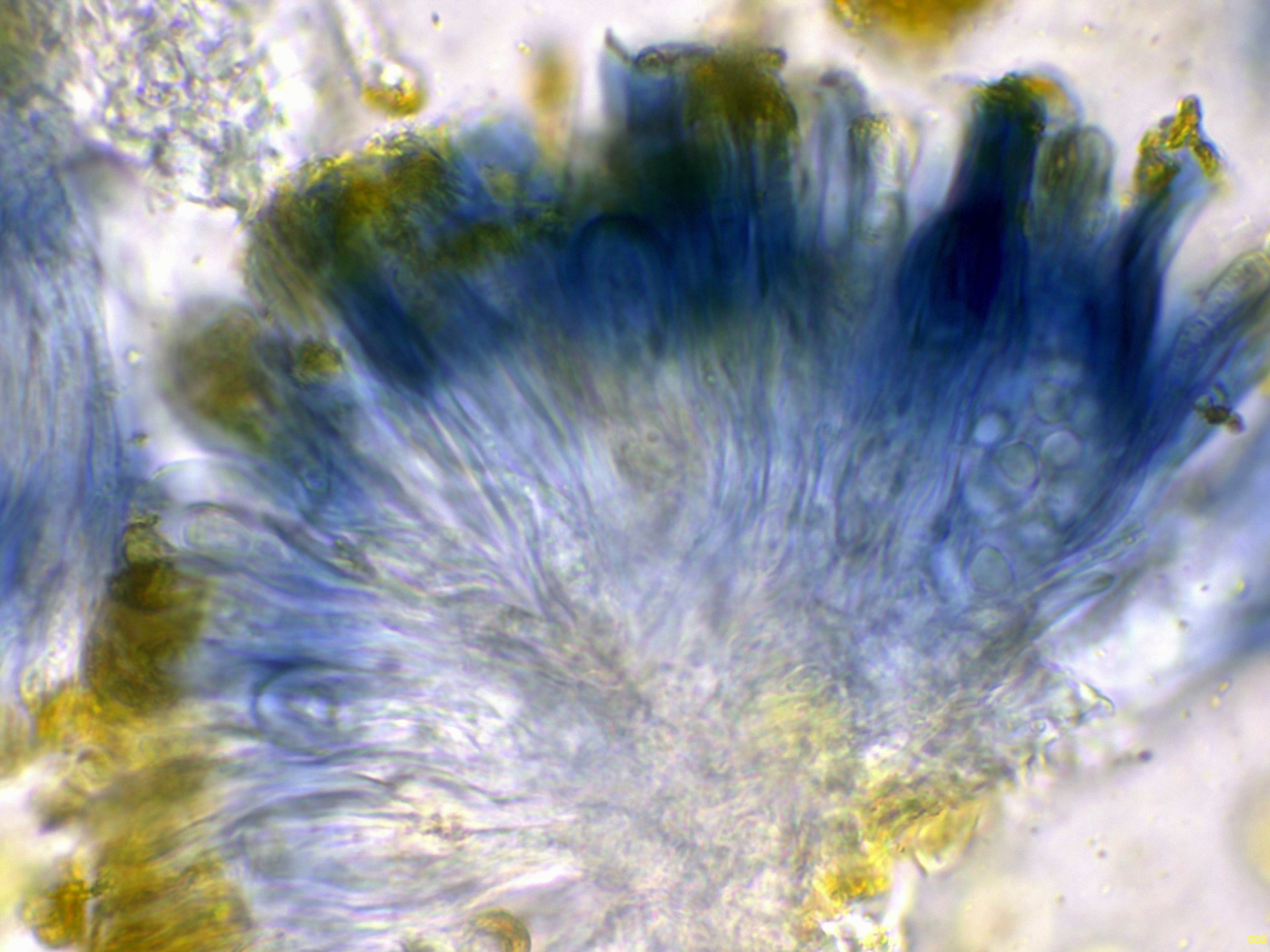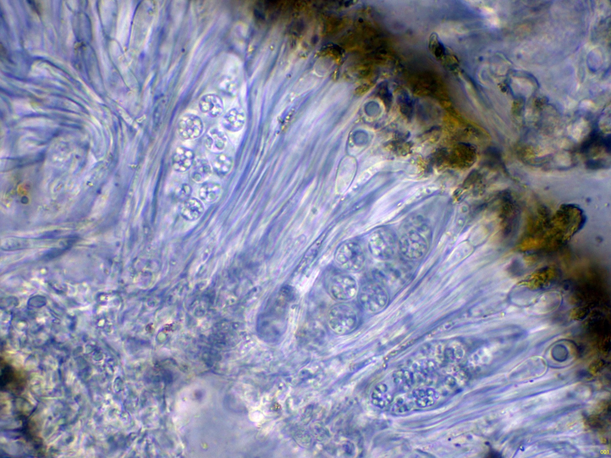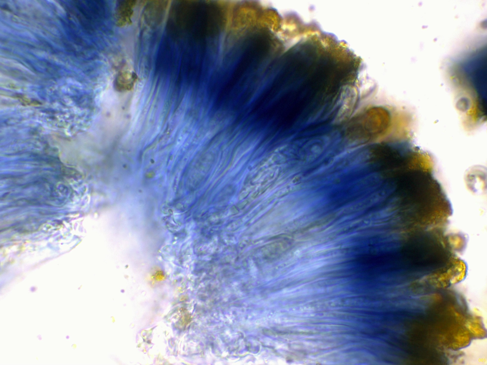 El himenio en Reactivo de Melzer, con un comportamiento amiloide: