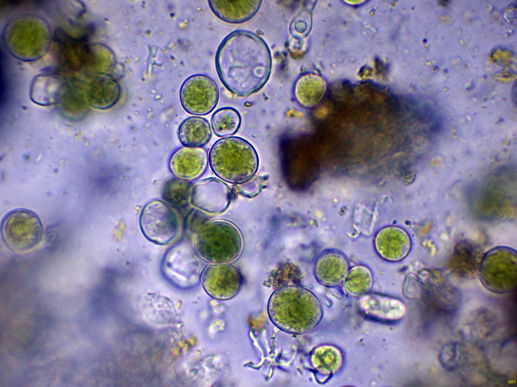Abundantes algas presentes en todas las muestras preparadas: