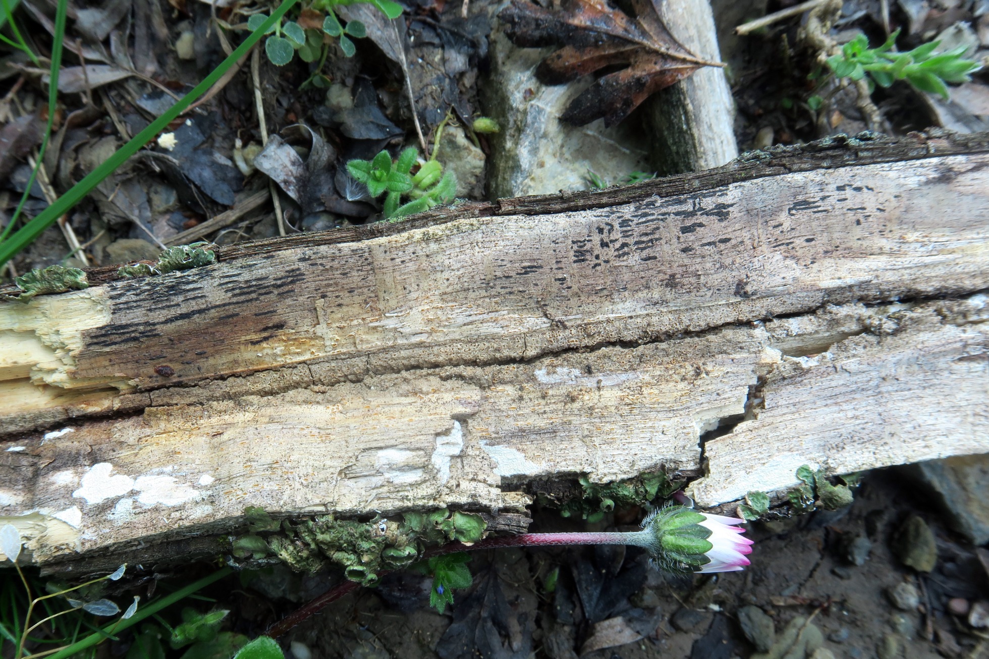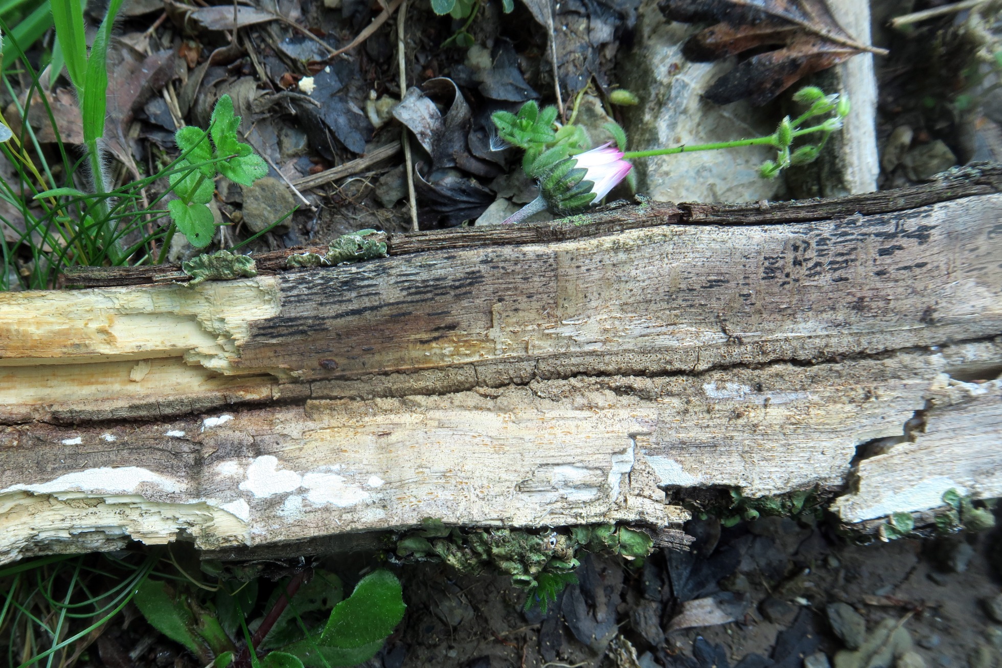 Un Mytilidinial fotografiado el 25 de mayo pasado brotando directamente de la sección de un tronco tumbado del suelo: