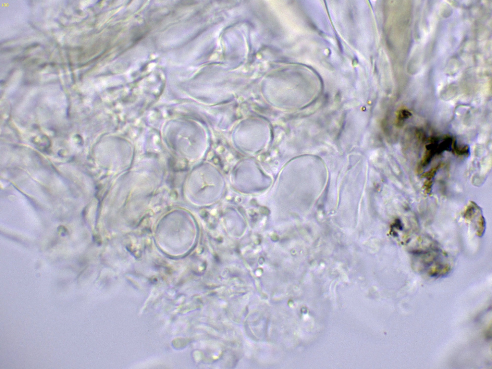 Himenio en Reactivo de Melzer a 400 aumentos: