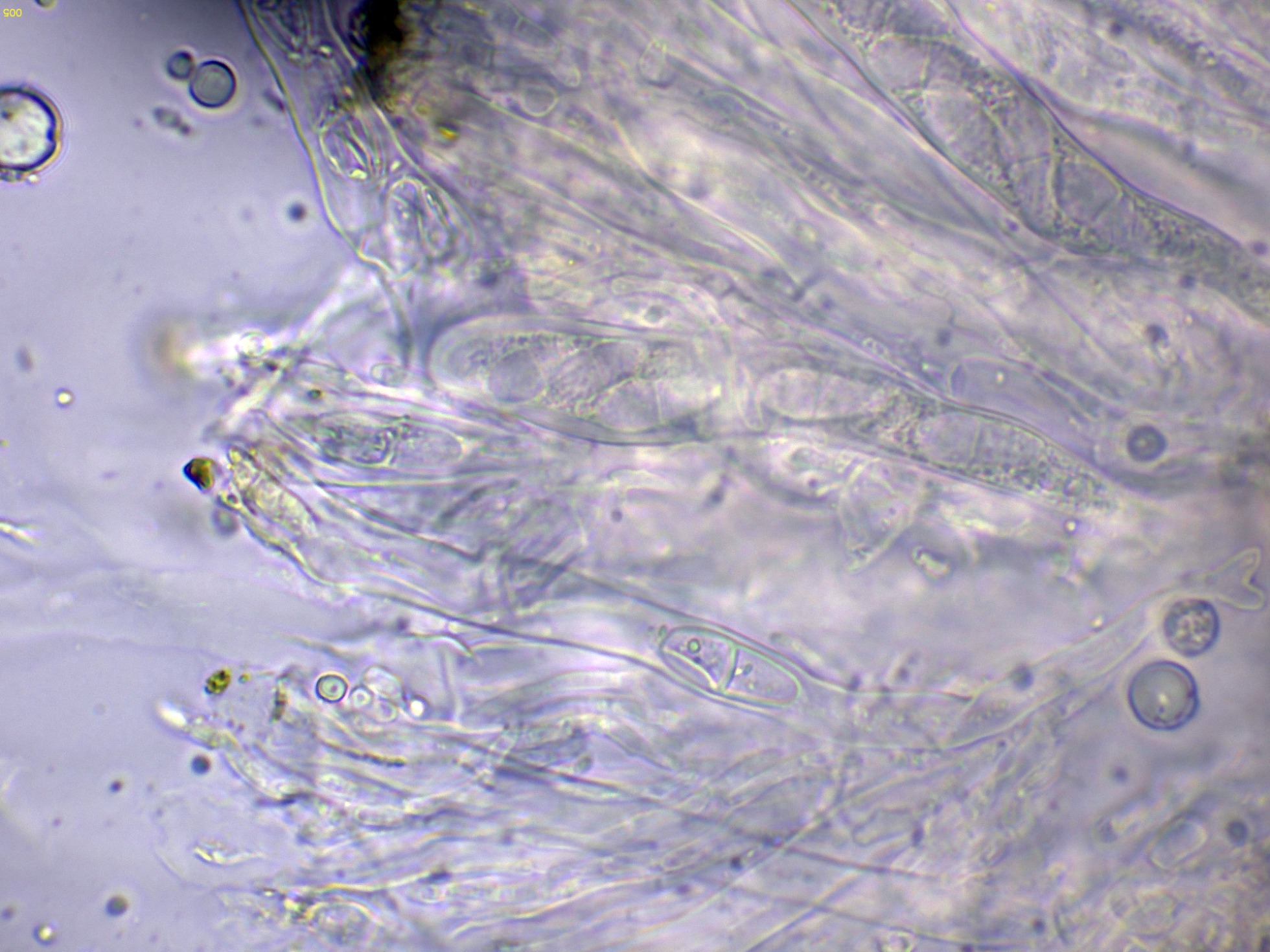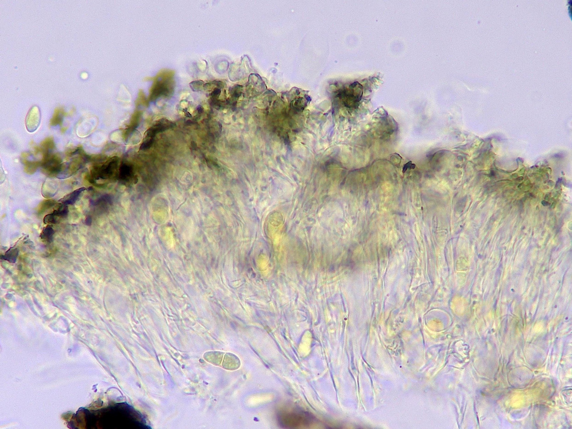 Psiloglomium lineare = Glonium lineare (Fr.) De Not. Microscopía.