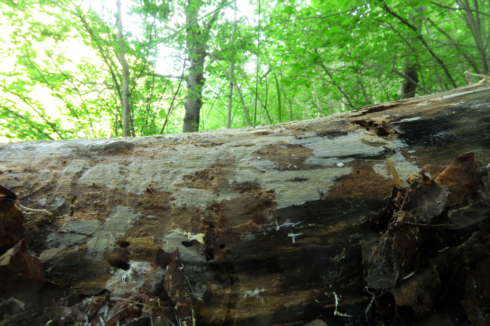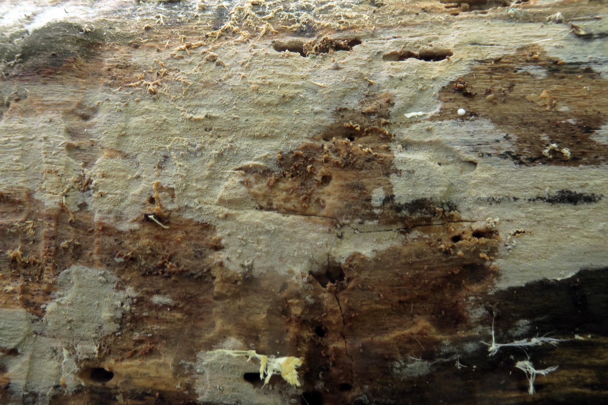 Un Corticial de muy pequeño grosor, fotografiado el 1 de junio pasado, brotando sobre la superficie de un tronco descortezado del suelo: