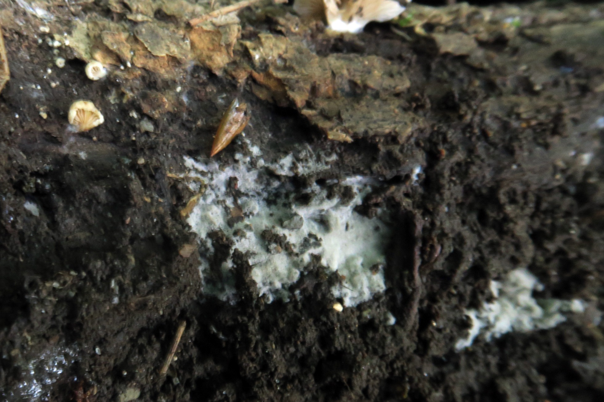 Un ascomiceto del 1 de junio pasado, brotando sobre la superficie de un tronco en avanzado estado de descomposición: