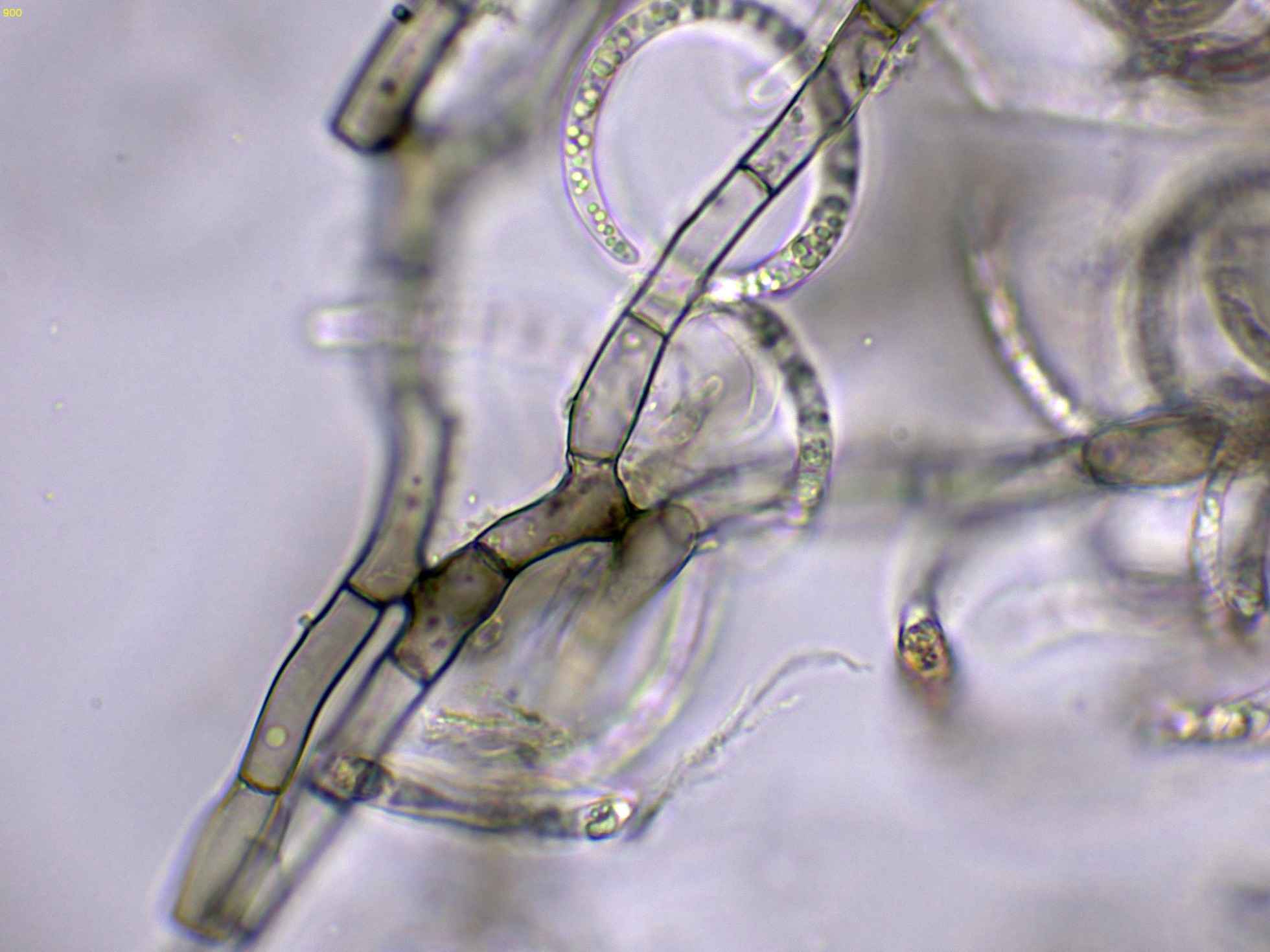 - Probablemente: Helicomyces torquatus L.C. Lane & Shearer. Microscopía.