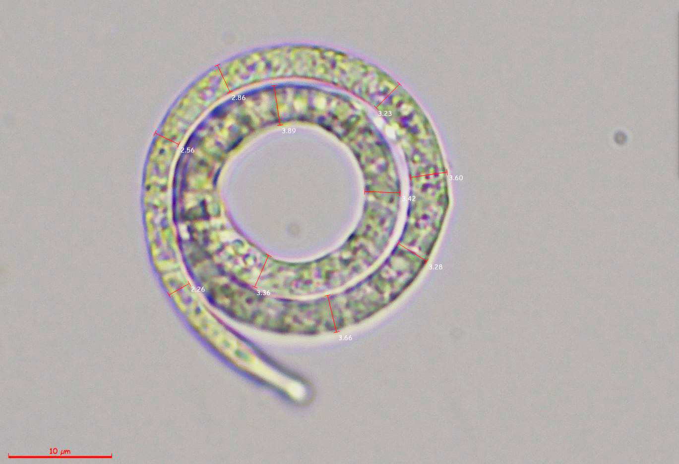 Estos conidios con unas medidas en agua (contando el diámetro, no la longitud) de: