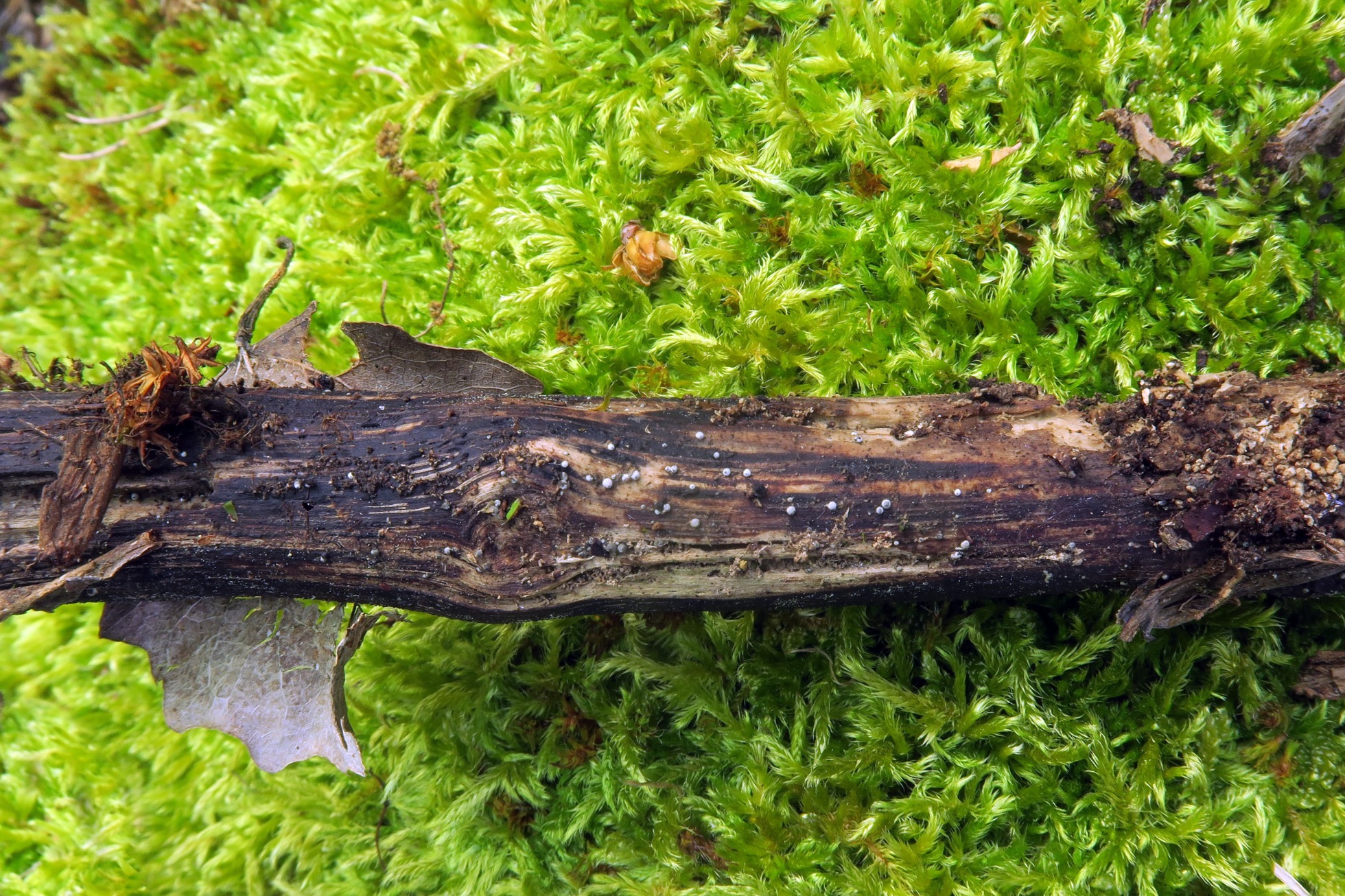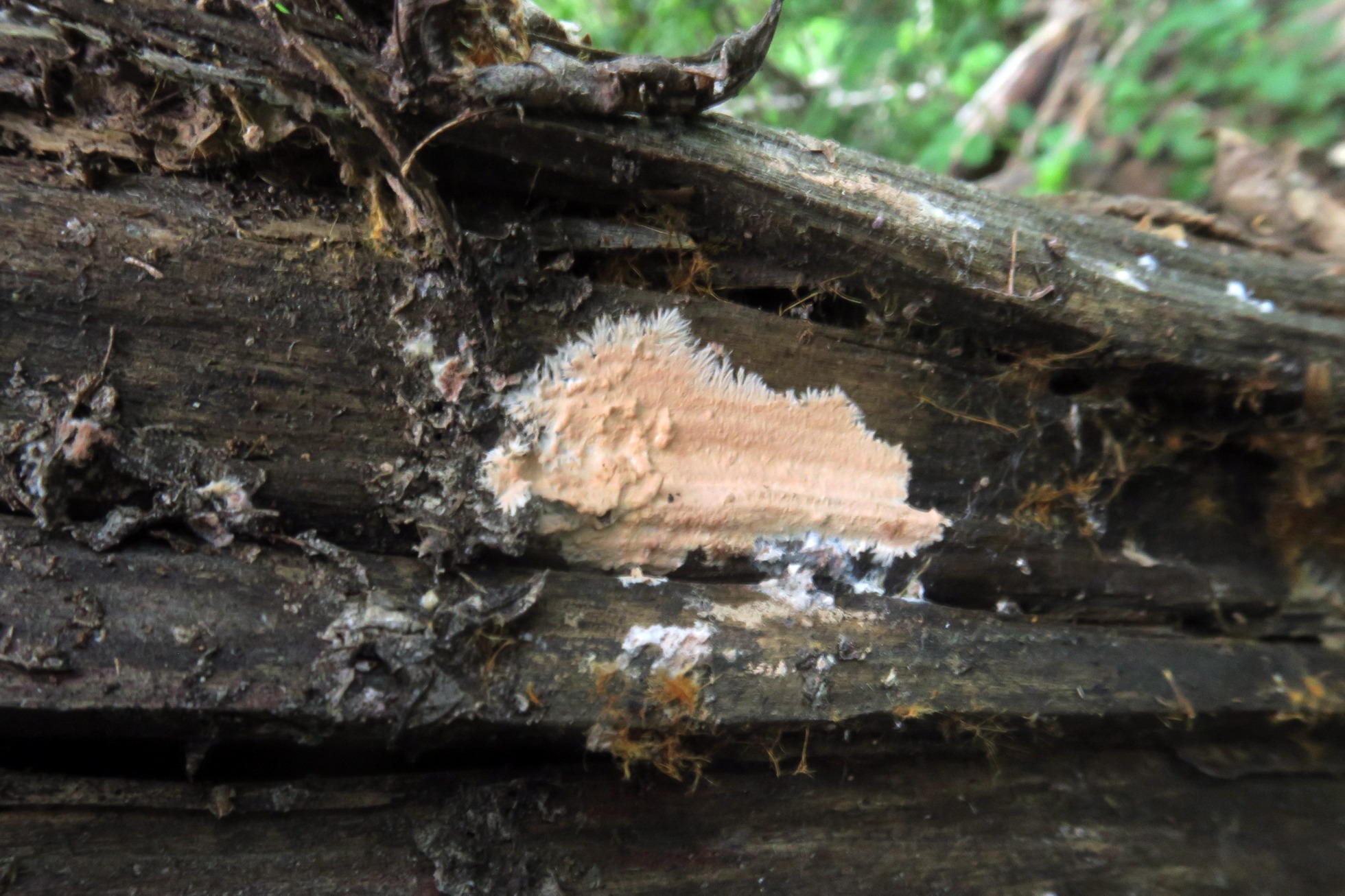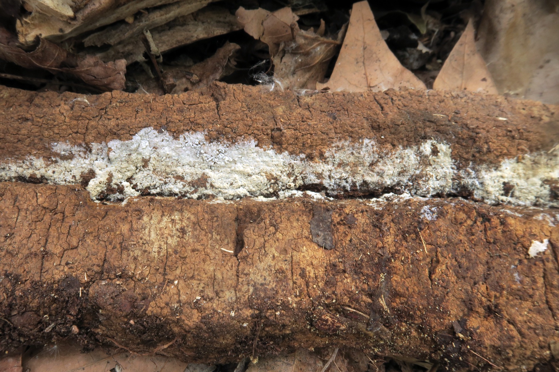 Un Corticial, que no me había encontrado hasta ahora y en un més me lo encuentro en dos ocasiones, en esta ocasión bajo Populus, el Corticium roseum: