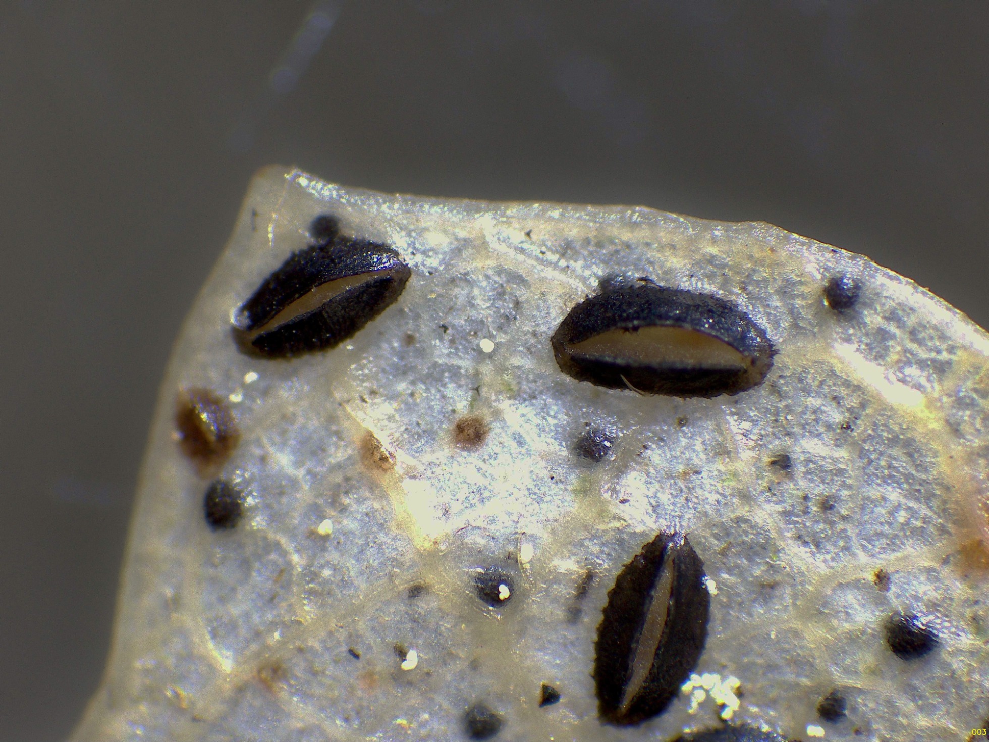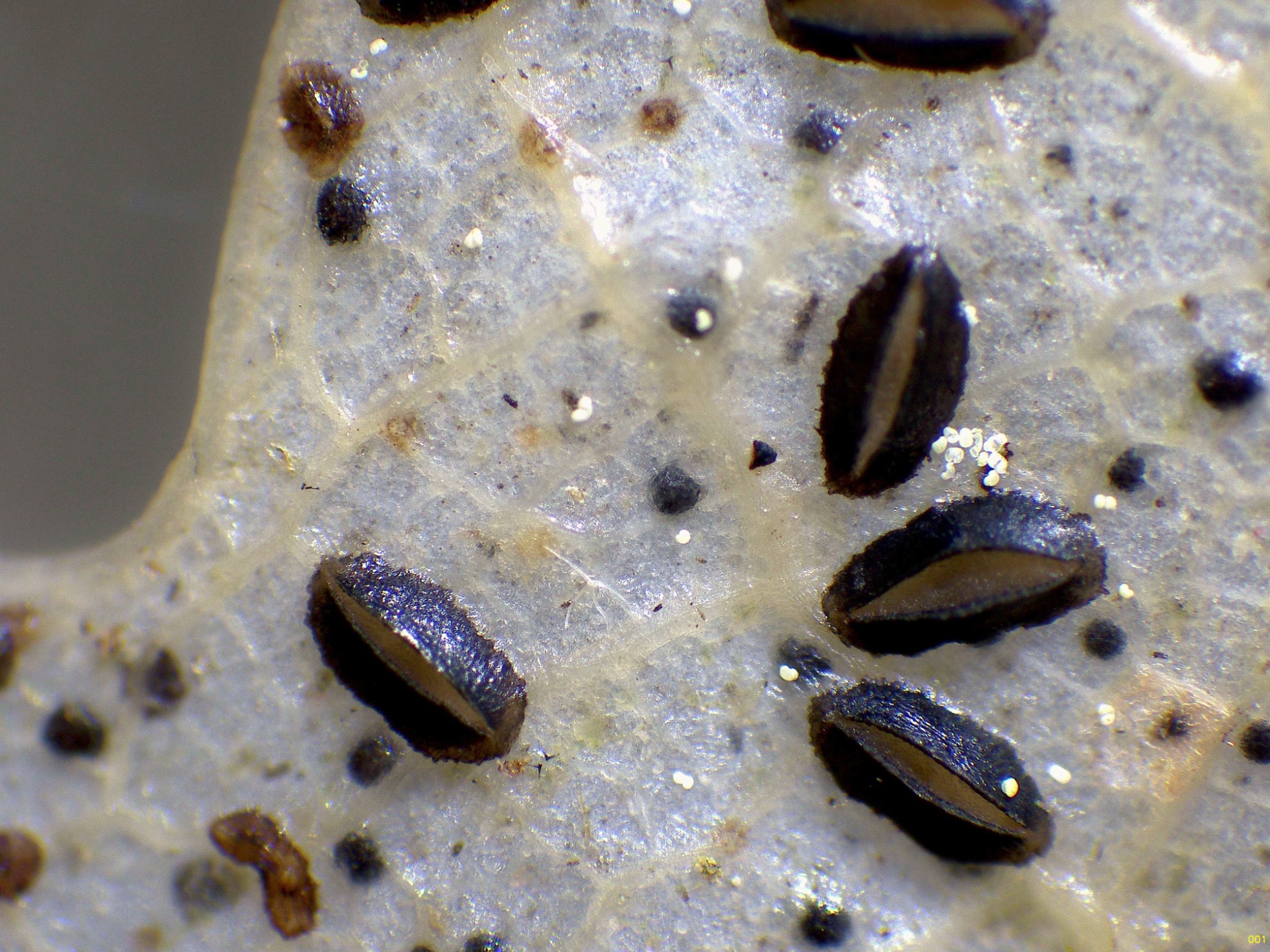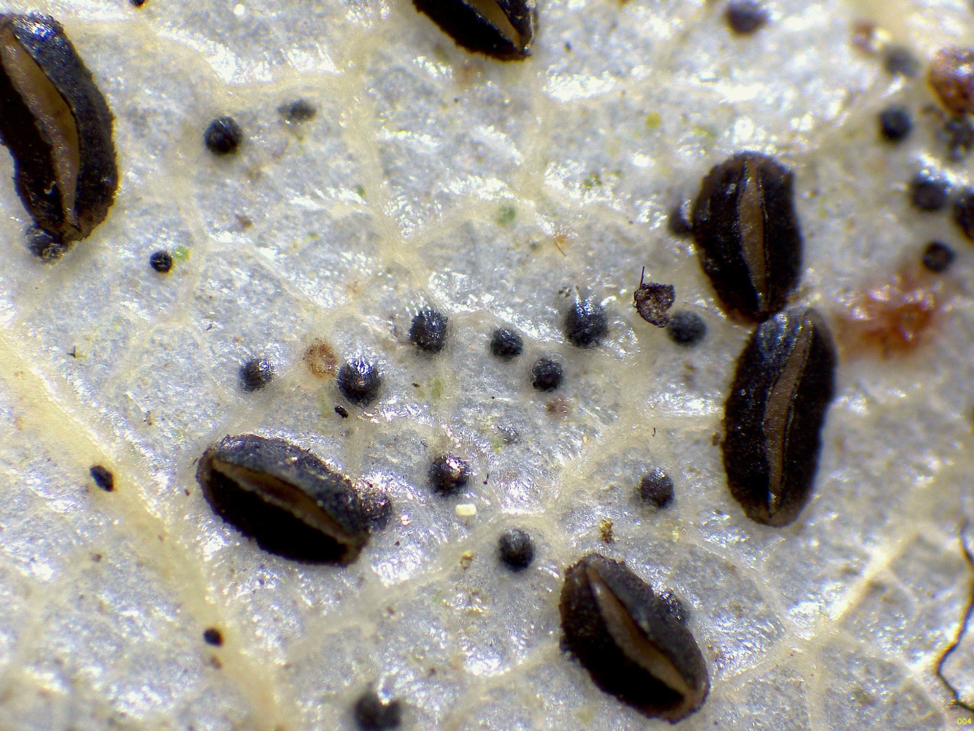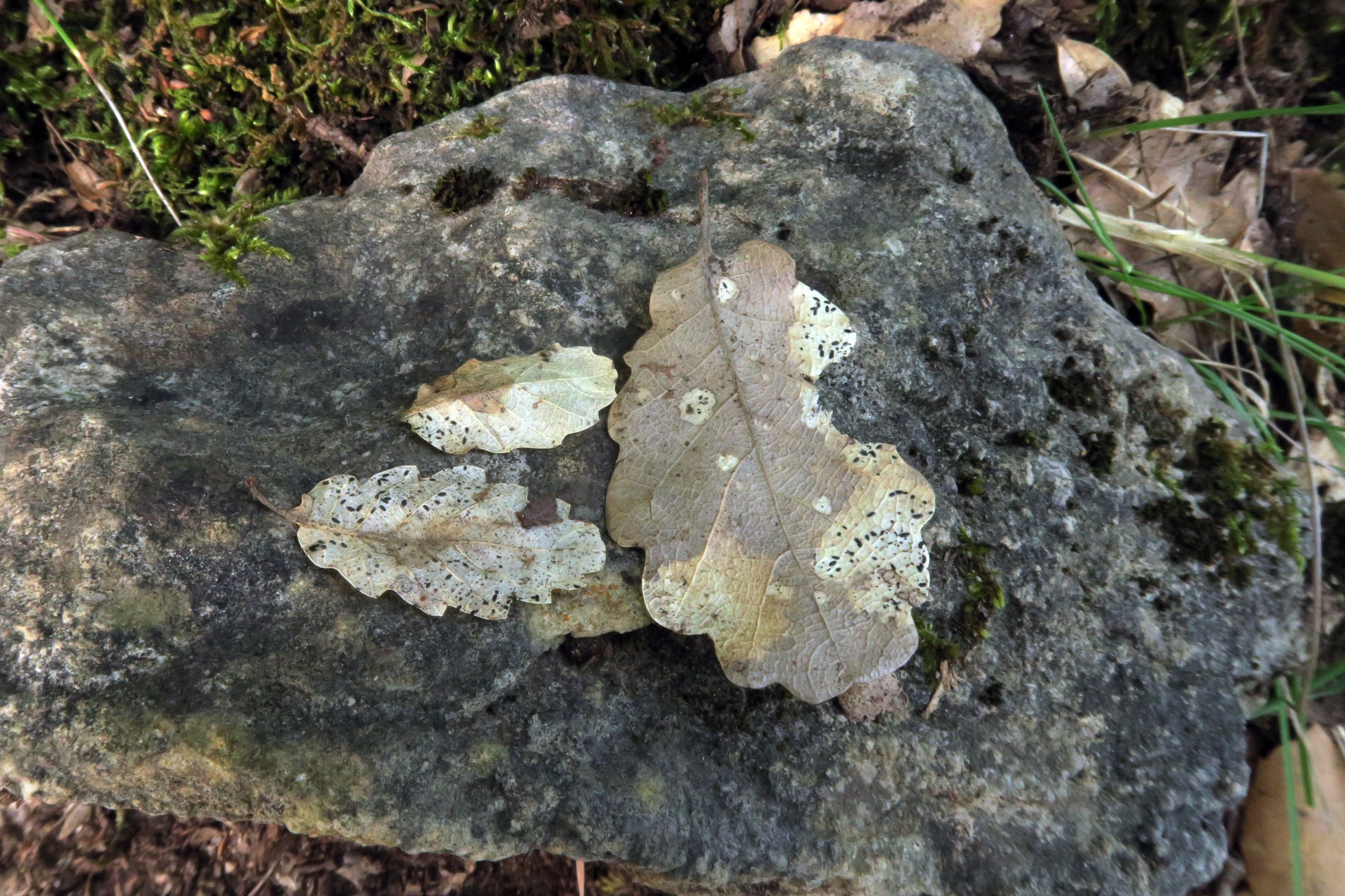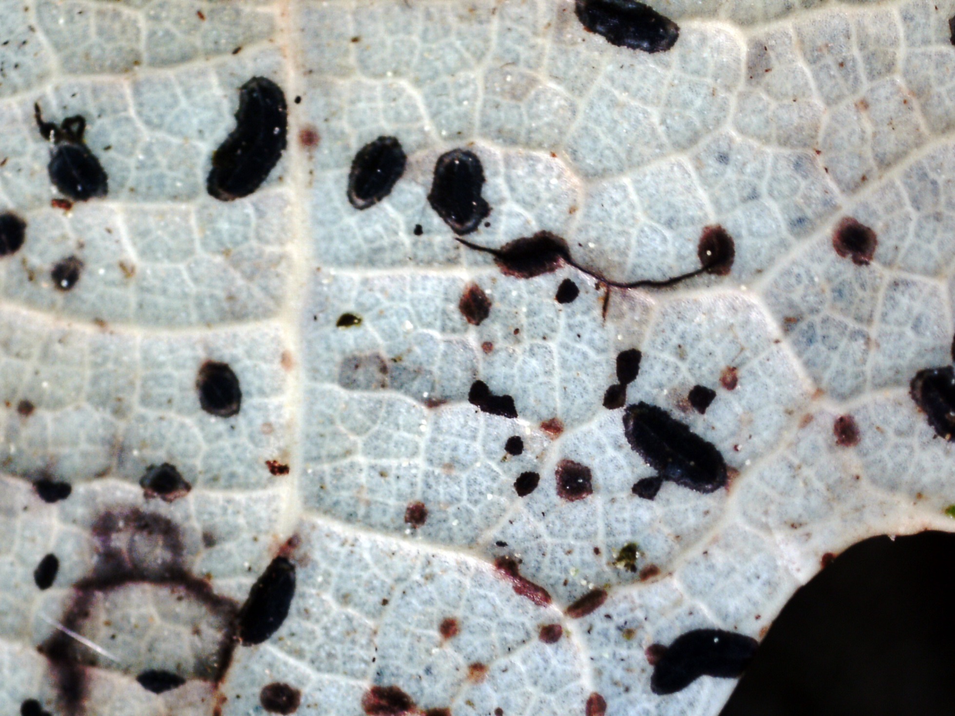 Sobre unas hojas de roble, un viejo conocido, el Lophodermium petiolicola: