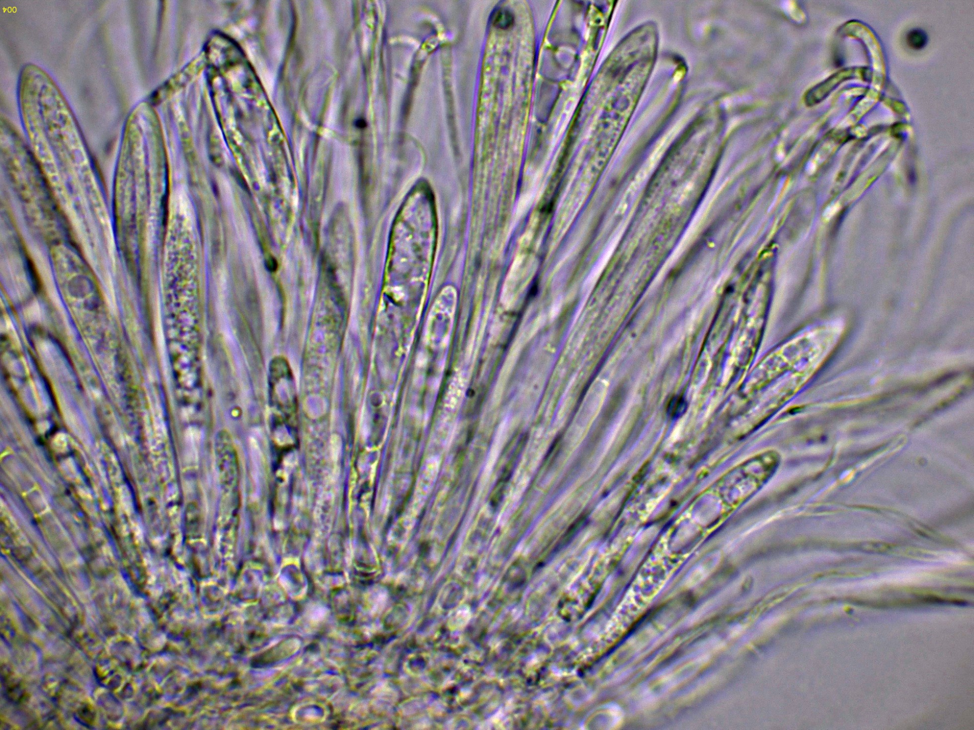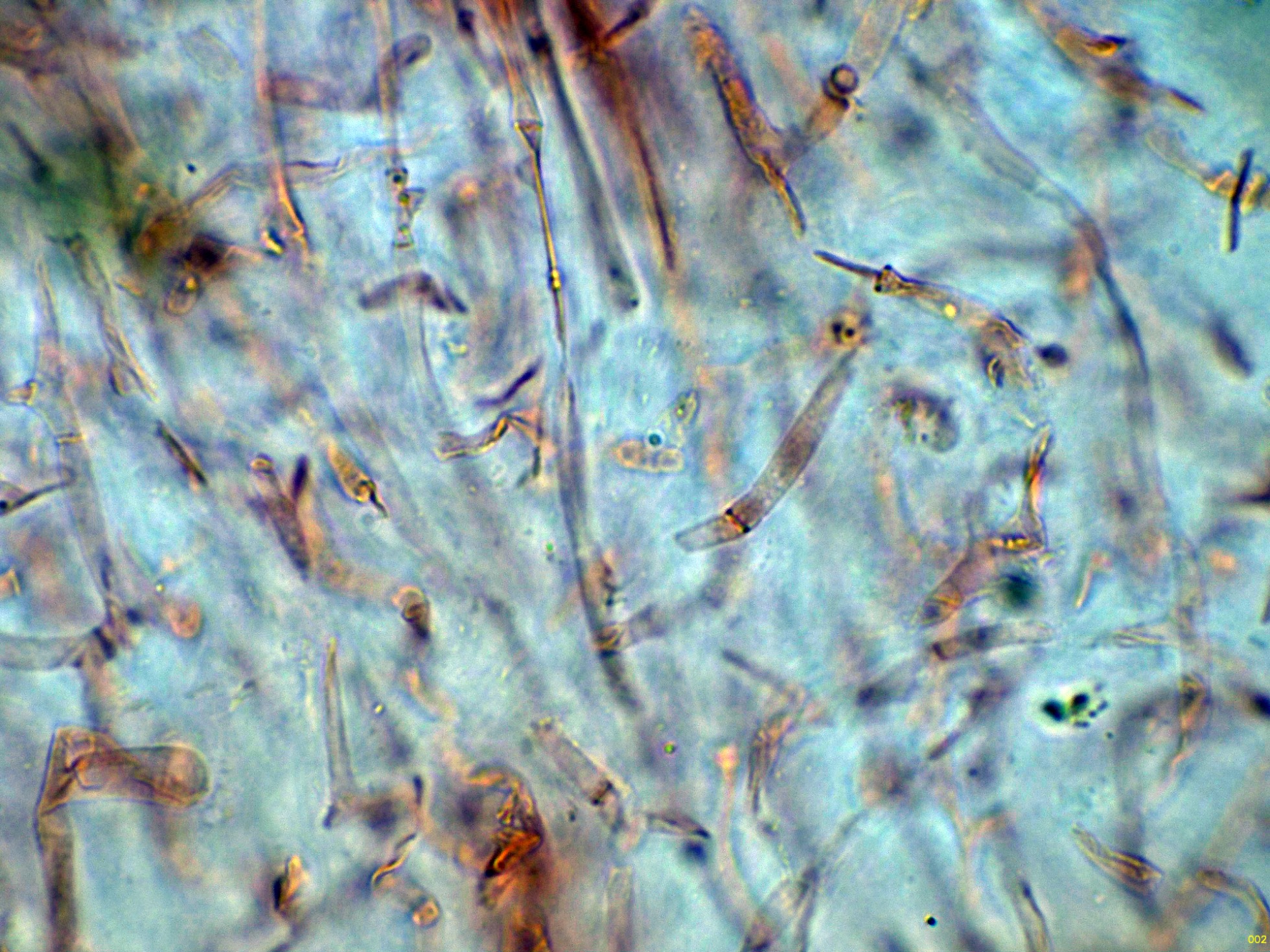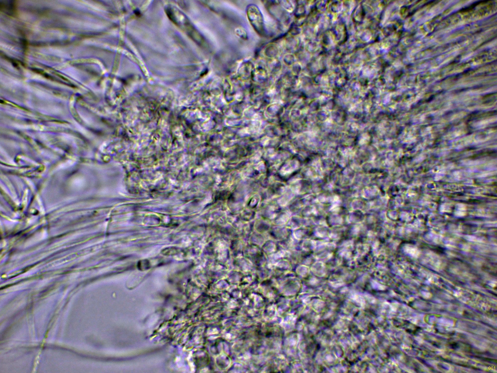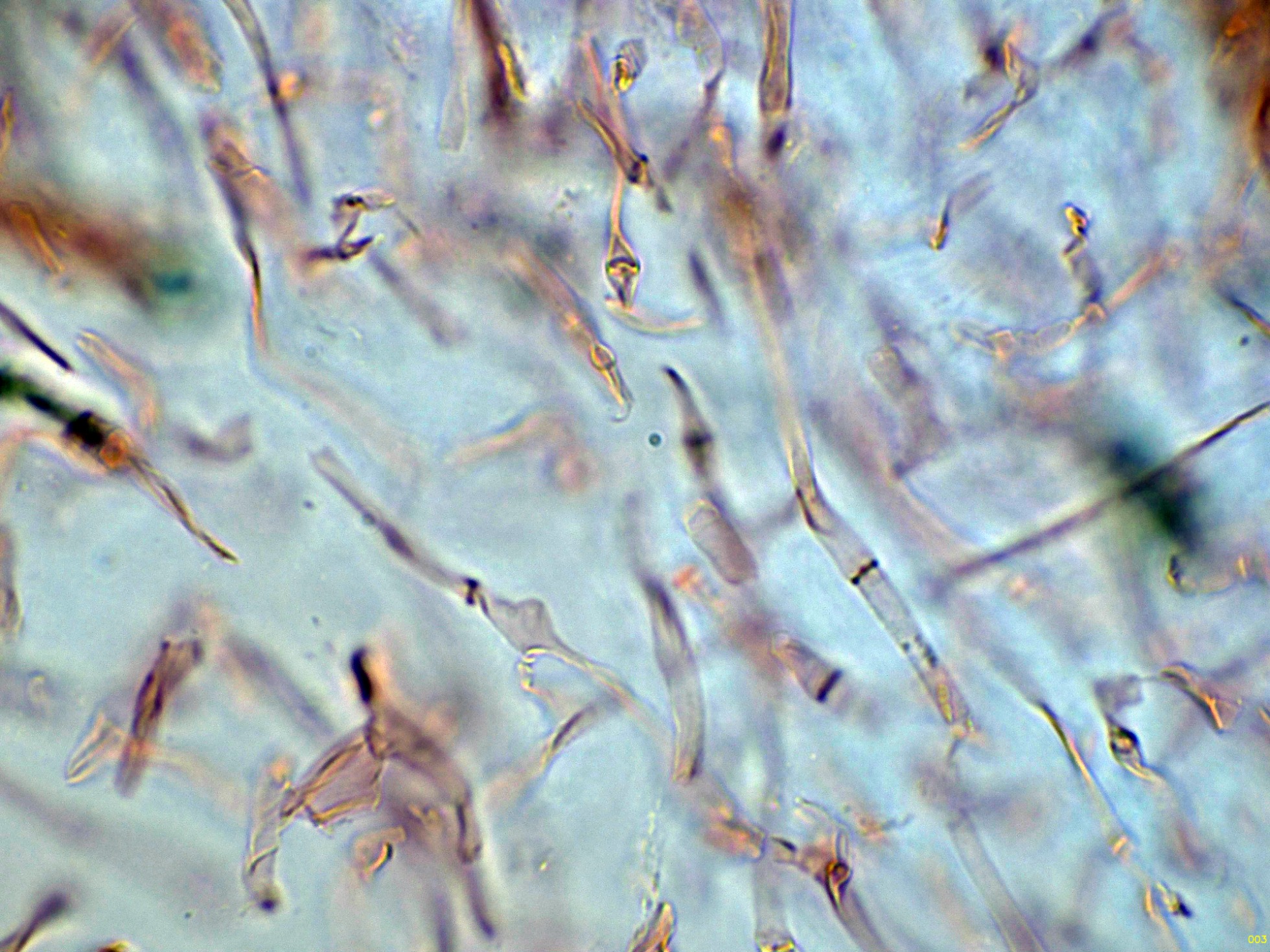 Otro Corticial, este con cistidios subulados, el Subulicystidium longisporum: