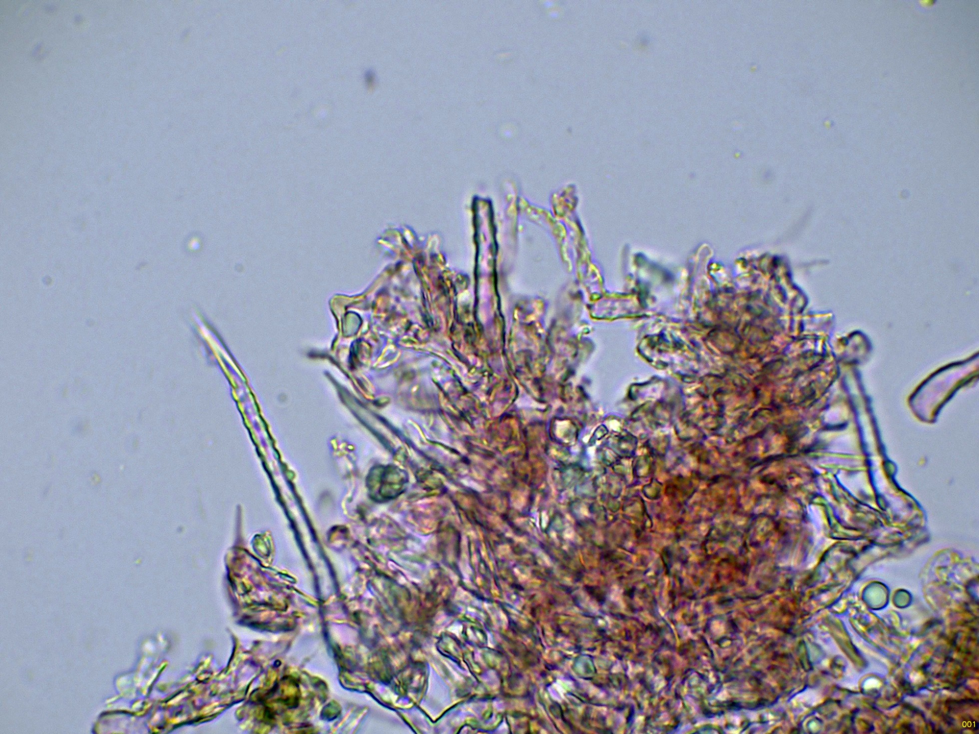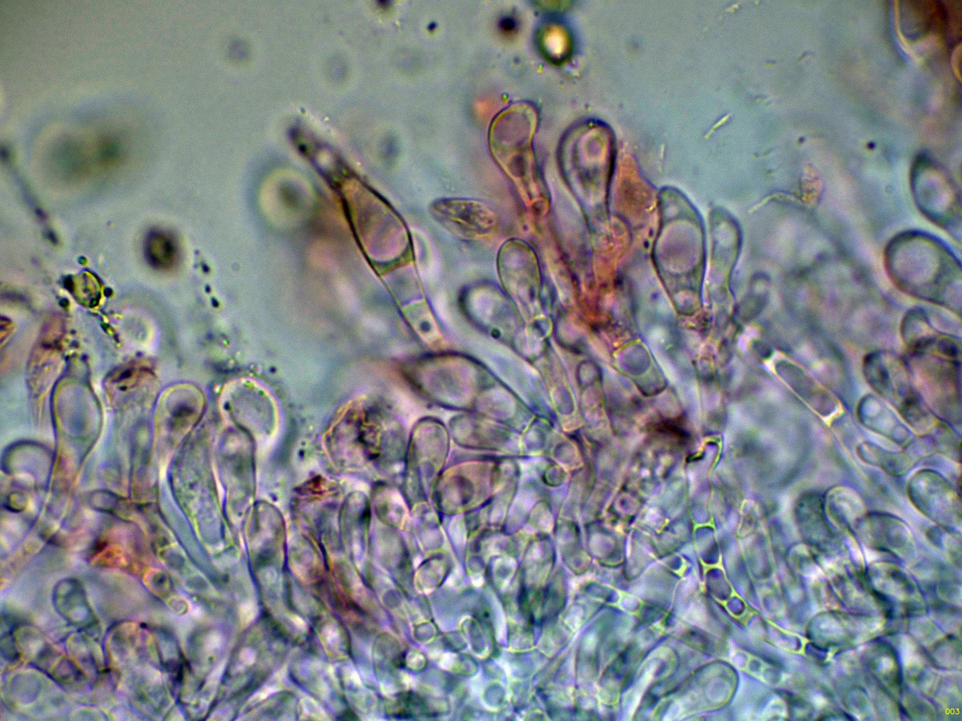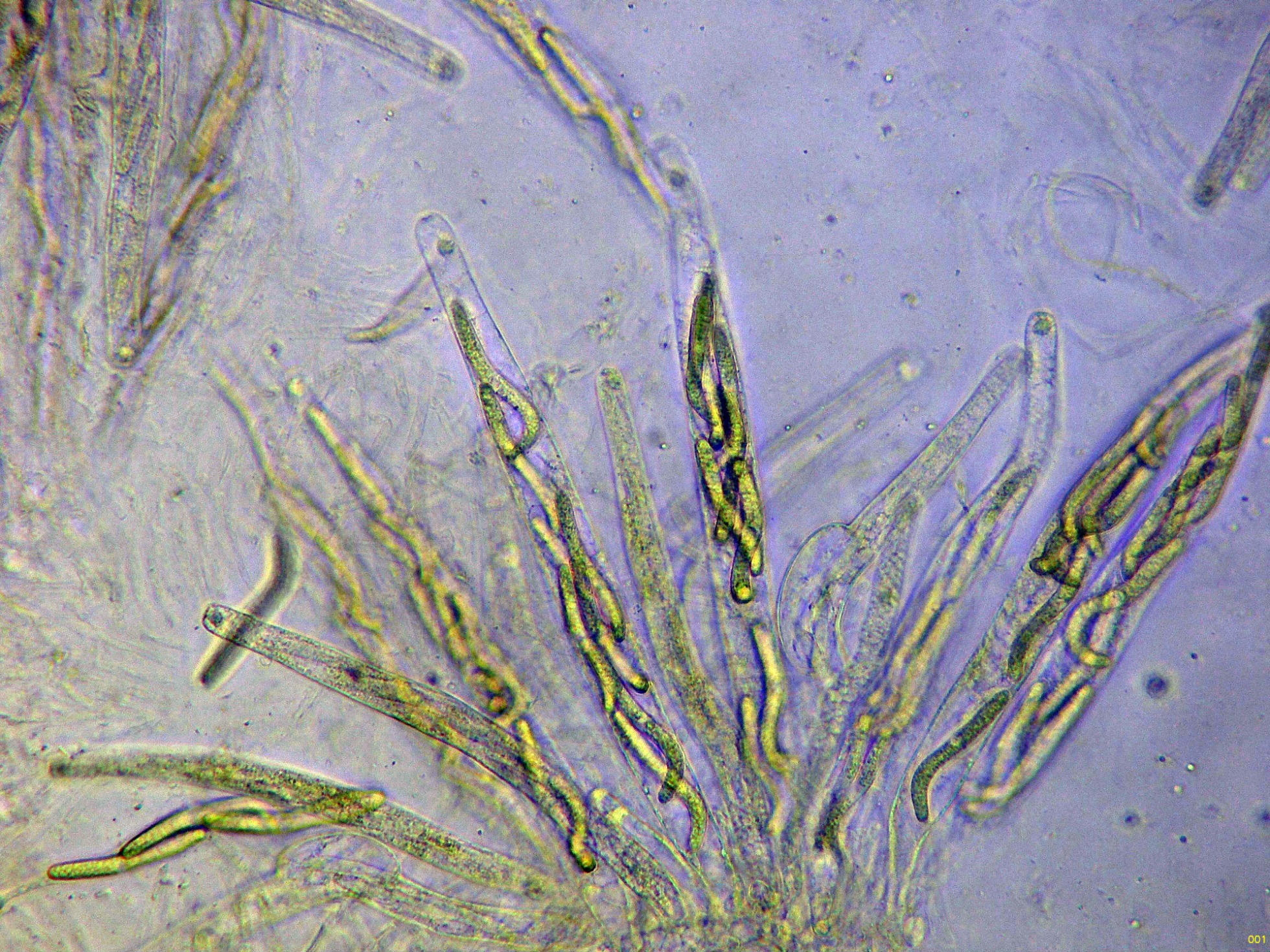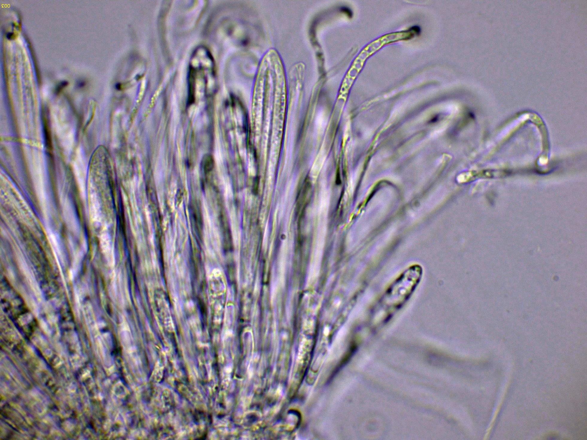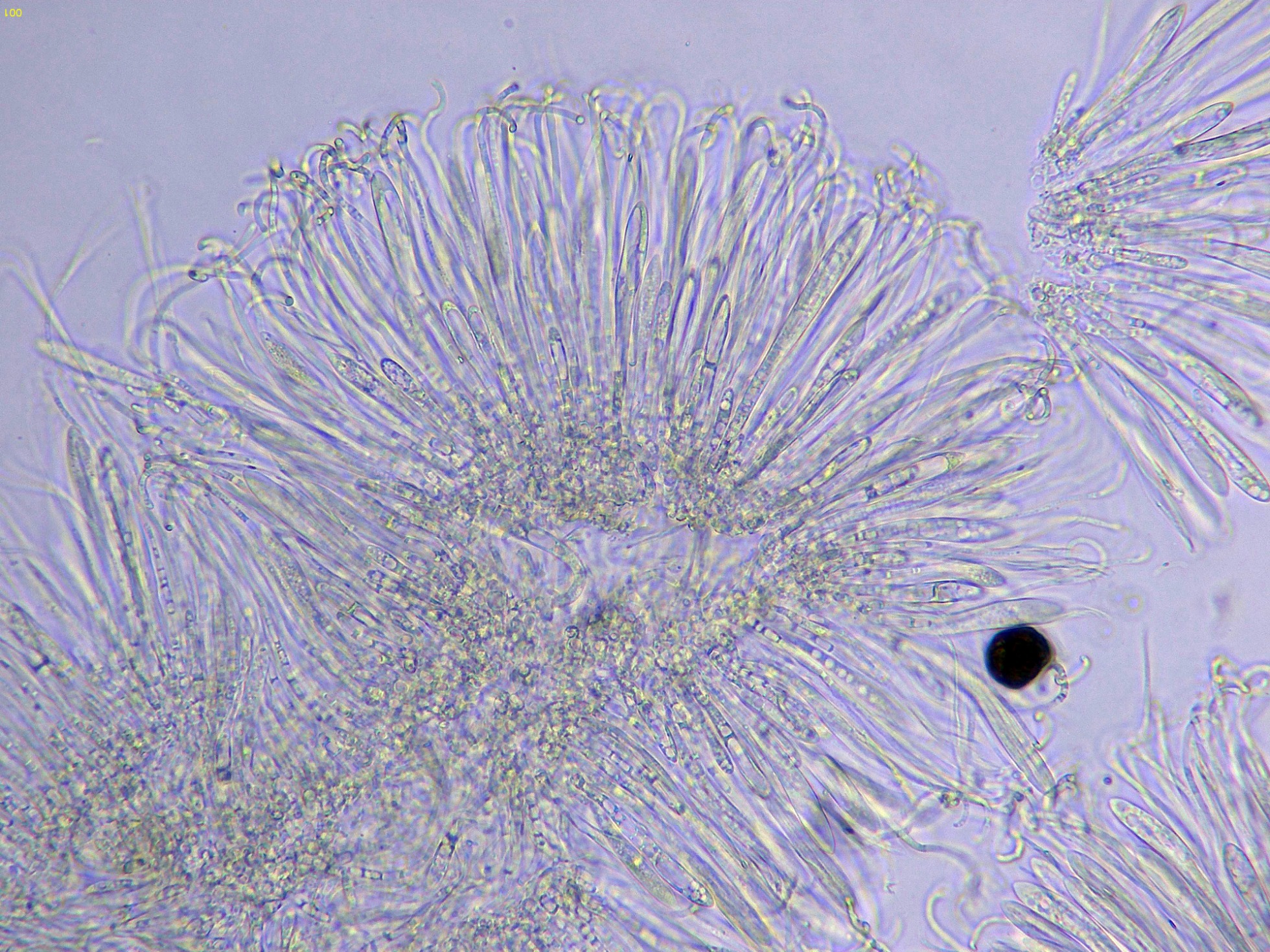 Otro Corticial, este con cistidios subulados, el Subulicystidium longisporum:
