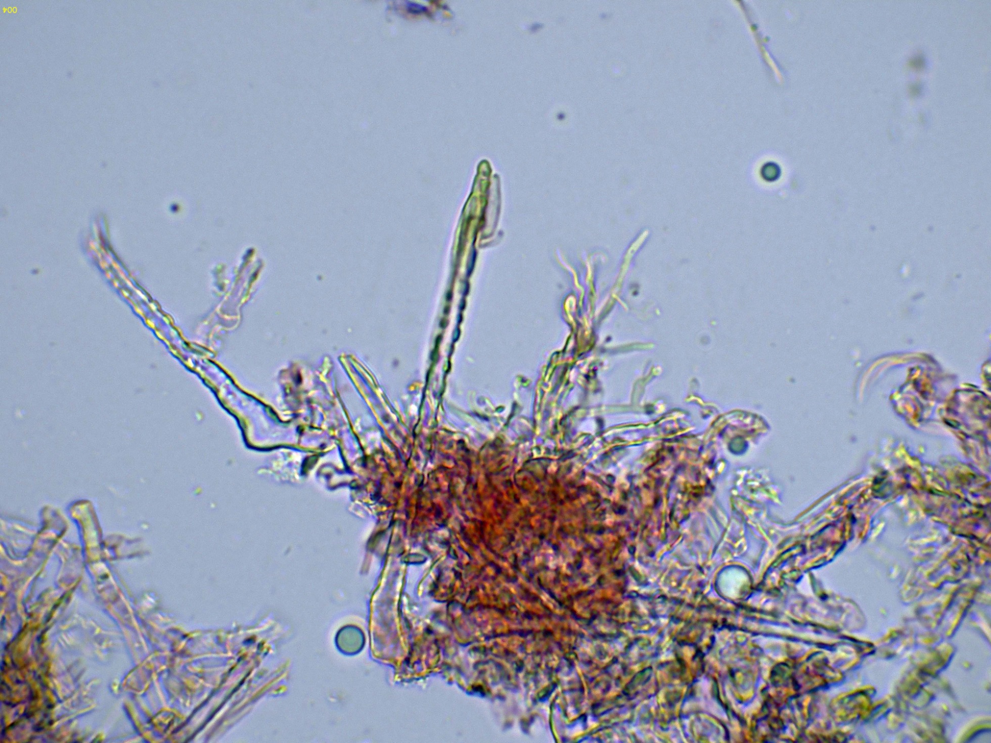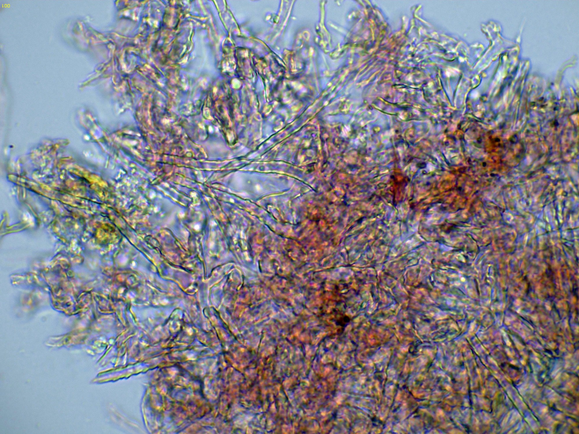 Superficie del basidioma a 20 aumentos: