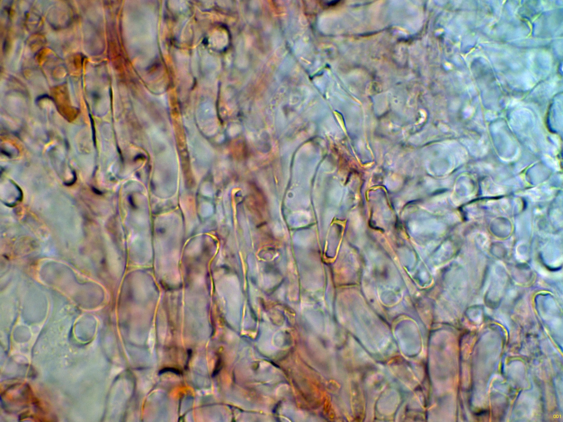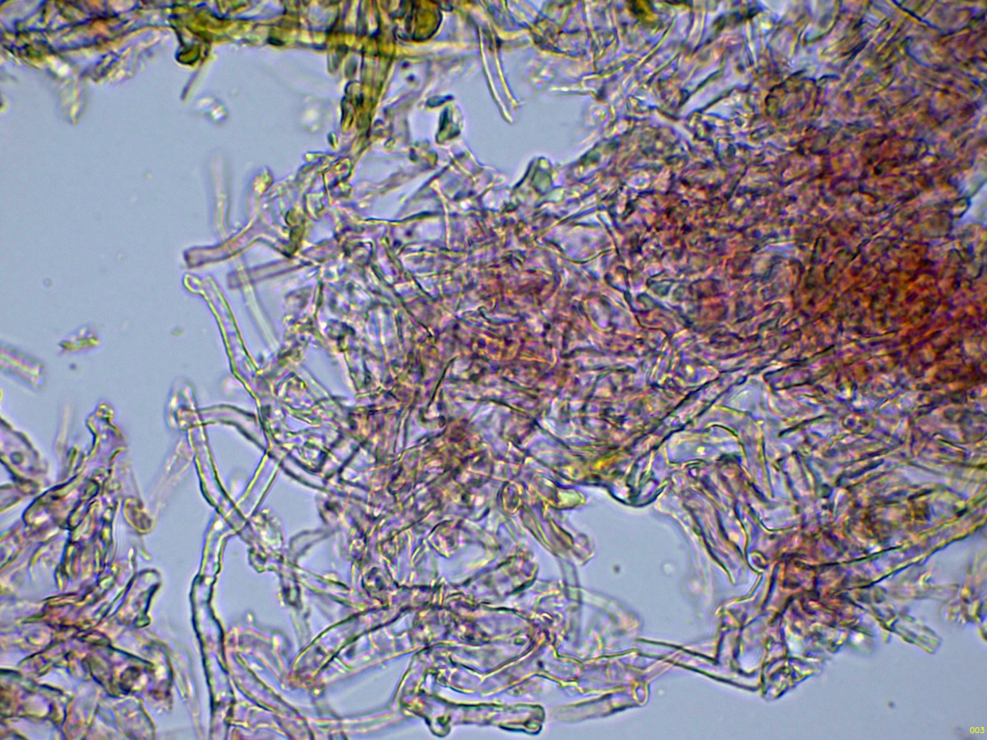 Hifas de la suprapellis, fuertemente separadas por gelificación y sin fíbulas: