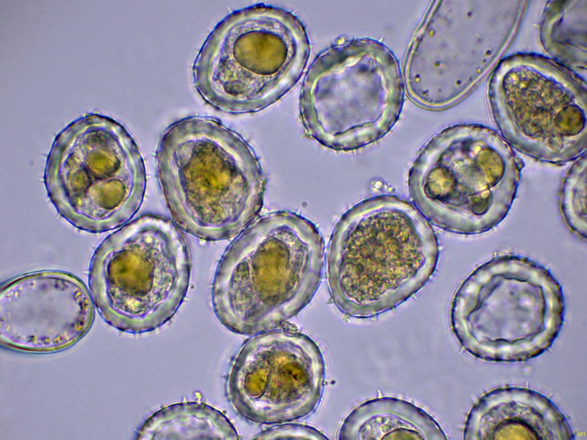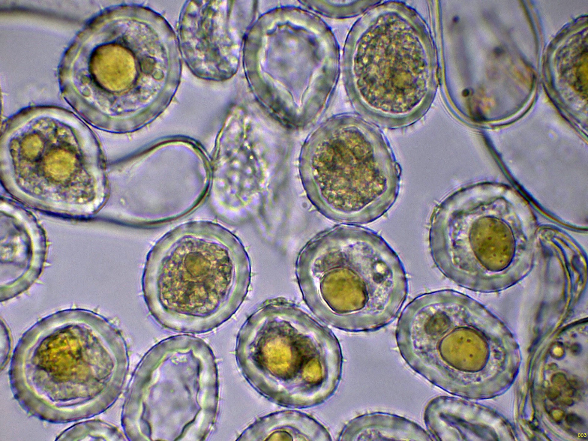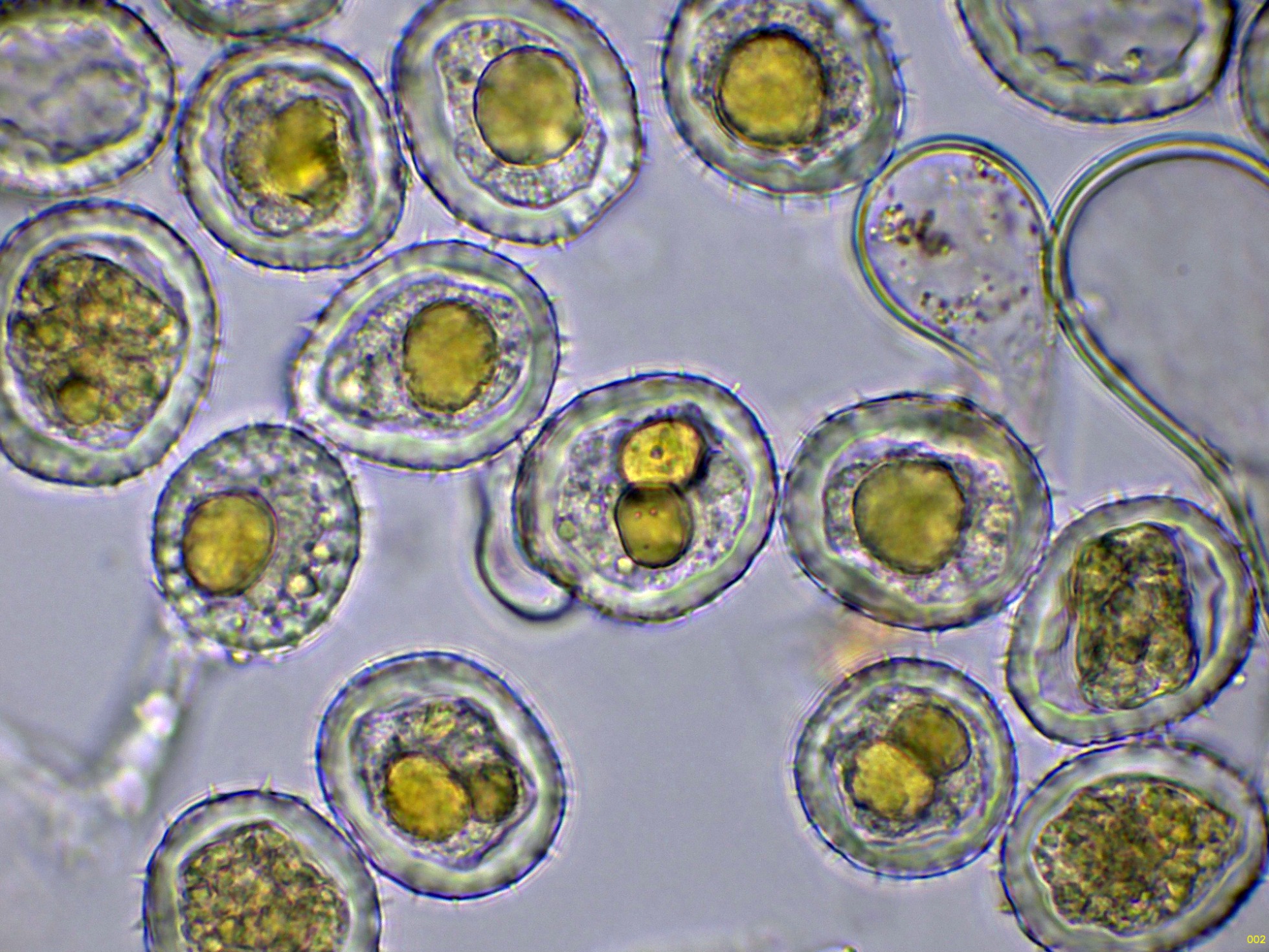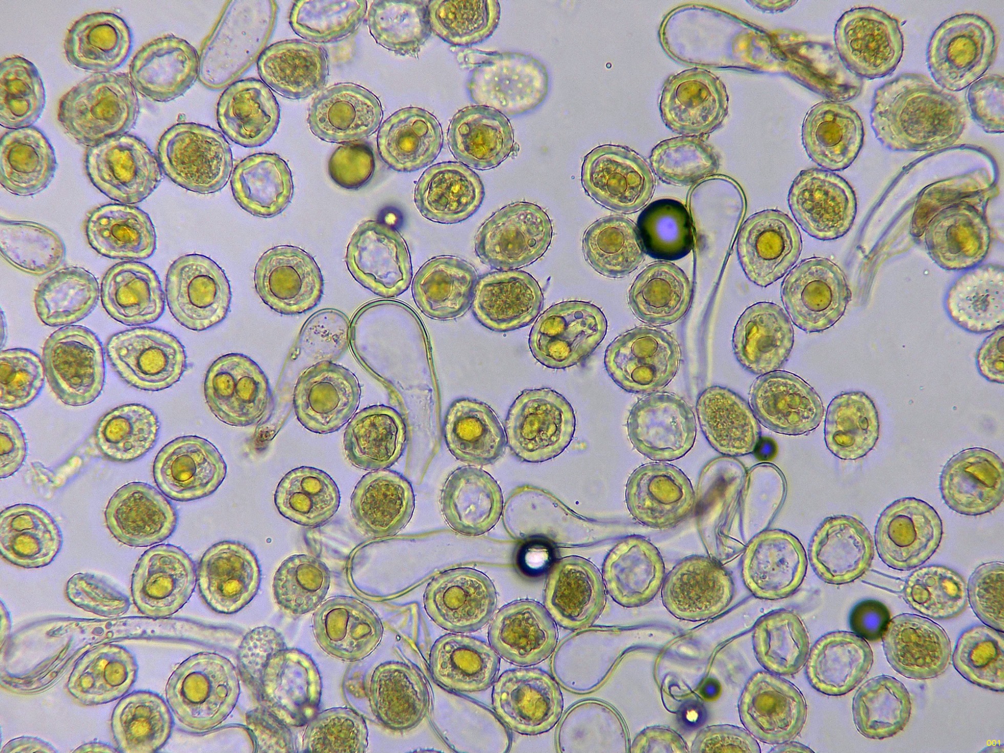 Y unas esporas libres en agua, tengo muy clara su identidad, por lo que no me he molestado en medirlas: