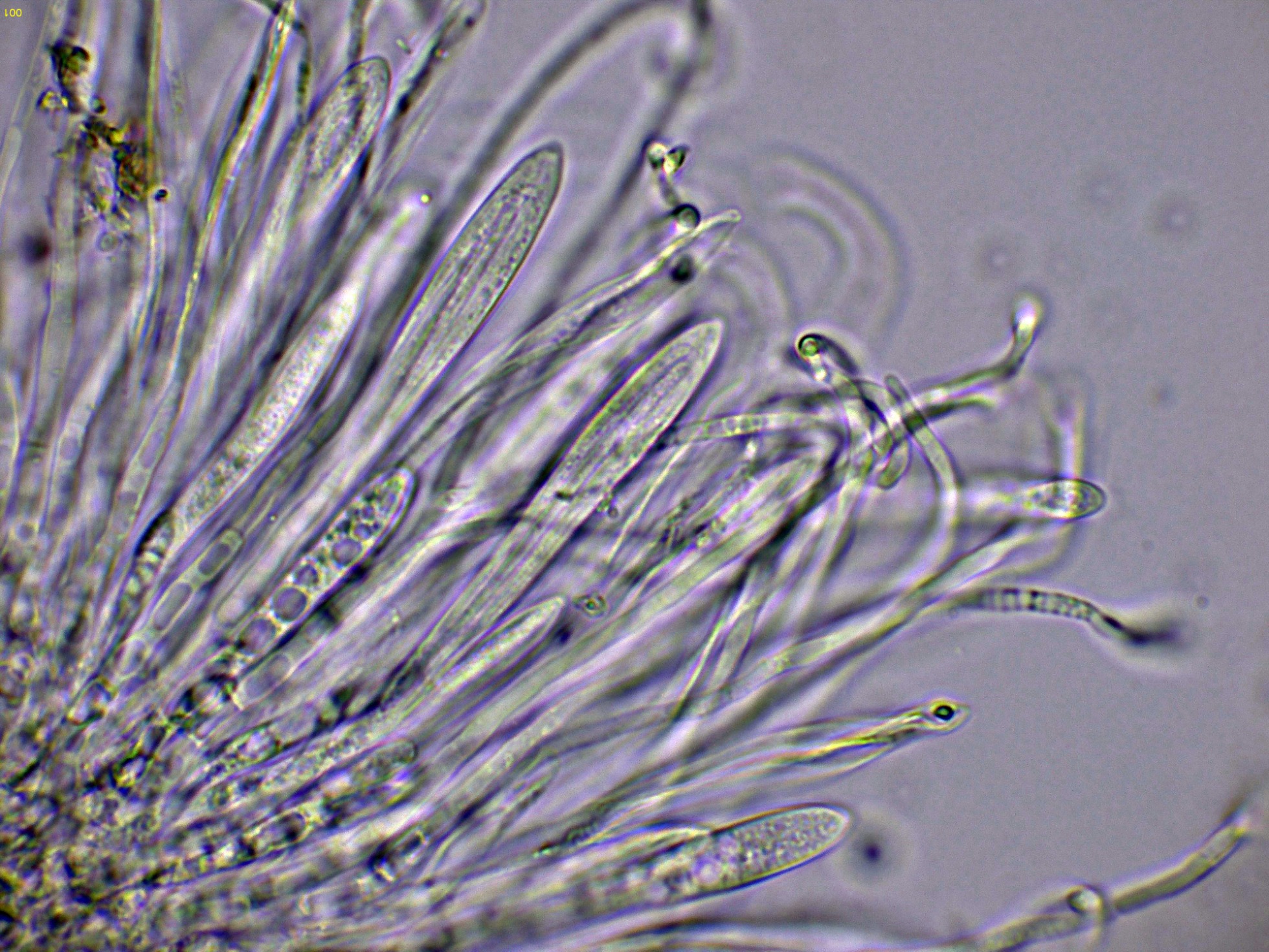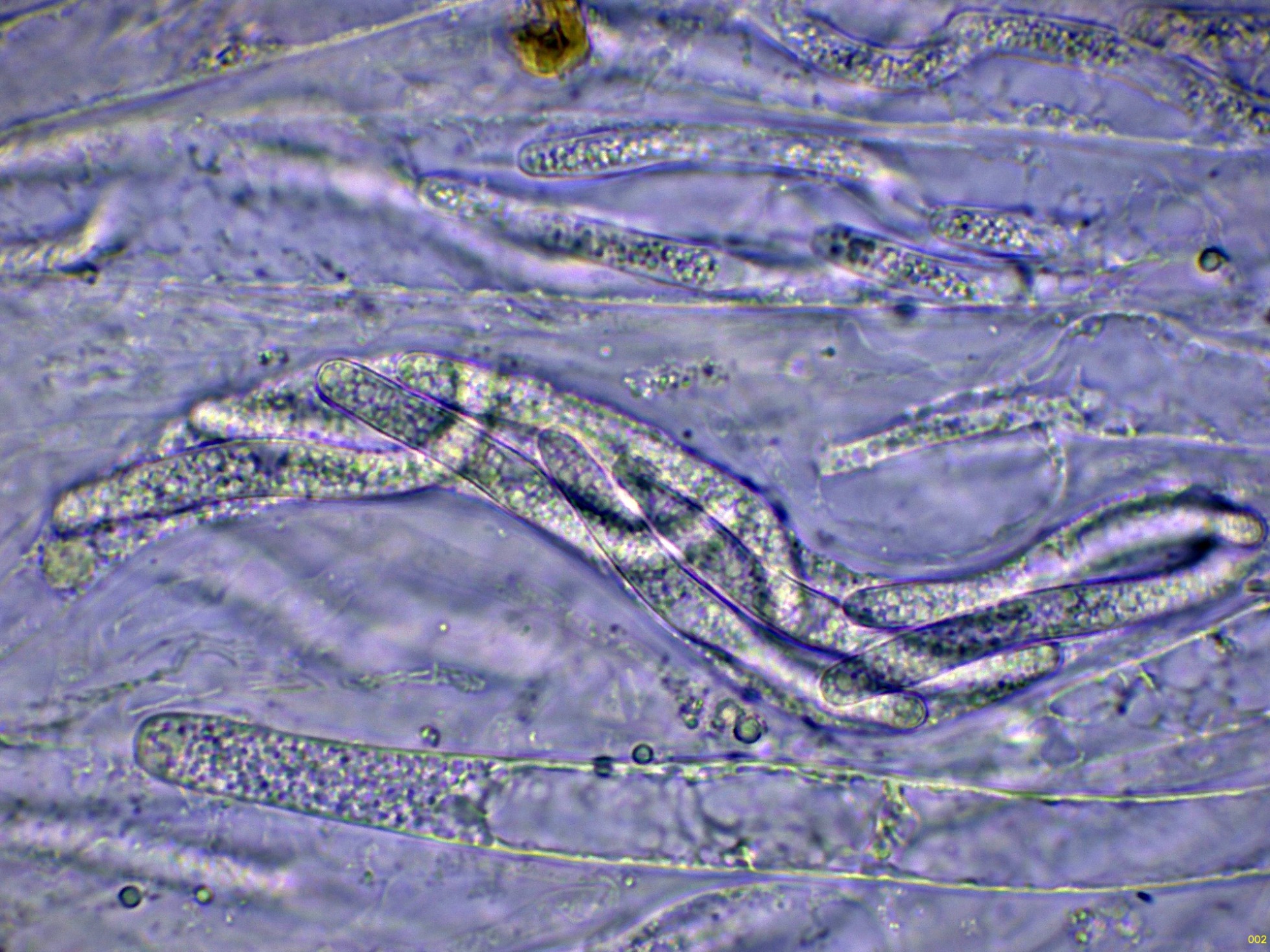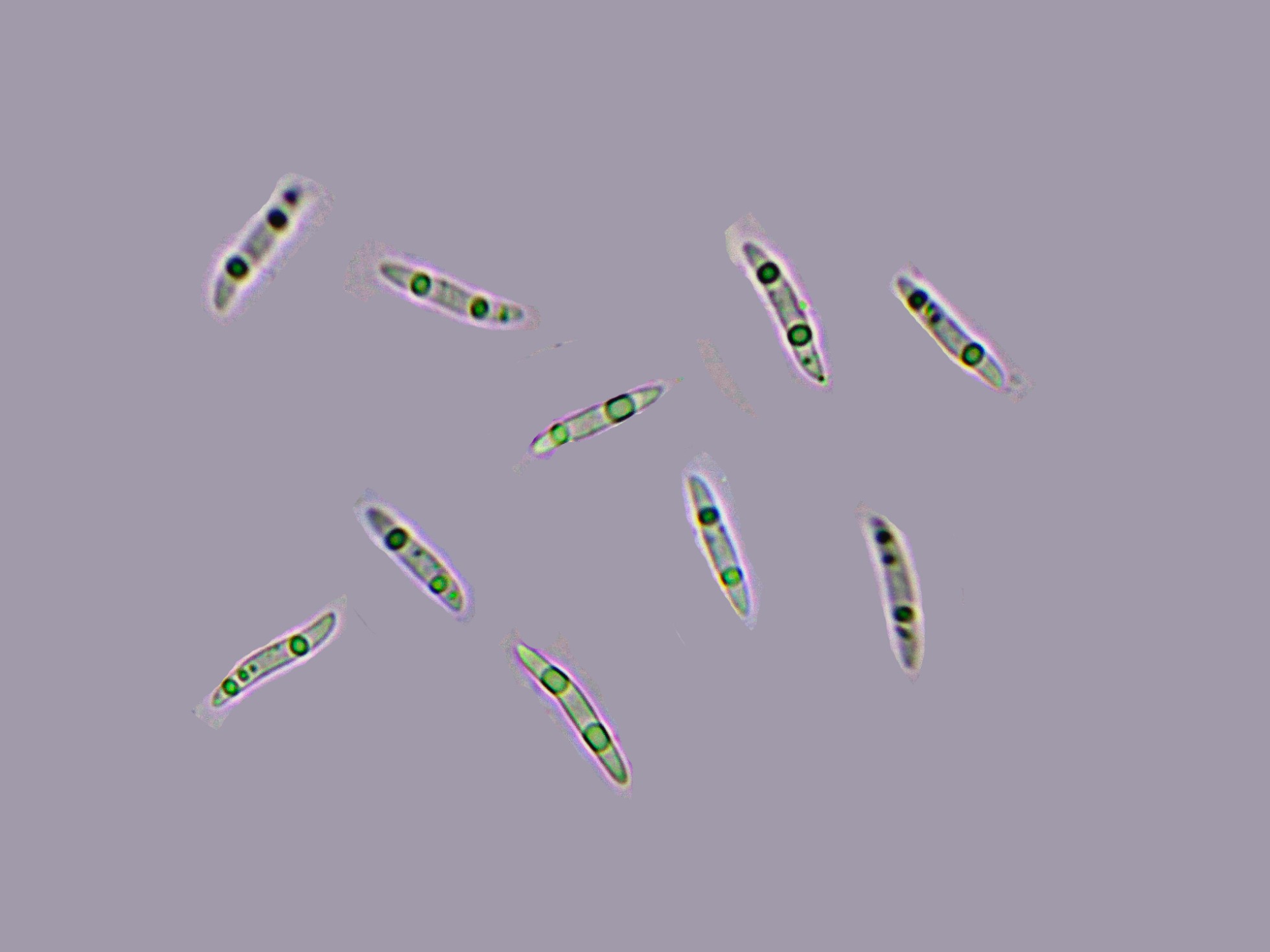 Estas esporas en una nueva medición con unas medidas de (15.2) 16 - 17.5 (19.3) × 2.6 - 2.8 (2.9) µm.