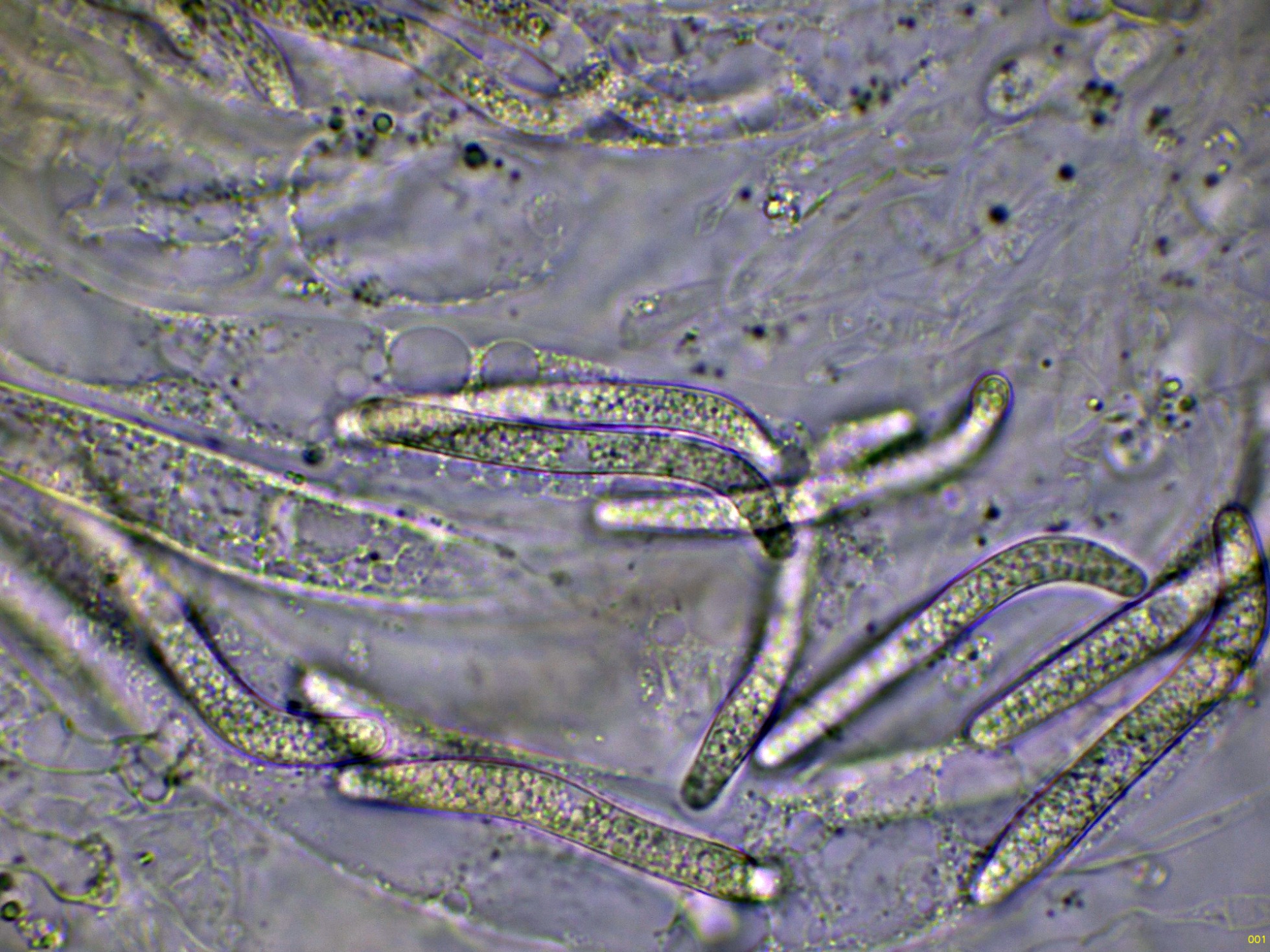 Las hifas del excípulo en agua: