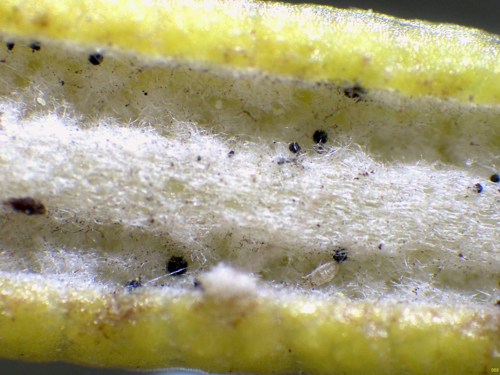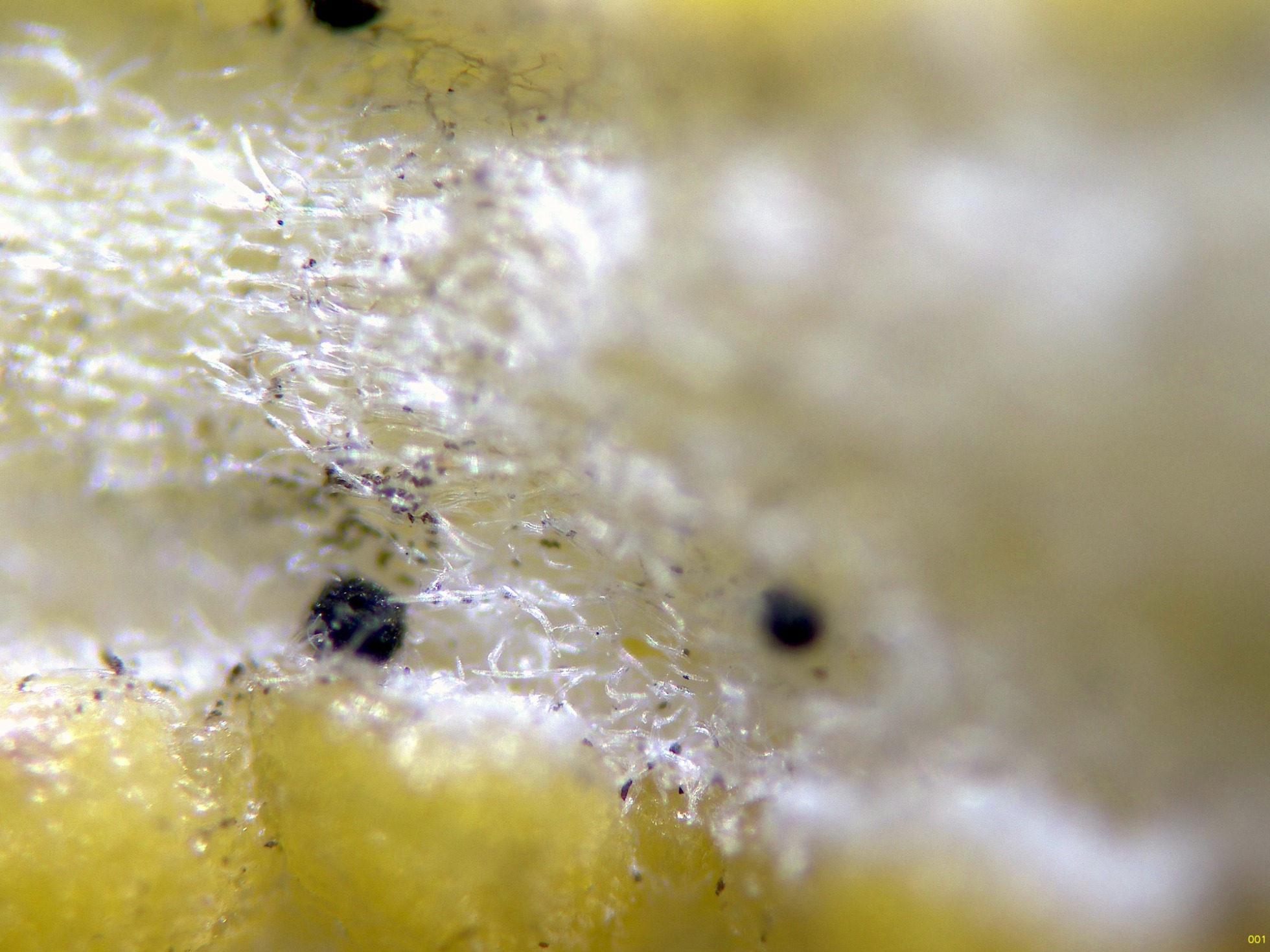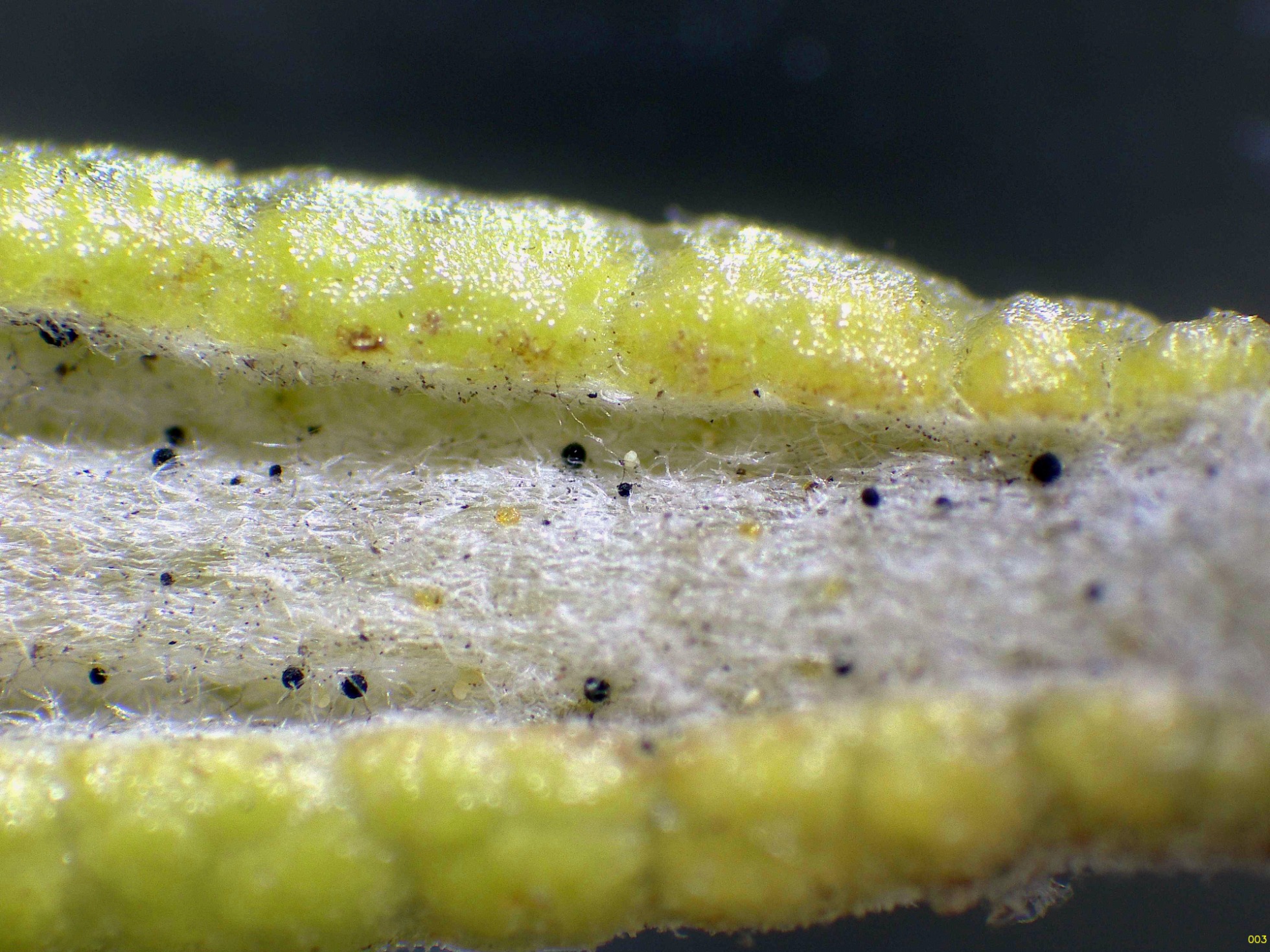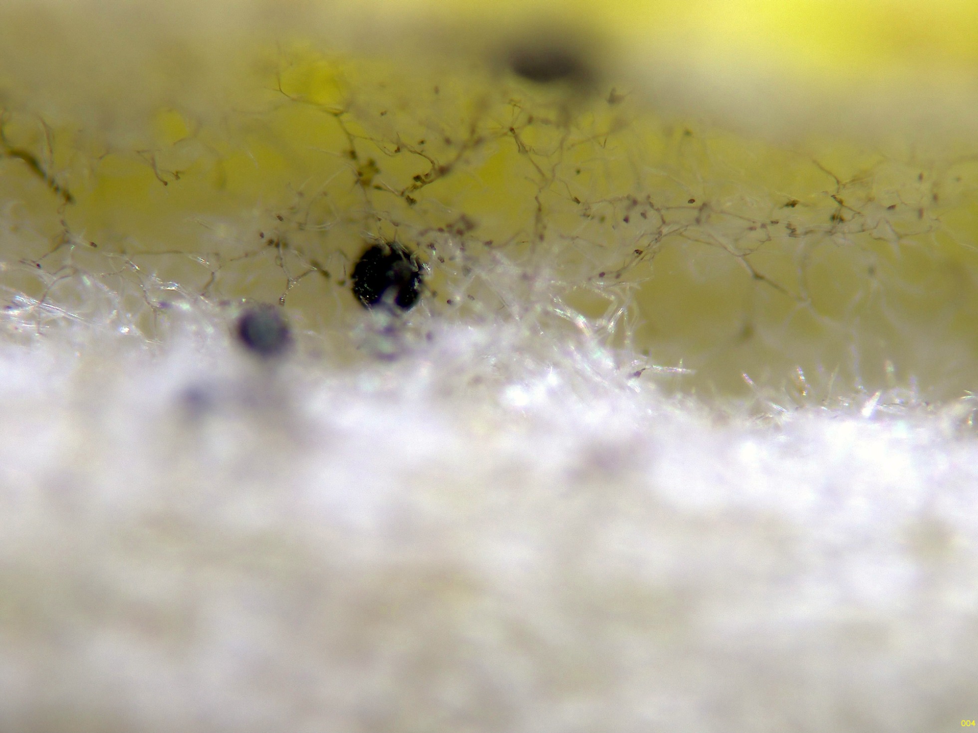 Un diminuto hongo fotografiado el 15 de junio pasado, con forma de granos negros globosos, con un diámetro de tan solo entre 0,05 y 0,15 mm., brotando sobre unas hojas de Salvia jordanii, conocida coloquialmente como romero, a las que produce un muy marcado amarilleamiento.