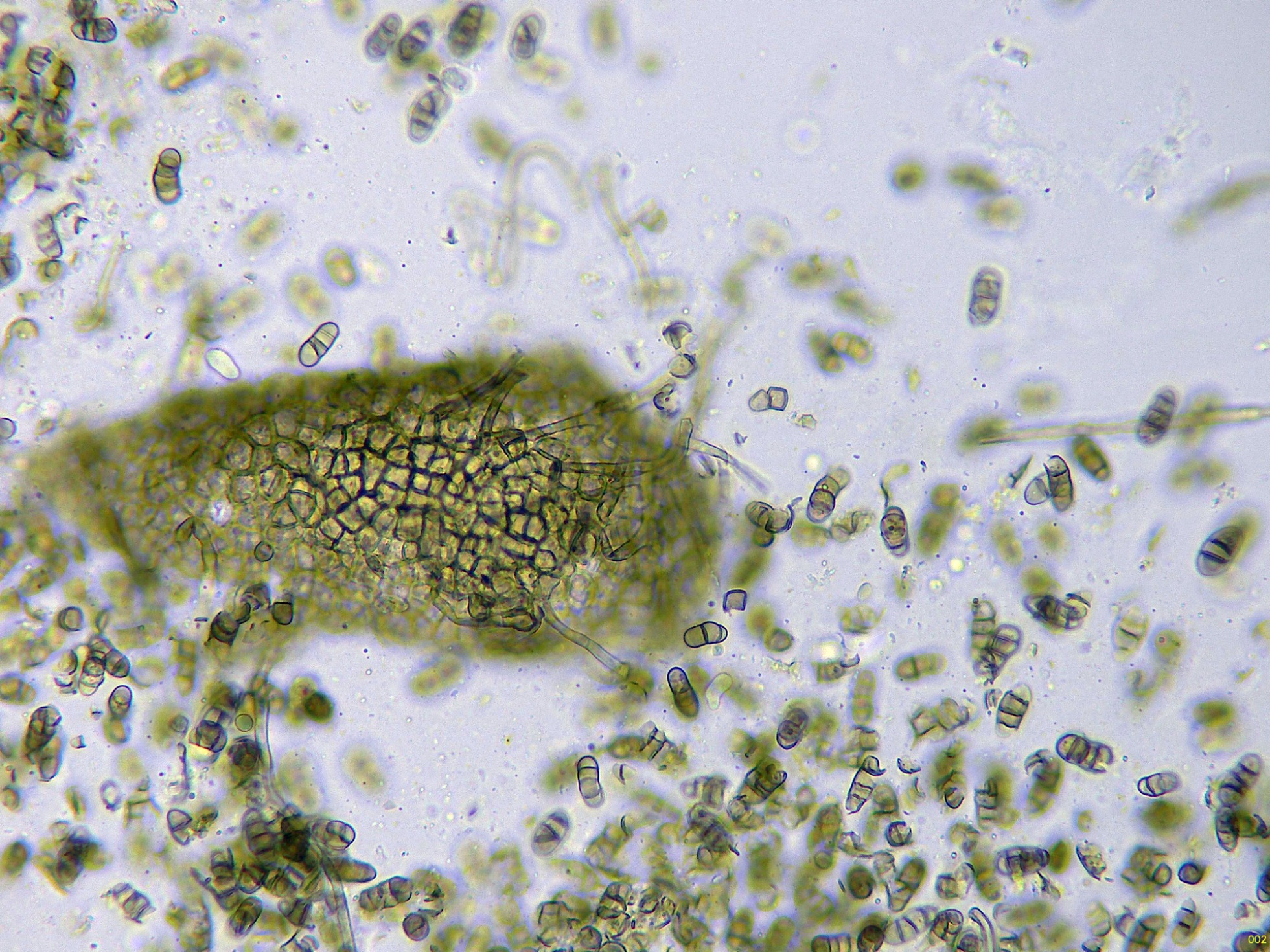 Quizás un hongo cercano a Camarosporium salviae Pat. Microscopía.