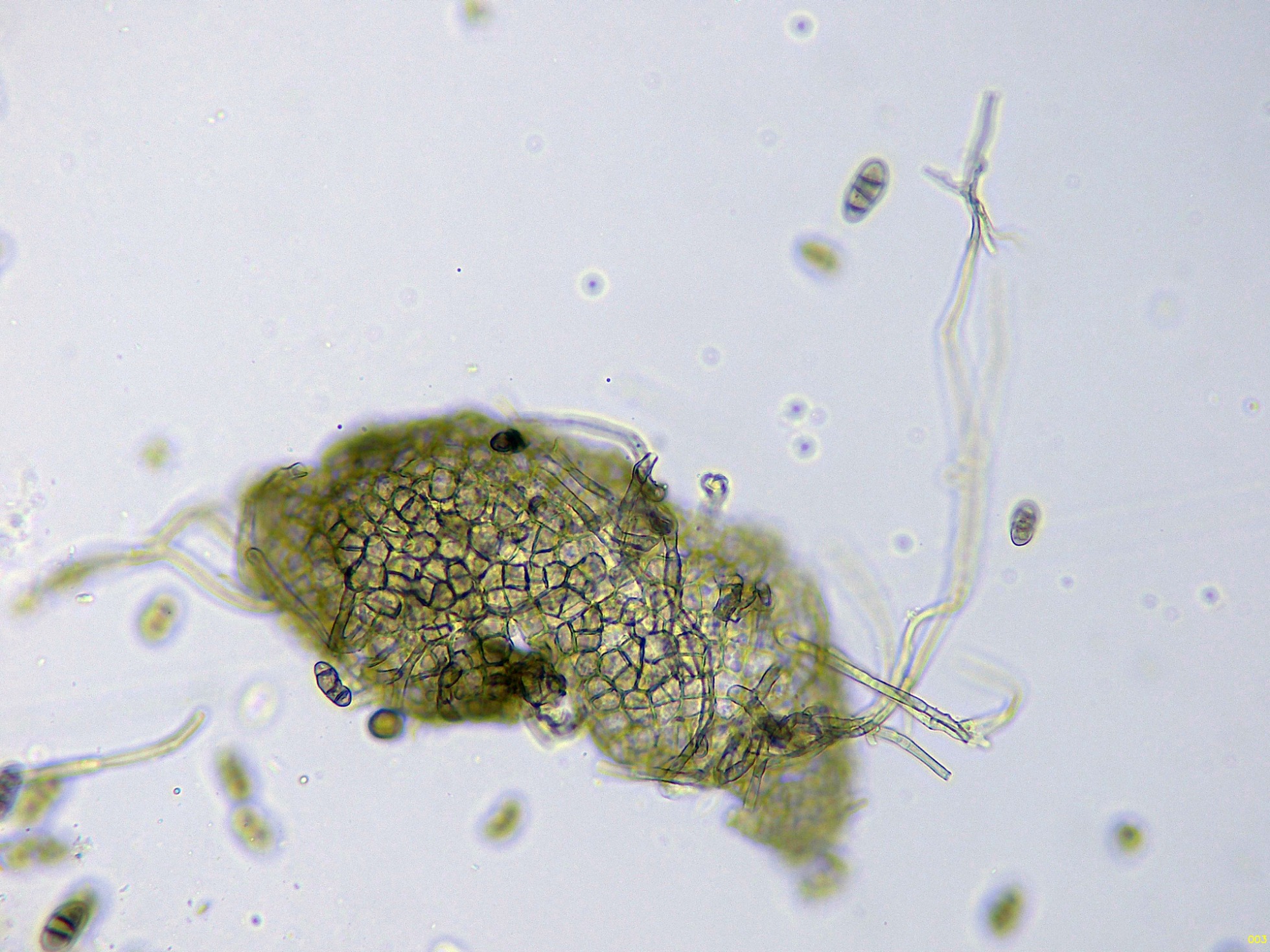 - Quizás un hongo cercano a Camarosporium salviae Pat. Microscopía.