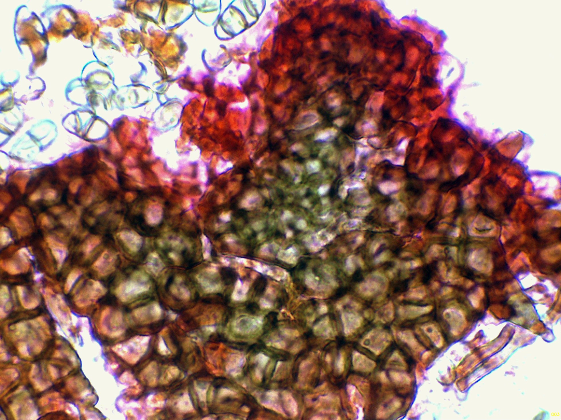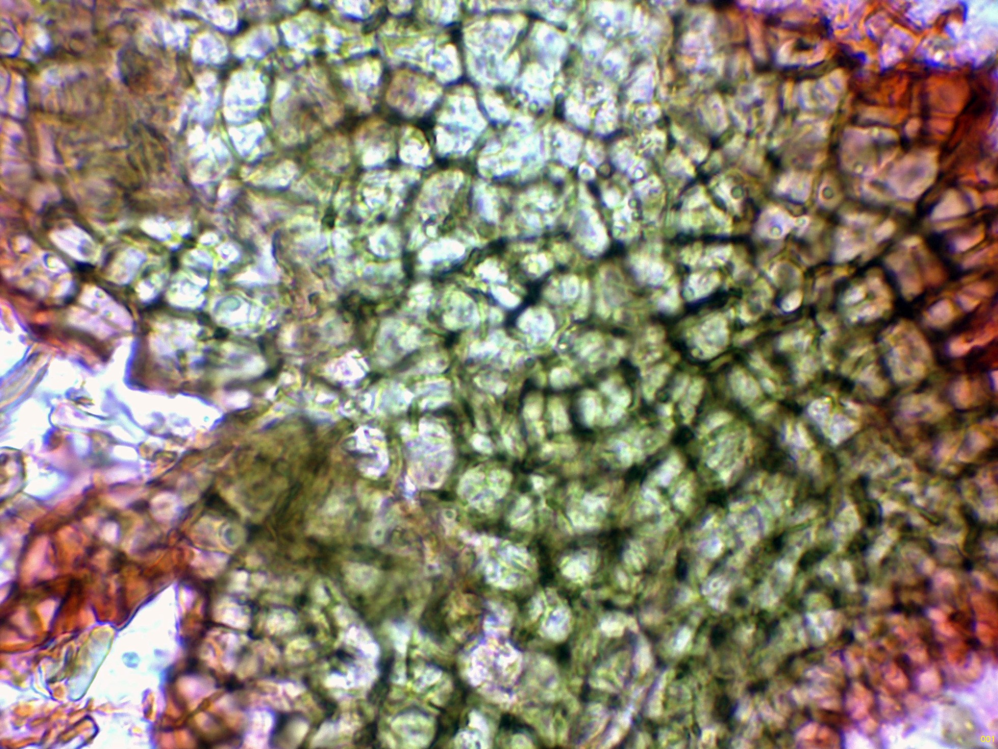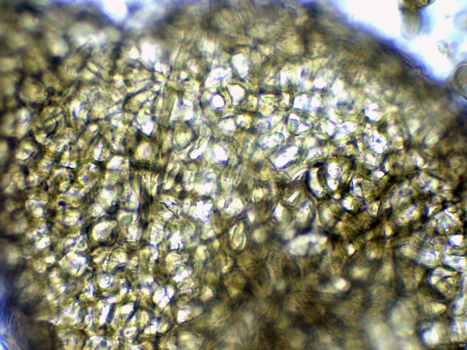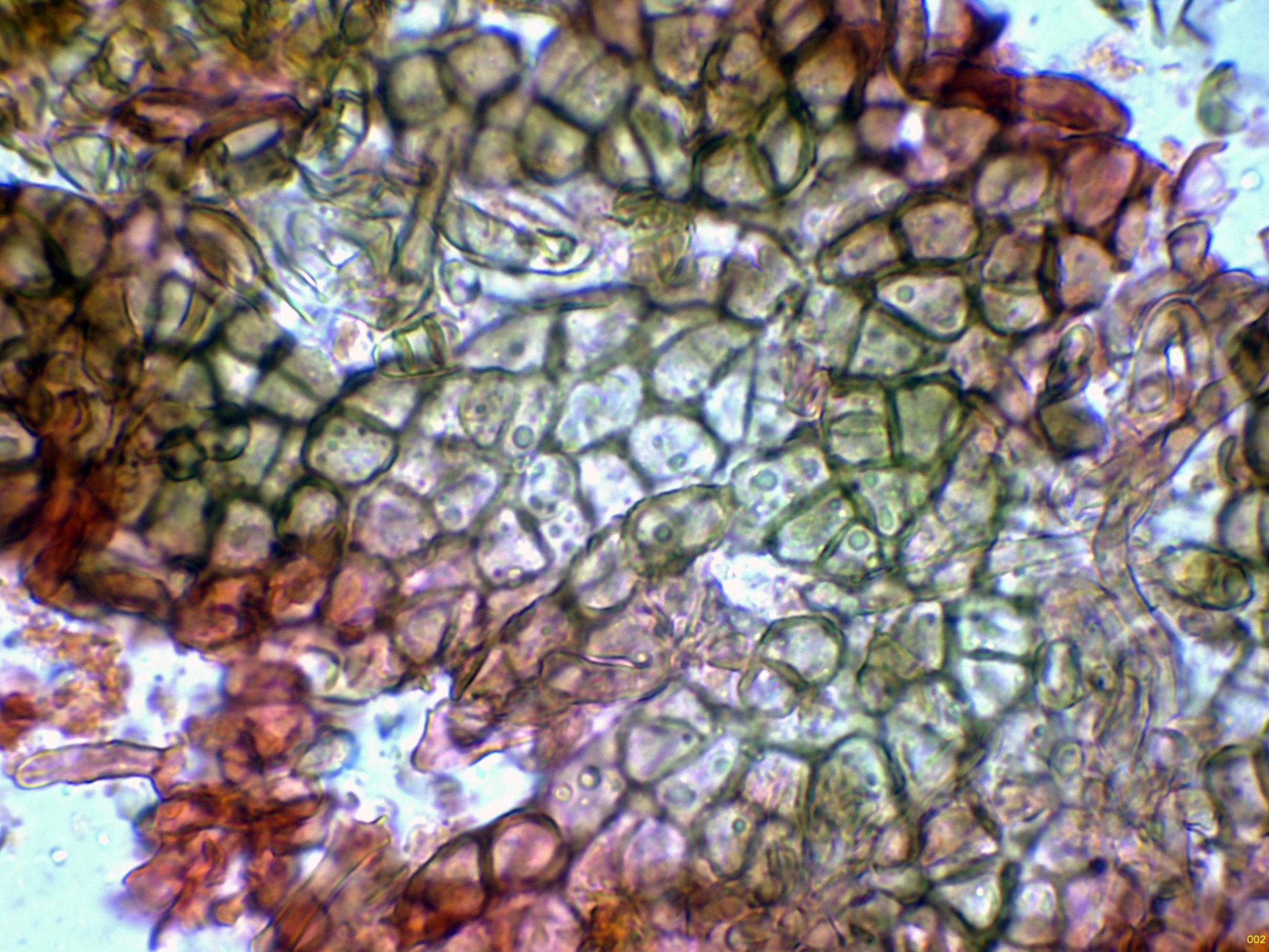Hifas de la pared del peritecio de textura angular.