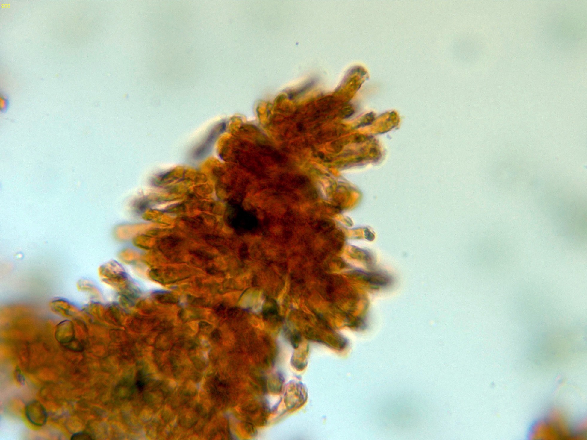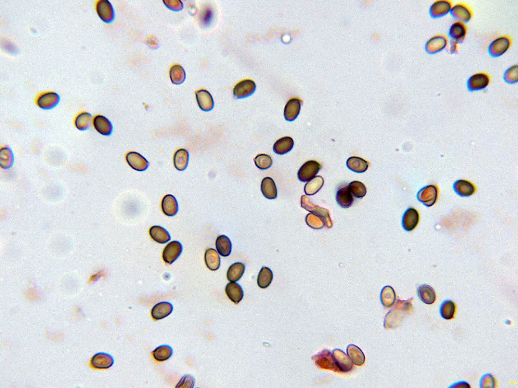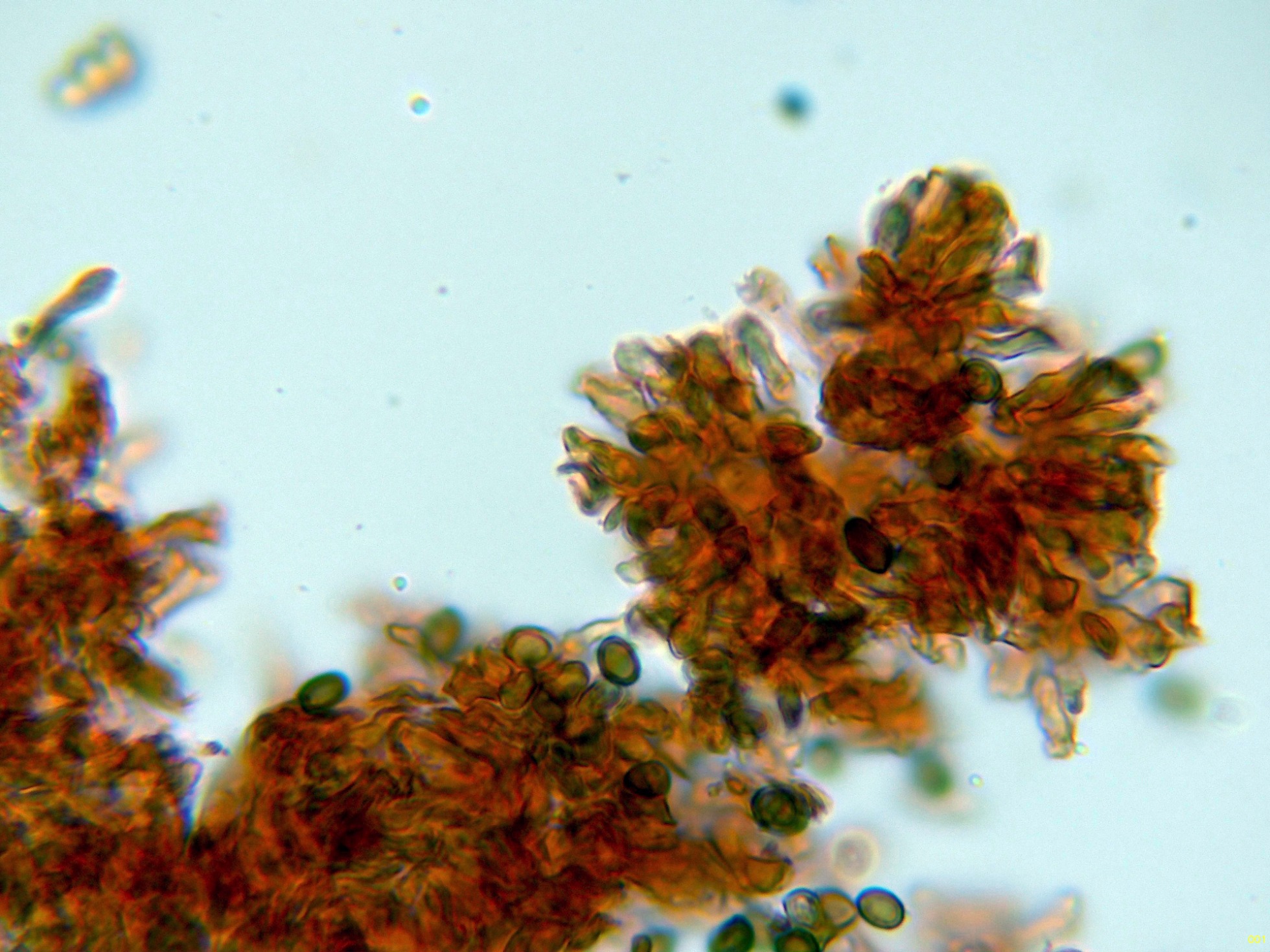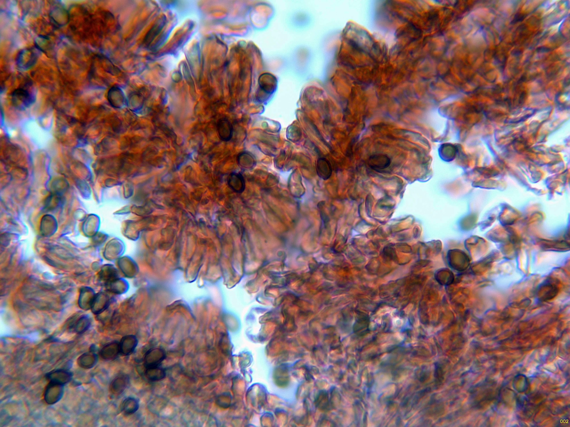 Las hifas de la suprapellis en agua, fuertemente pigmentadas, y al igual que el resto de Agaricus, sin fíbulas: