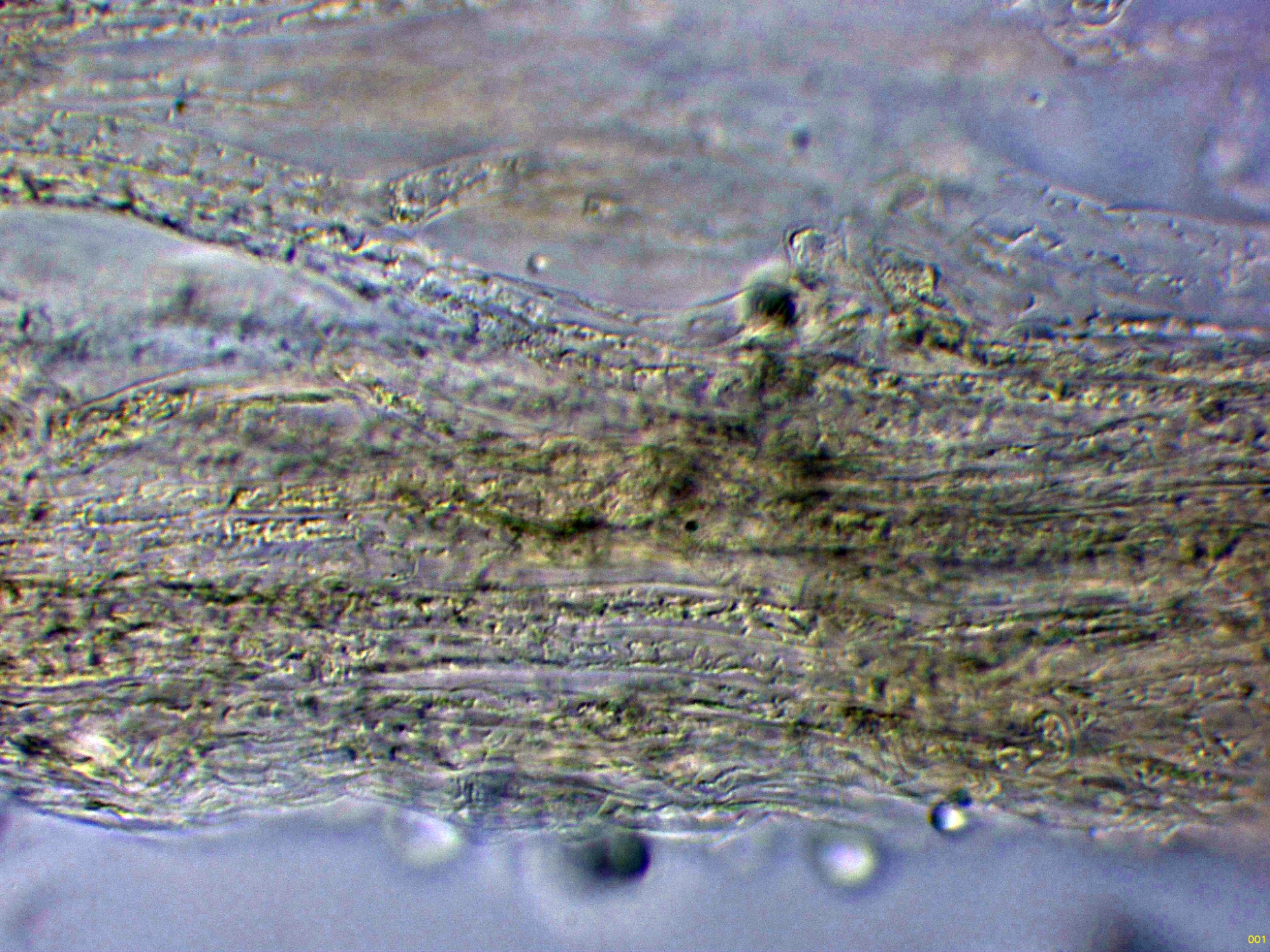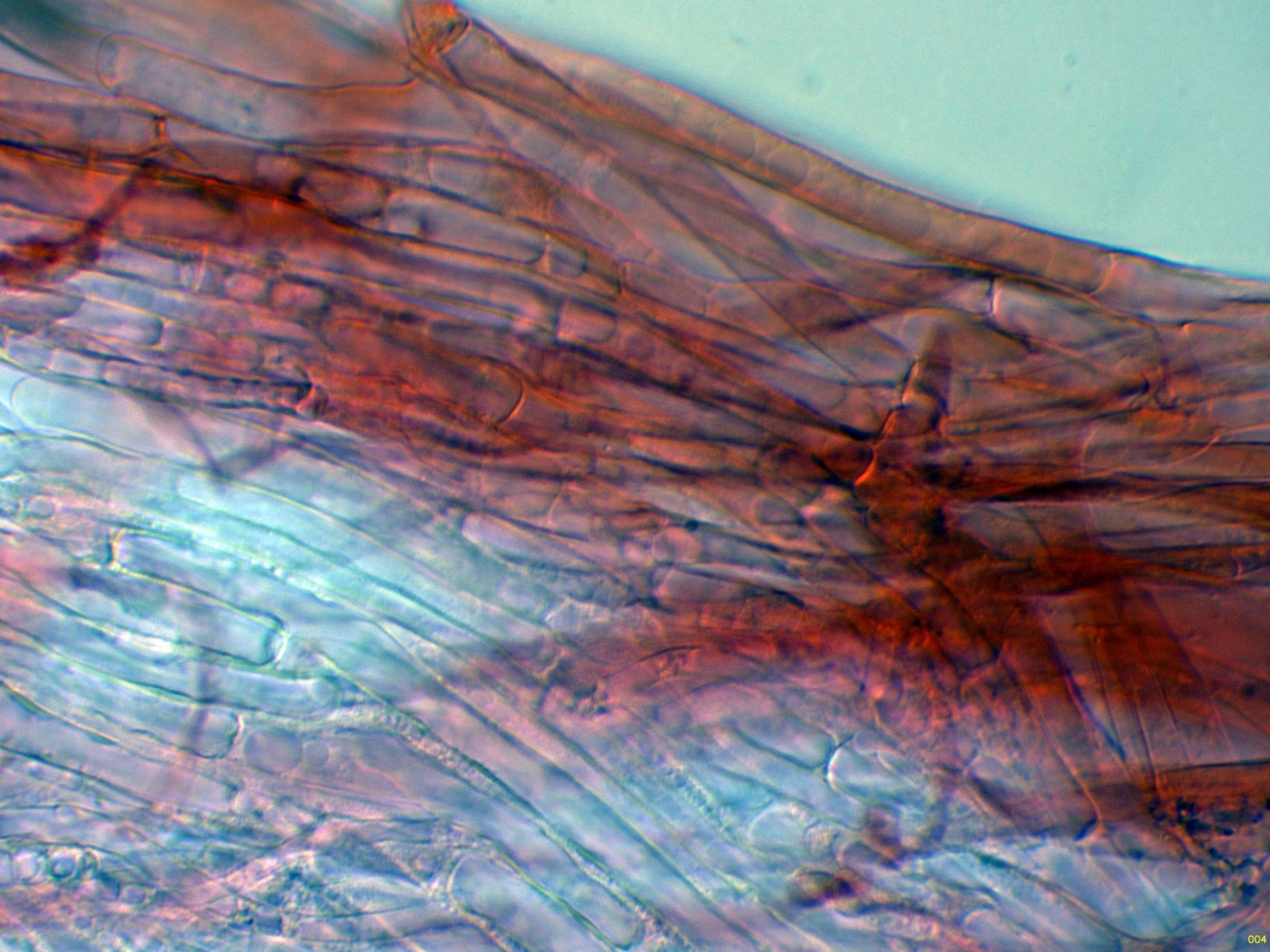 Las hifas de la suprapellis en Reactivo de Melzer: