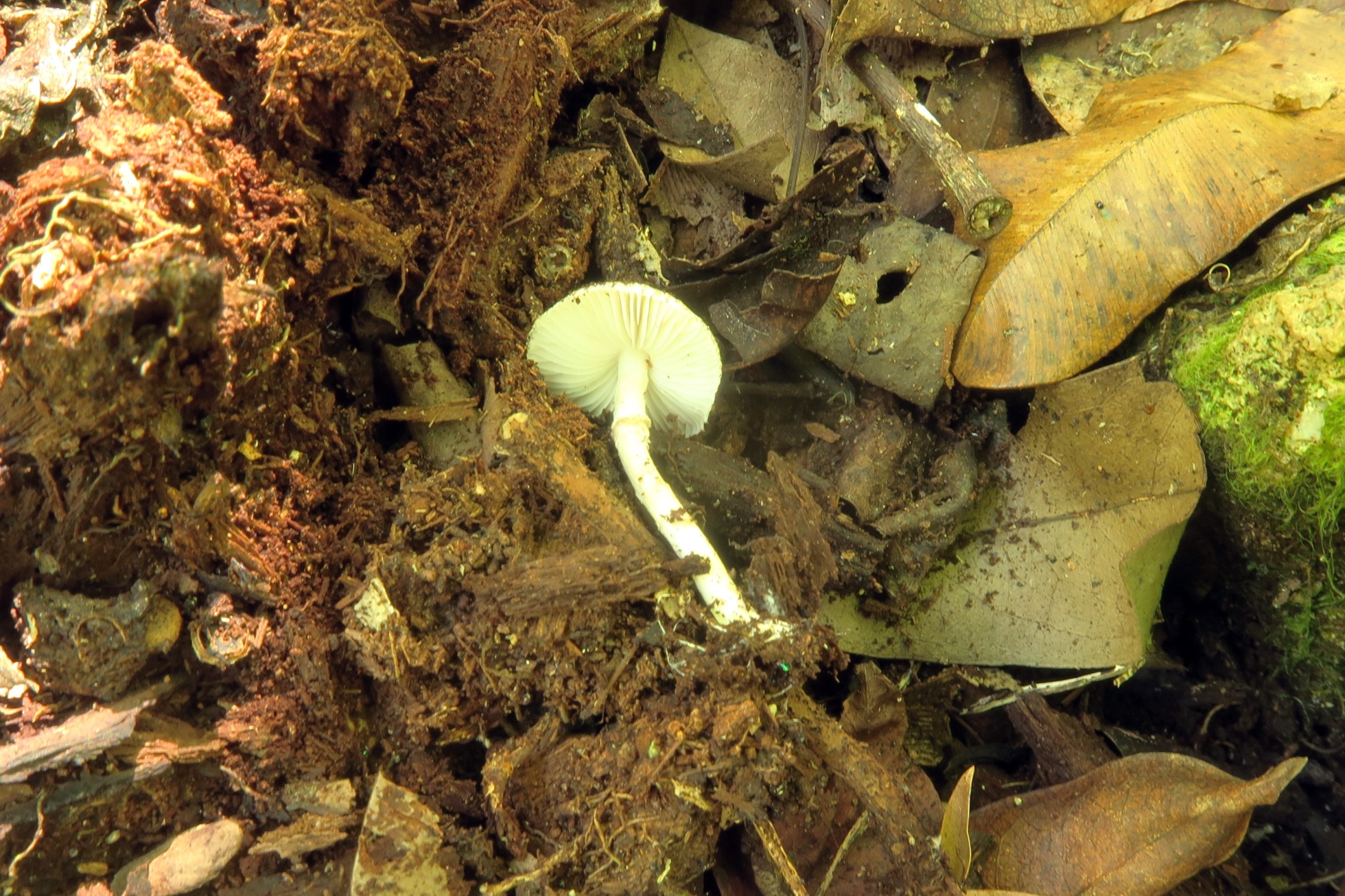 Un solo ejemplar brotando entre la hojarasca del suelo: